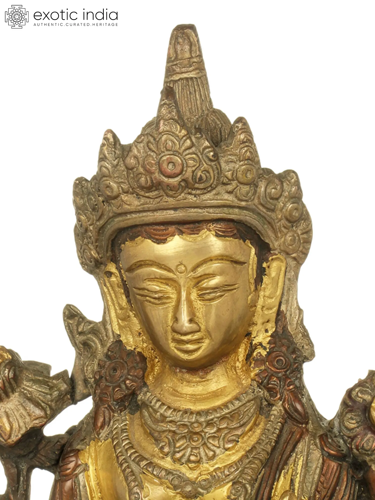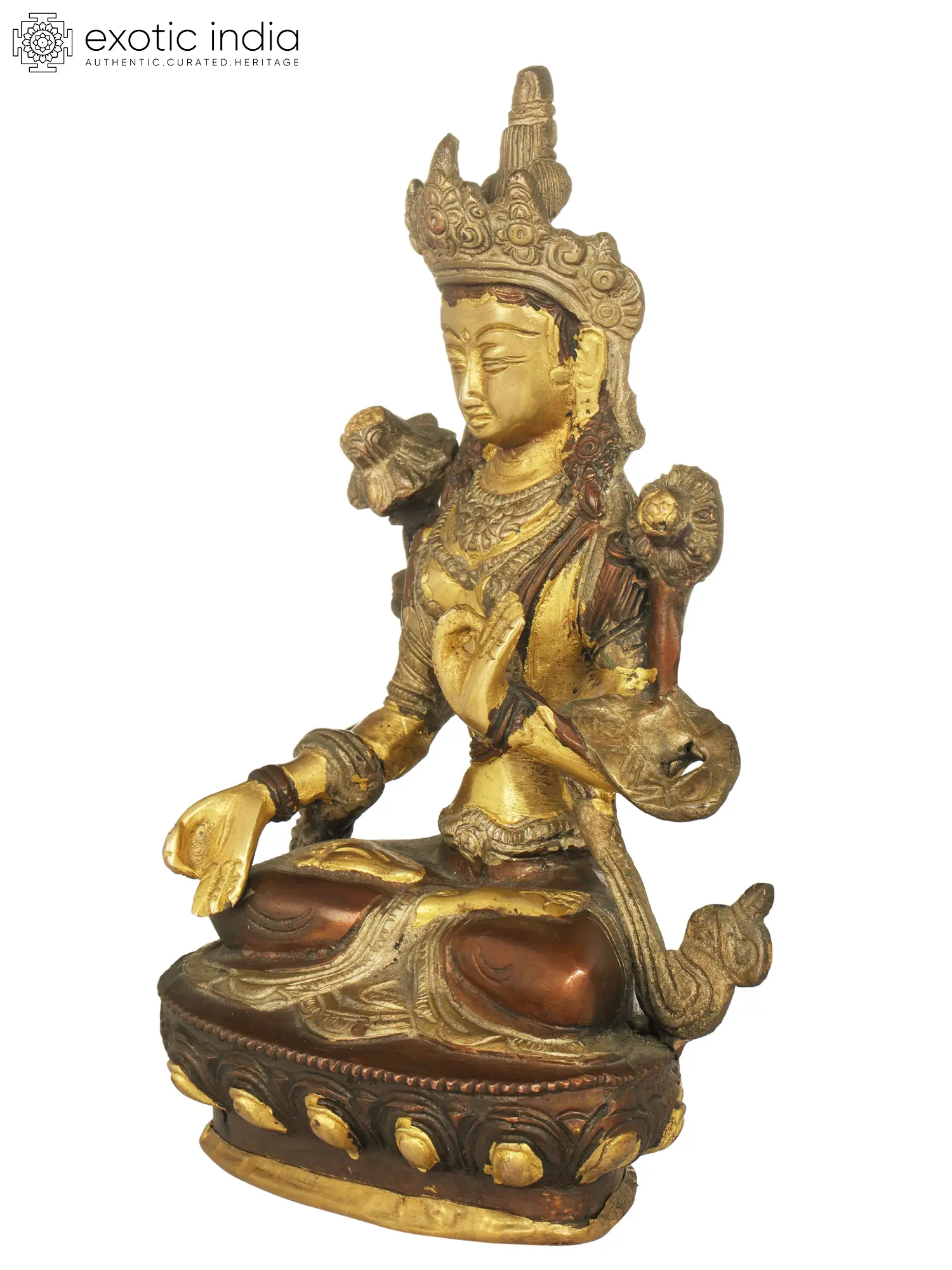 8" Tibetan Buddhist Goddess White Tara In Brass | Handmade | Made In India