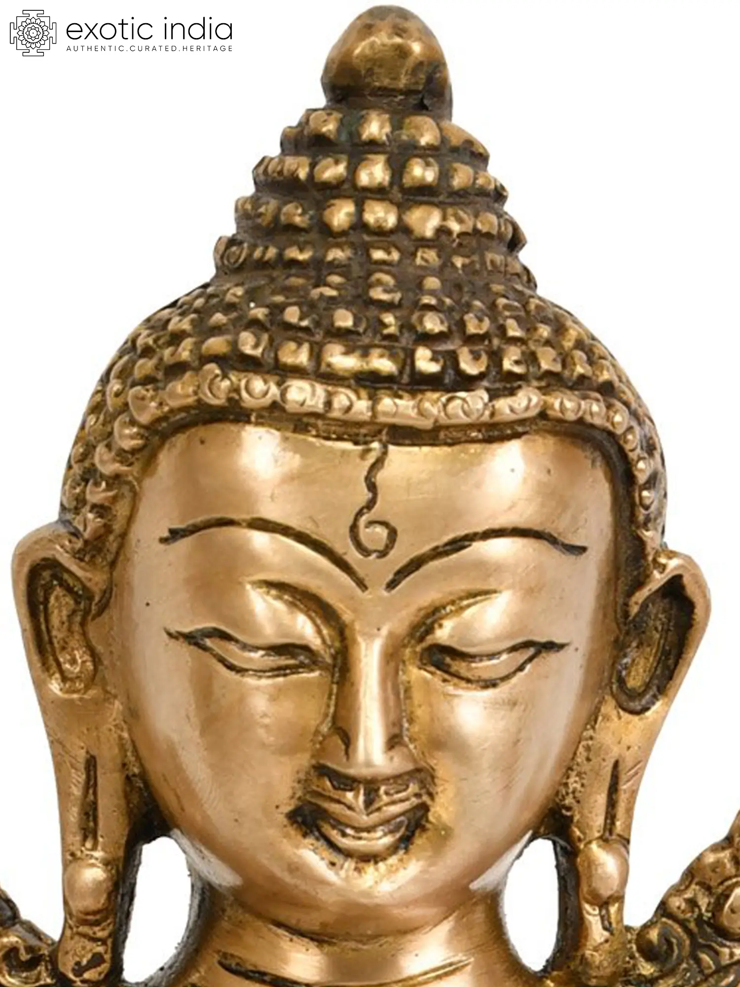 This exquisite brass statue captures the serene and enlightened presence of Lord Buddha in the act of preaching his Dharma. Seated in a meditative pose, with eyes gently closed and a faint, knowing smile gracing his lips, this representation is a profound symbol of inner peace and spiritual awakening. The meticulous craftsmanship, evident in every curve and contour, speaks to the devotion and skill of the artisans who brought this sacred image to life in India.