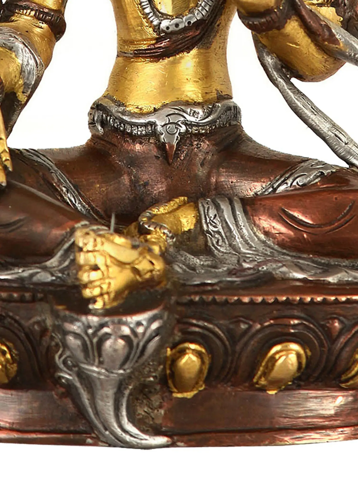 Tara is an important and revered deity in Tibetan Buddhism who appears as a female Bodhisattva. Buddhist monks and followers meditate on the image or deity of Tara to develop some good qualities such as compassion and kindness. Tara is known as the mother of compassion or liberation and is considered the female aspect of Avalokiteshvara (who possesses the compassion of all Buddhas). She manifests in different forms such as Green Tara and White Tara. Green Tara is associated with fearlessness and White Tara, as radiant as the moon, is associated with good health. Tara also appears in red, blue, and yellow colors.