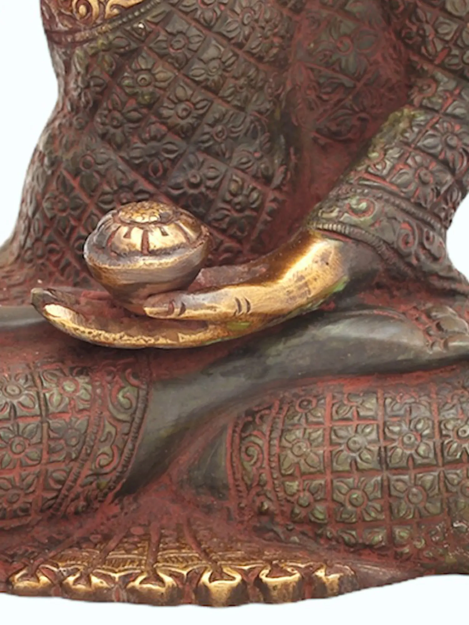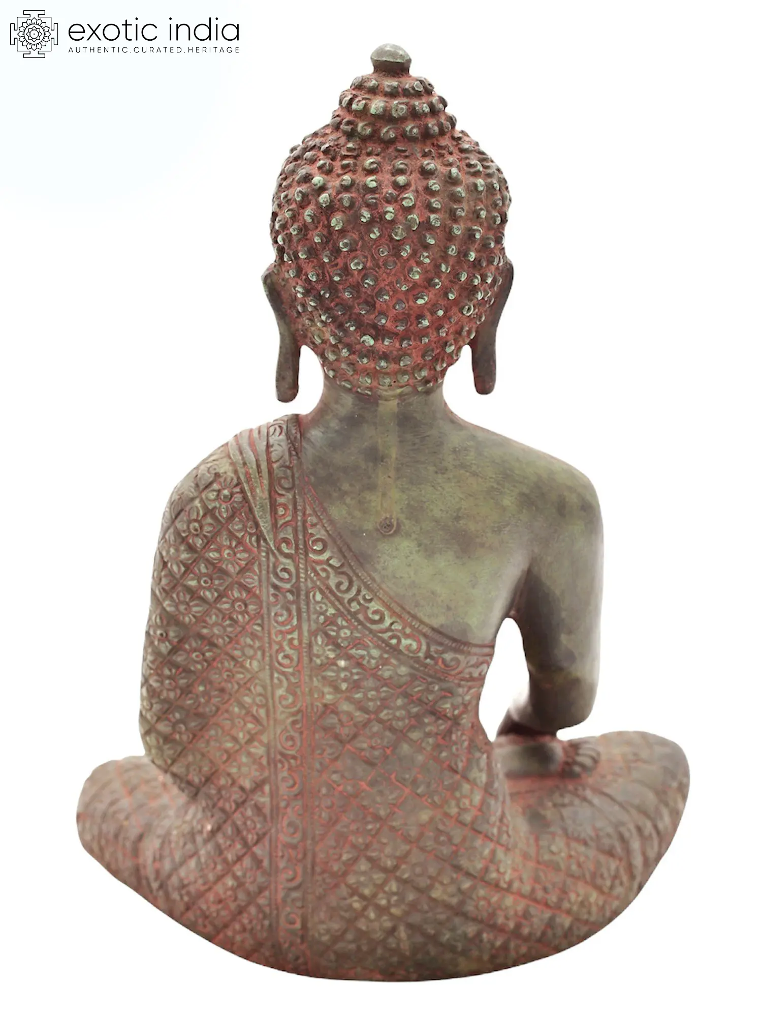 Each aspect of this statue, from the delicate folds of the sanghati (monastic robe) to the tranquil expression on the Buddha's face, speaks of the dedication and artistry involved in its creation. Handmade in India, a land steeped in spiritual heritage and artistic tradition, this piece carries the imprint of generations of craftsmanship. The meticulous attention to detail in rendering the textures and patterns of the robes, and the subtle yet powerful expression of inner peace, make this a truly remarkable work of art. Whether placed in a personal sanctuary, a meditation space, or a living area, this Shakyamuni Buddha statue serves as a constant reminder of the path to liberation and the enduring power of compassion.