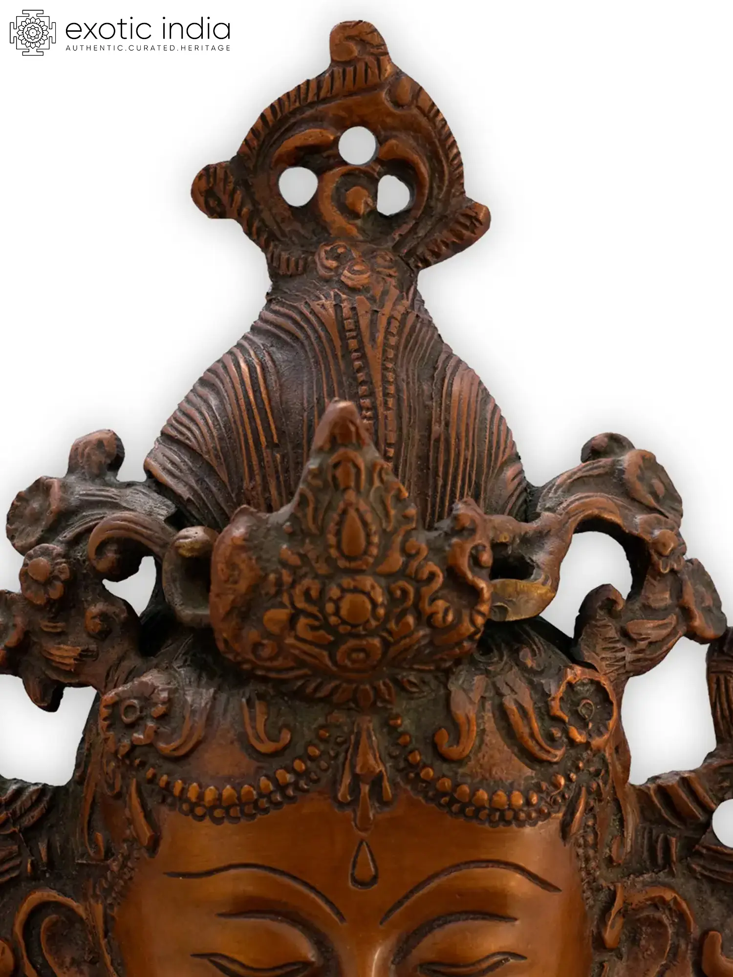 Embrace the spiritual energy and wisdom of Tara, the Tibetan Buddhist deity, with our finely crafted brass wall-hanging mask. Handmade with deep respect in India, this artwork embodies the essence of compassion, protection, and wisdom, central to Tibetan Buddhist philosophy. As you gaze upon the mask, you'll appreciate the intricate details that convey Tara's serene countenance and the symbolism in every aspect of her form. Tara's role as the protector and guide is central to Tibetan Buddhist philosophy, and this wall hanging serves as a constant reminder of compassion, wisdom, and the path to spiritual enlightenment.