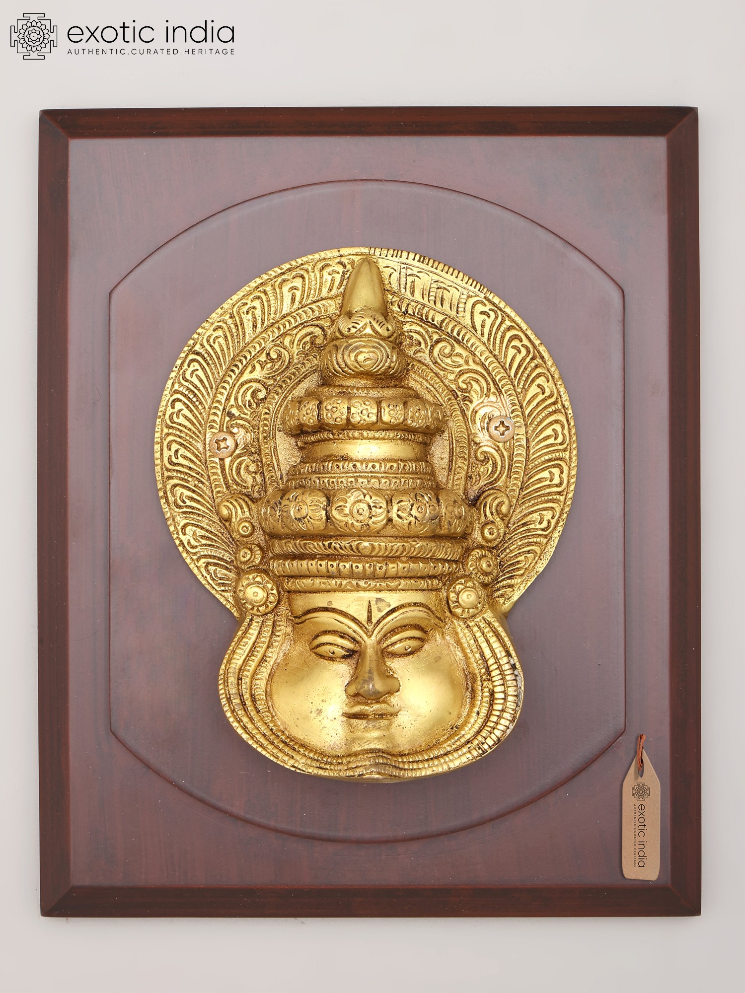 16" Kathakali Face | Wood Framed Brass Sculpture | Wall Hanging