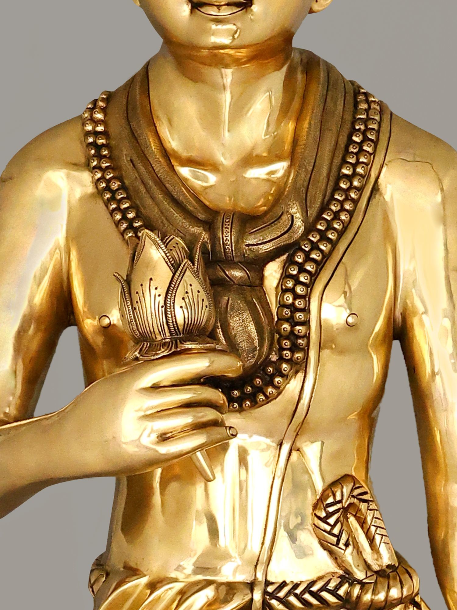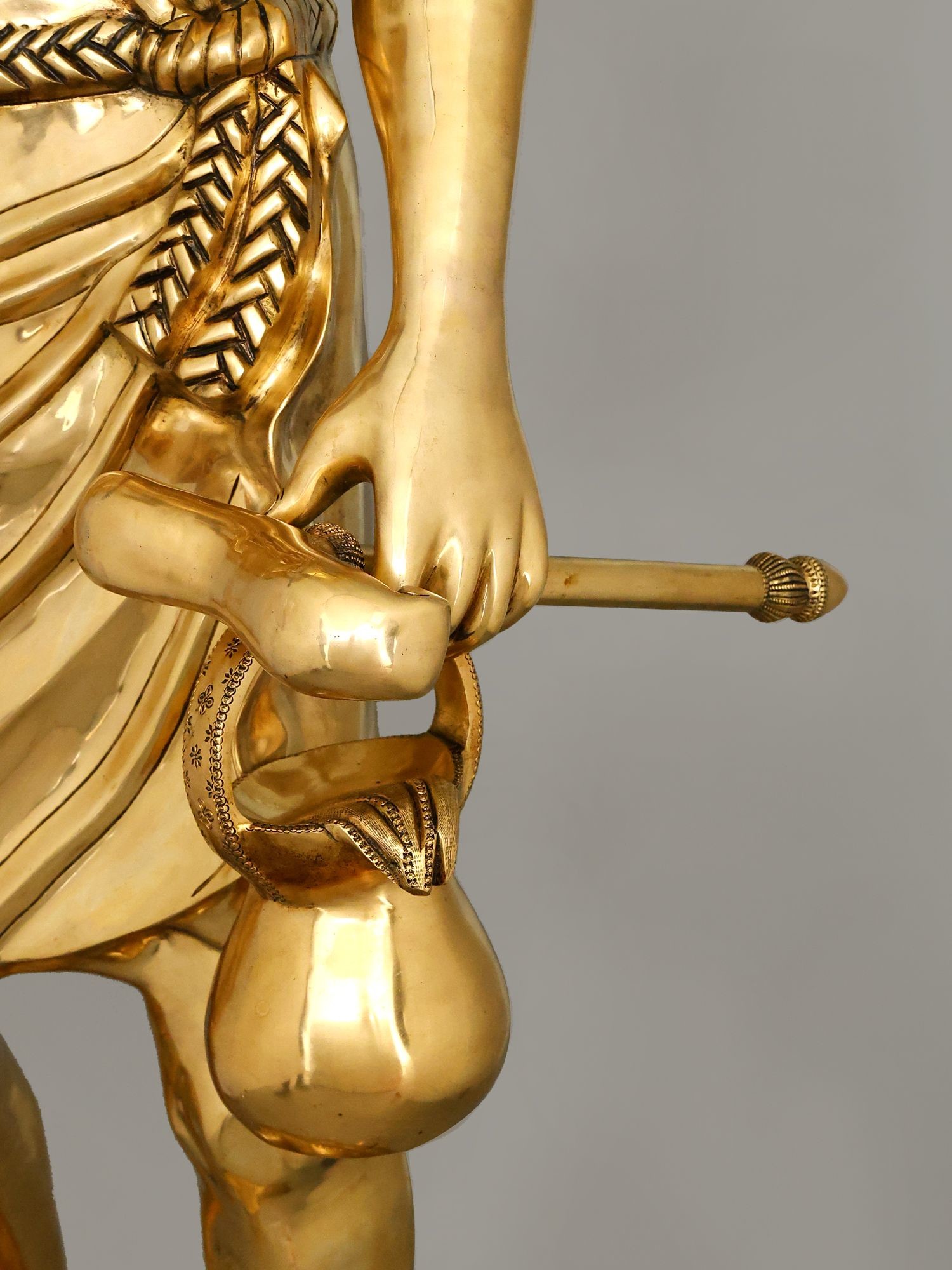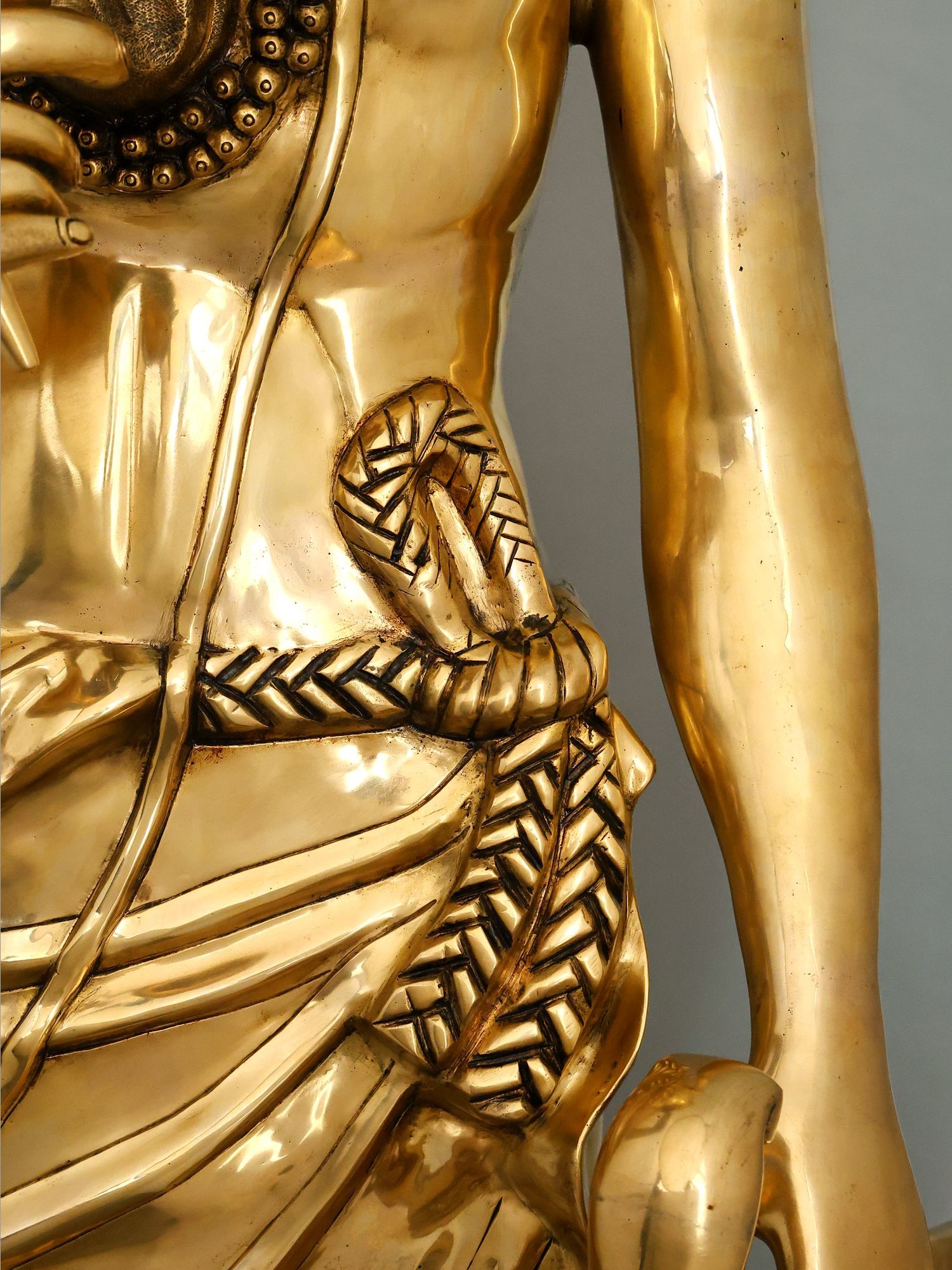 Each curve and detail of this sculpture has been meticulously brought to life by master artisans, employing time-honored techniques passed down through generations. Fashioned from the finest quality brass, its lustrous sheen is a testament to the purity of the materials and the dedication of its creators. The casting process ensures an unparalleled level of detail, from the delicate folds of the drapery to the serene expression on the divine visage.
