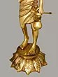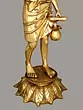 You'll immediately appreciate the imposing yet graceful presence, standing an impressive eighty-two inches tall, making it a truly commanding centerpiece. The smooth, polished surface of the brass gleams, catching and reflecting light to highlight the exquisite craftsmanship. The intricate ornamentation, including the finely rendered lotus base and the detailed sacred thread, adds layers of visual depth and tactile richness.