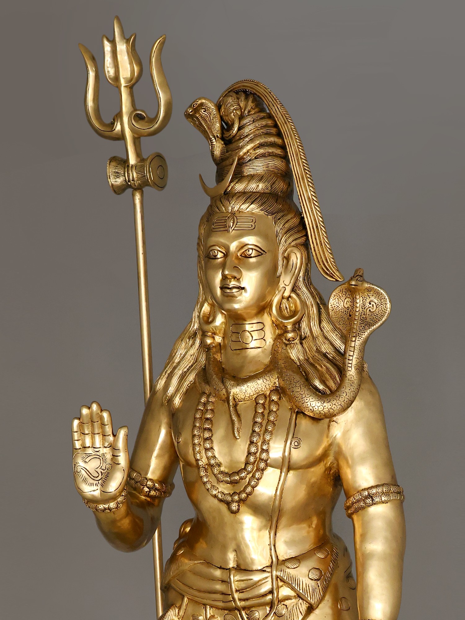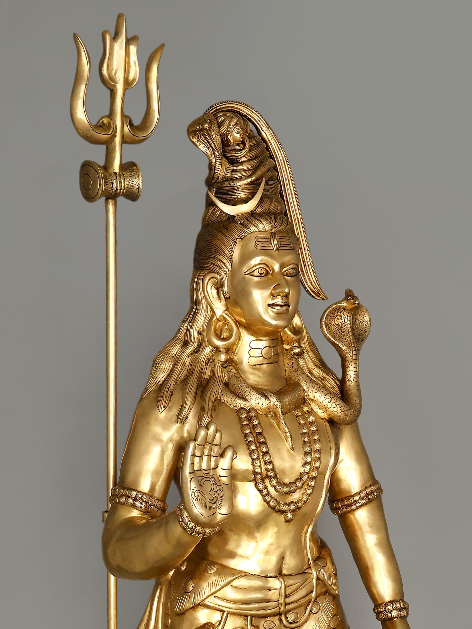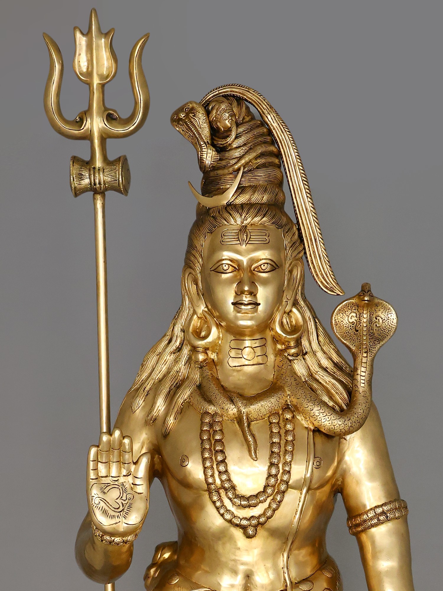 84" Huge Standing Lord Shiva with Trishul | Brass Statue | Made In India