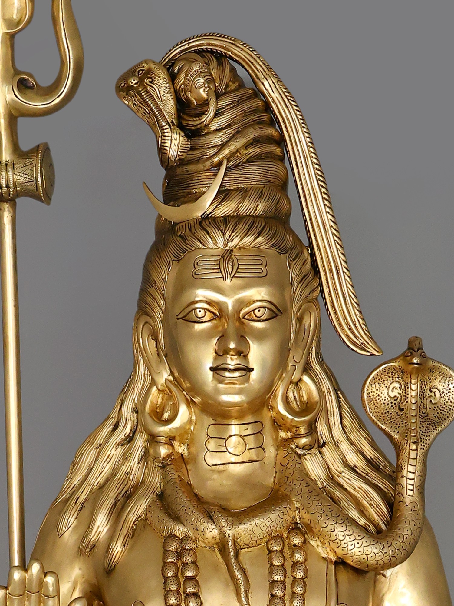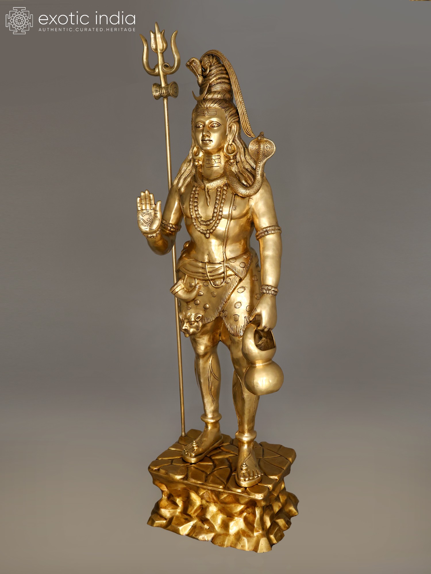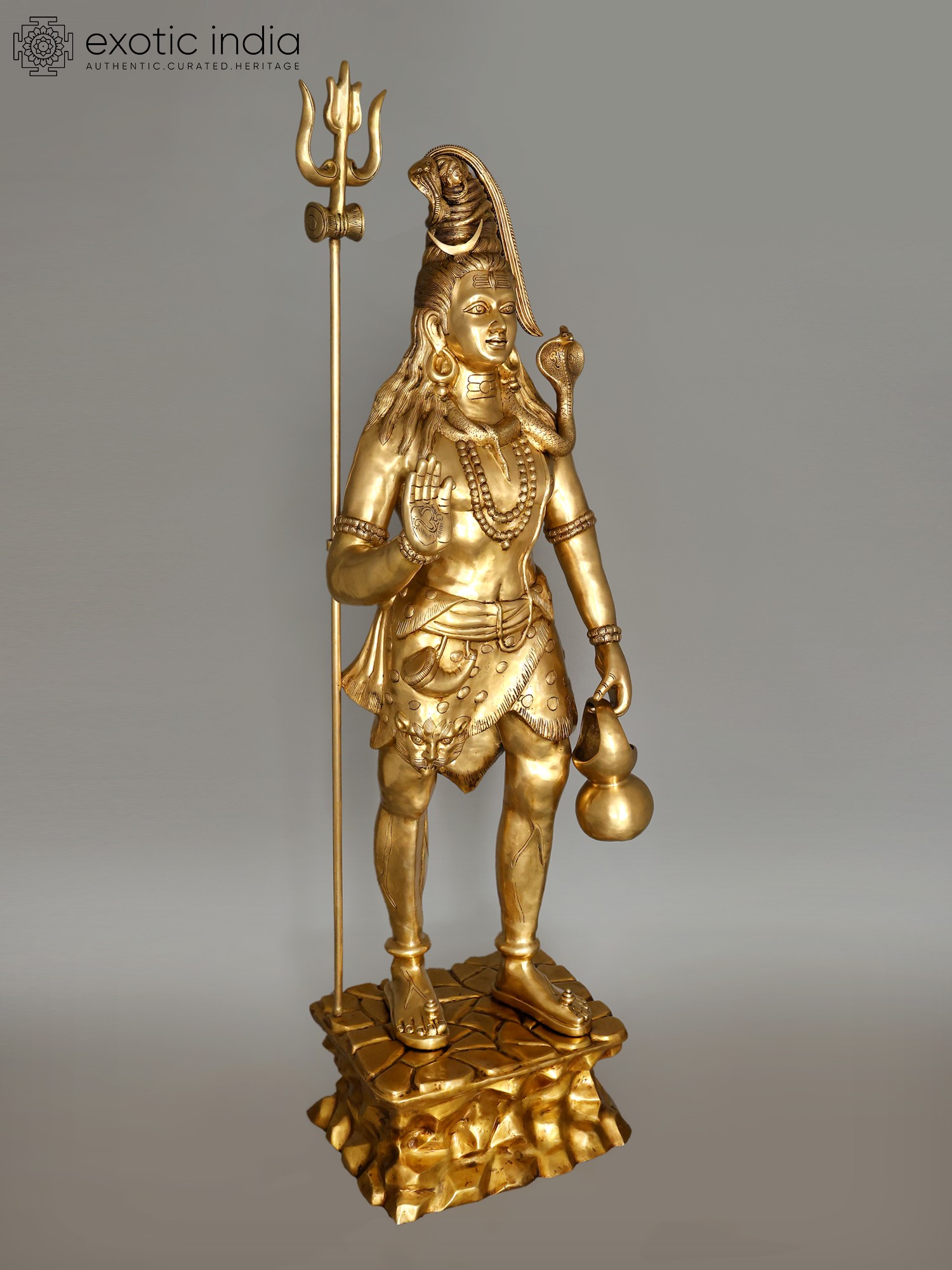 84" Huge Standing Lord Shiva with Trishul | Brass Statue | Made In India