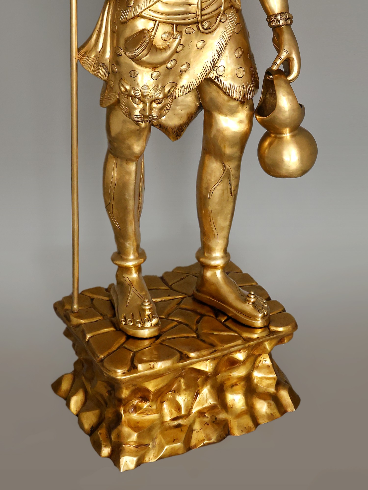 The same is true in a dynamic stance, the veins and the musculature of the limbs so lifelike it feels like the lord Himself has emerged within one's view. A leopard's skin functions as His loincloth, one that He had encountered and killed in the mountains (its lifeless head dangles against His thigh).
