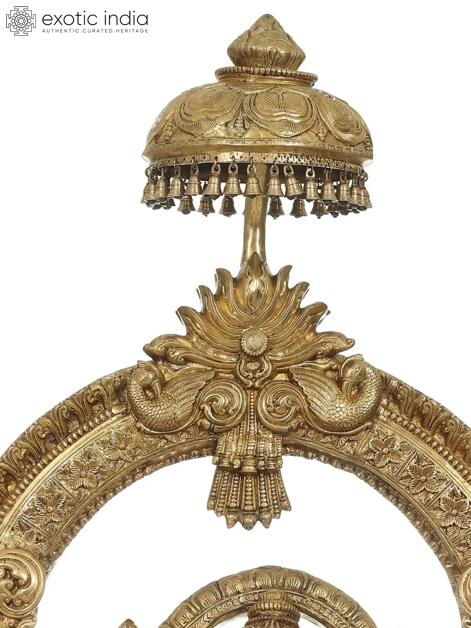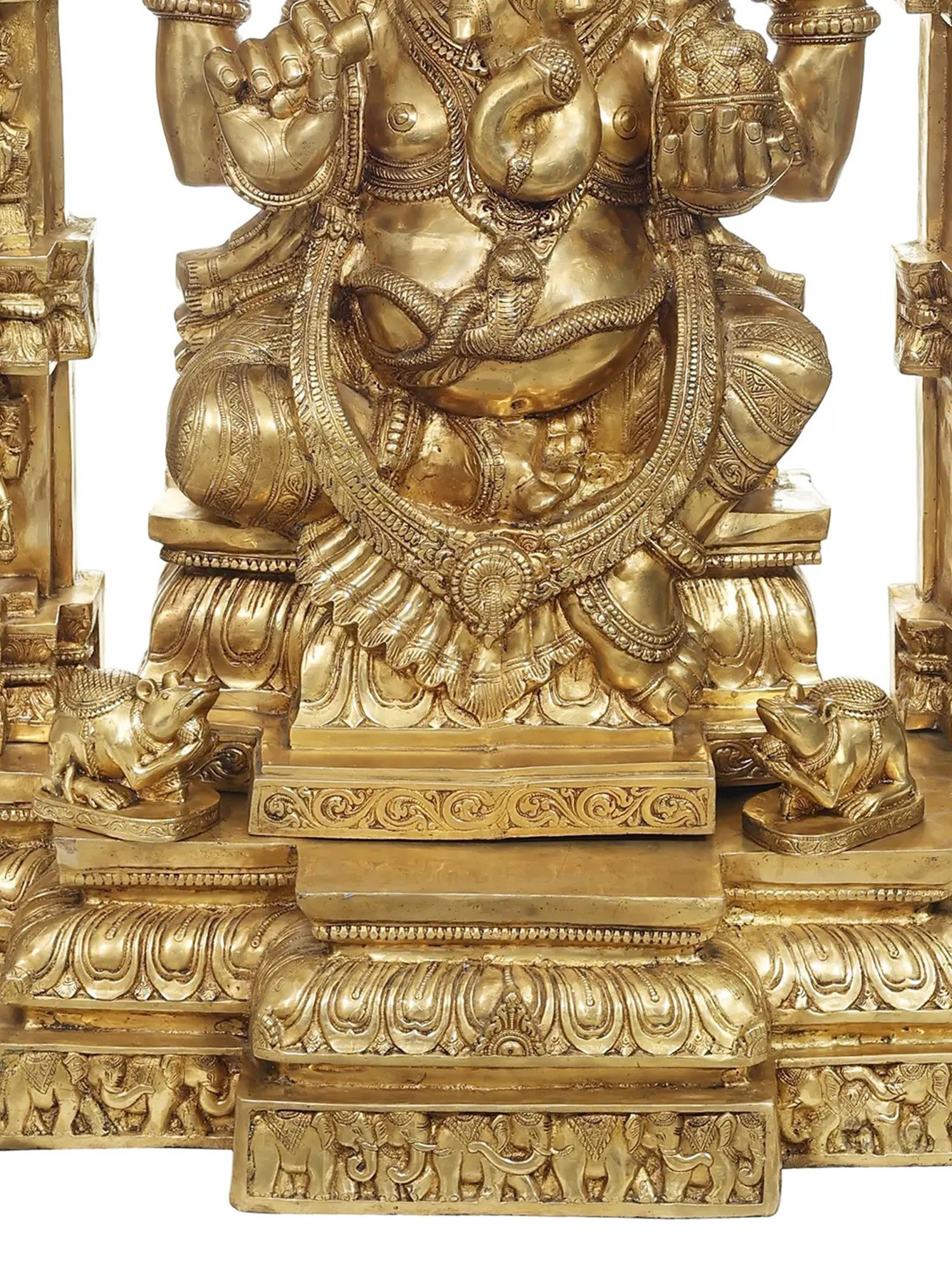 84" Large Lord Ganesha with a Traditional Prabhavali and Parasol Atop | Handmade Brass Statue
