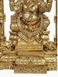 As you zoom in to the prabhavali, you will be amazed by its rich ethnic carvings having deities, Shiva, Lakshmi and Saraswati carved in absolute perfection and other traditional designs of flowers and vines towards the top. The stylized parasol at the top is beautified with ringing bells at the brim and decorated with a peacock and blooming lotus broch at the centre of prabhavali. This large Ganesha brass sculpture is carved in the best of its kind.