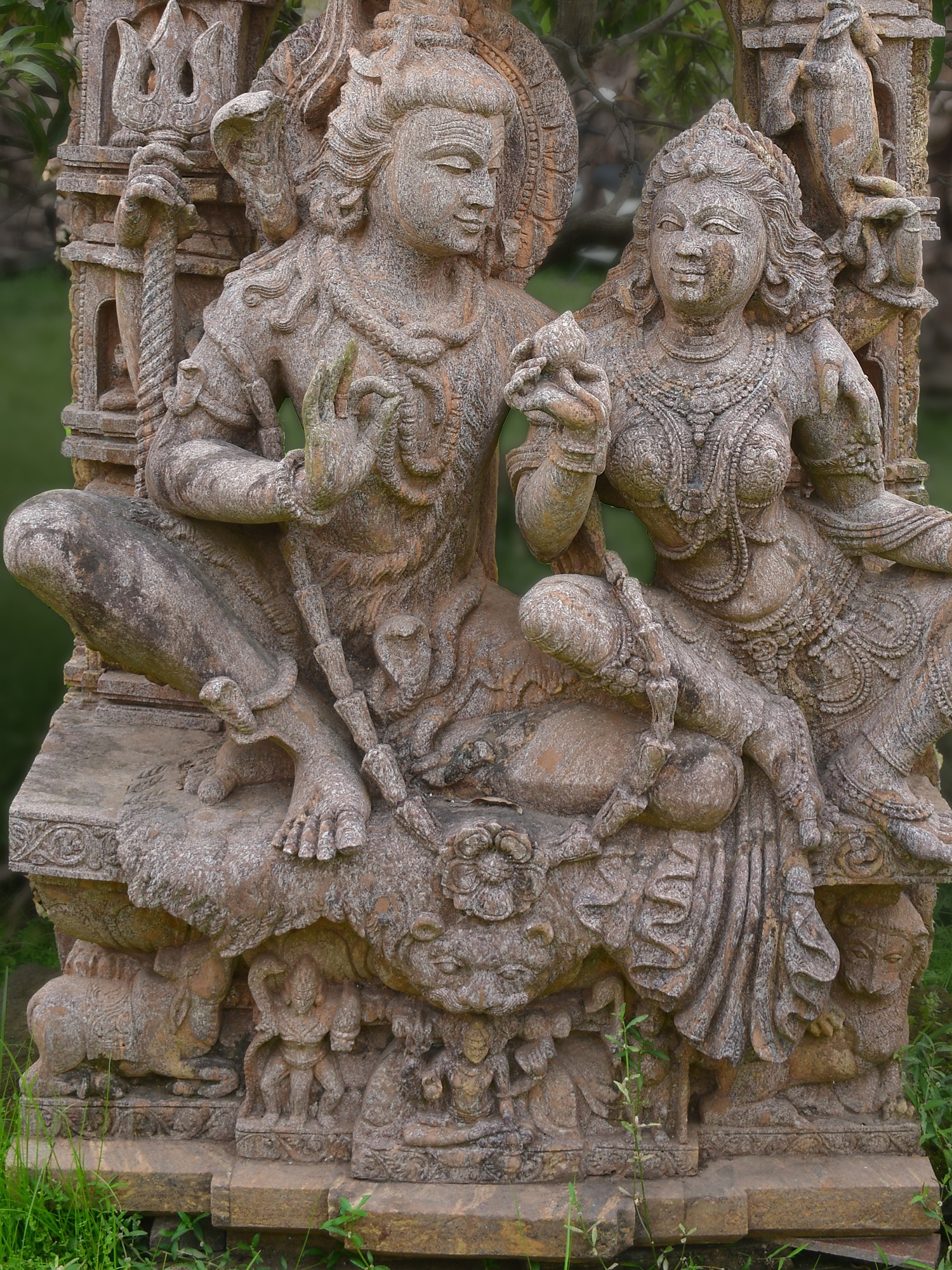 30" Shiv-Parvati with Nandi | Sandstone Statue | Exquisite Handmade Indian Art
