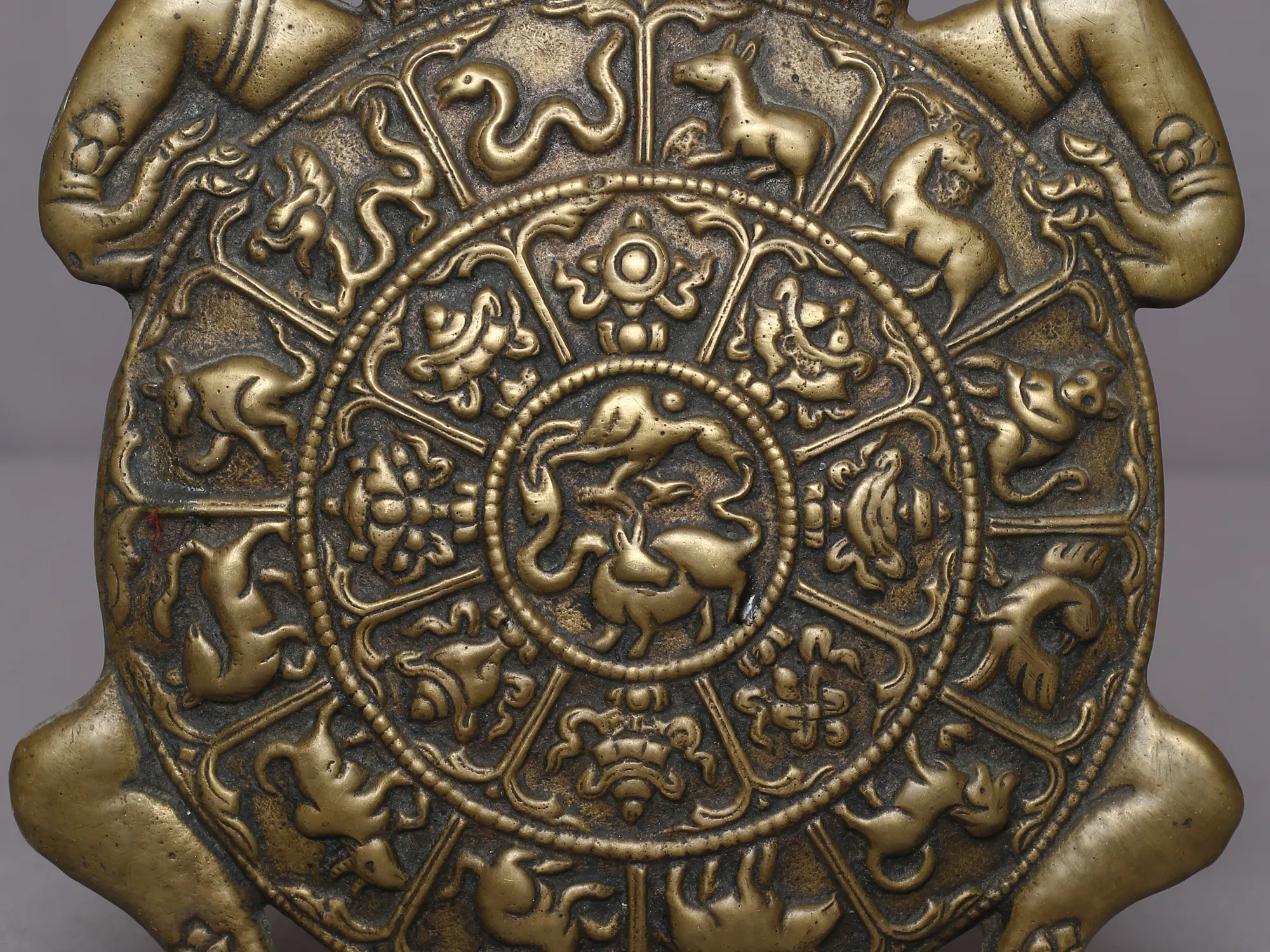 15" Tibetan Wall Hanging Luner Calander representing 12 Zodiacs with Chhepu
