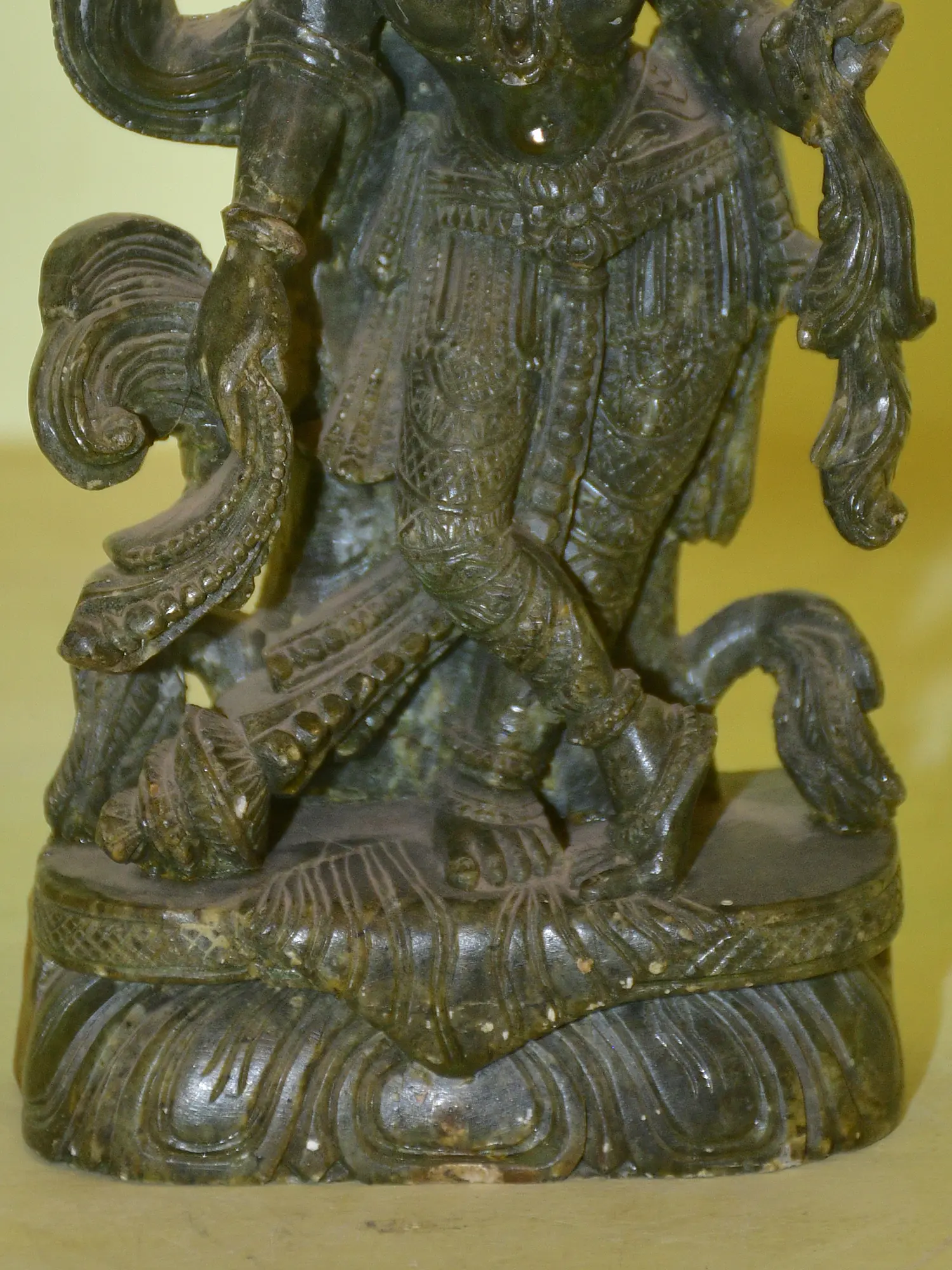 Hailing from the ancient and culturally vibrant state of Odisha, formerly known as Orissa, this statue is a testament to the region's rich artistic heritage. Odisha has a long-standing tradition of stone carving, with artisans passing down their skills through generations. The stone itself, sourced from the region, possesses a unique texture and depth that lends itself beautifully to intricate carving. The style reflects the classical motifs and aesthetic principles that have defined Indian art for centuries, showcasing a profound understanding of form, movement, and symbolic representation. The very act of carving this statue from stone connects it to the earth, yet its subject elevates it to the heavens.