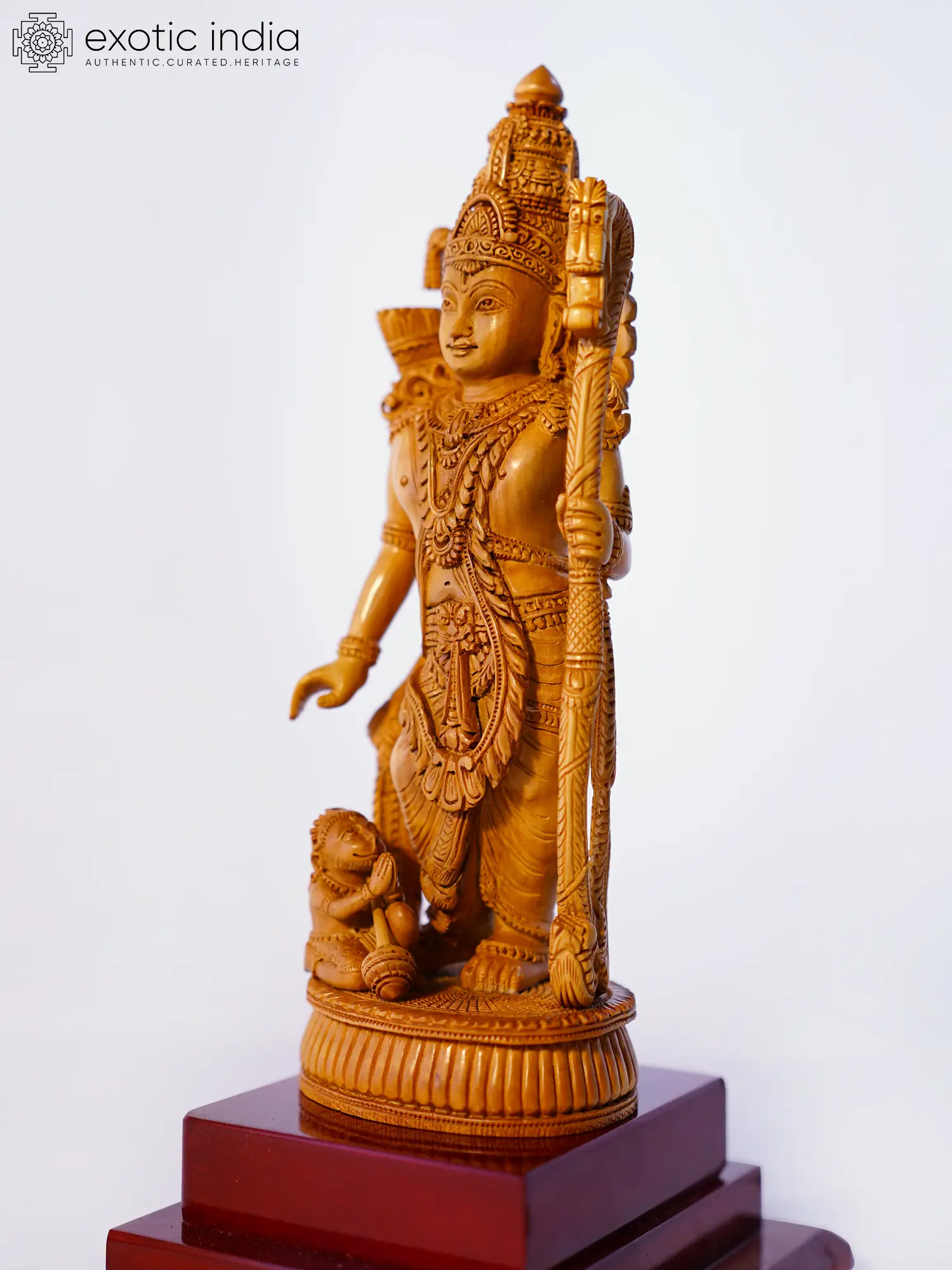 9" Bhagawan Shri Ram with Bhakta Hanuman | Sandalwood Carved Statue