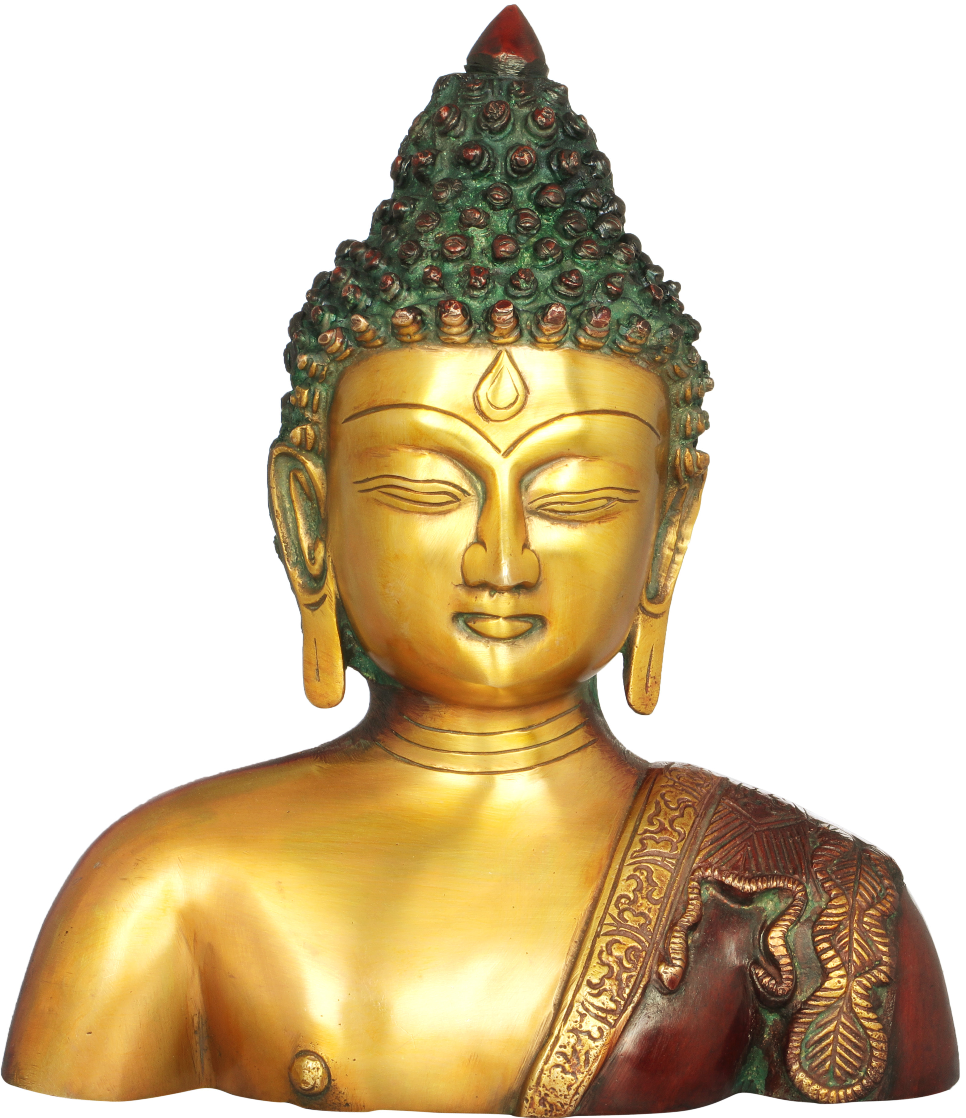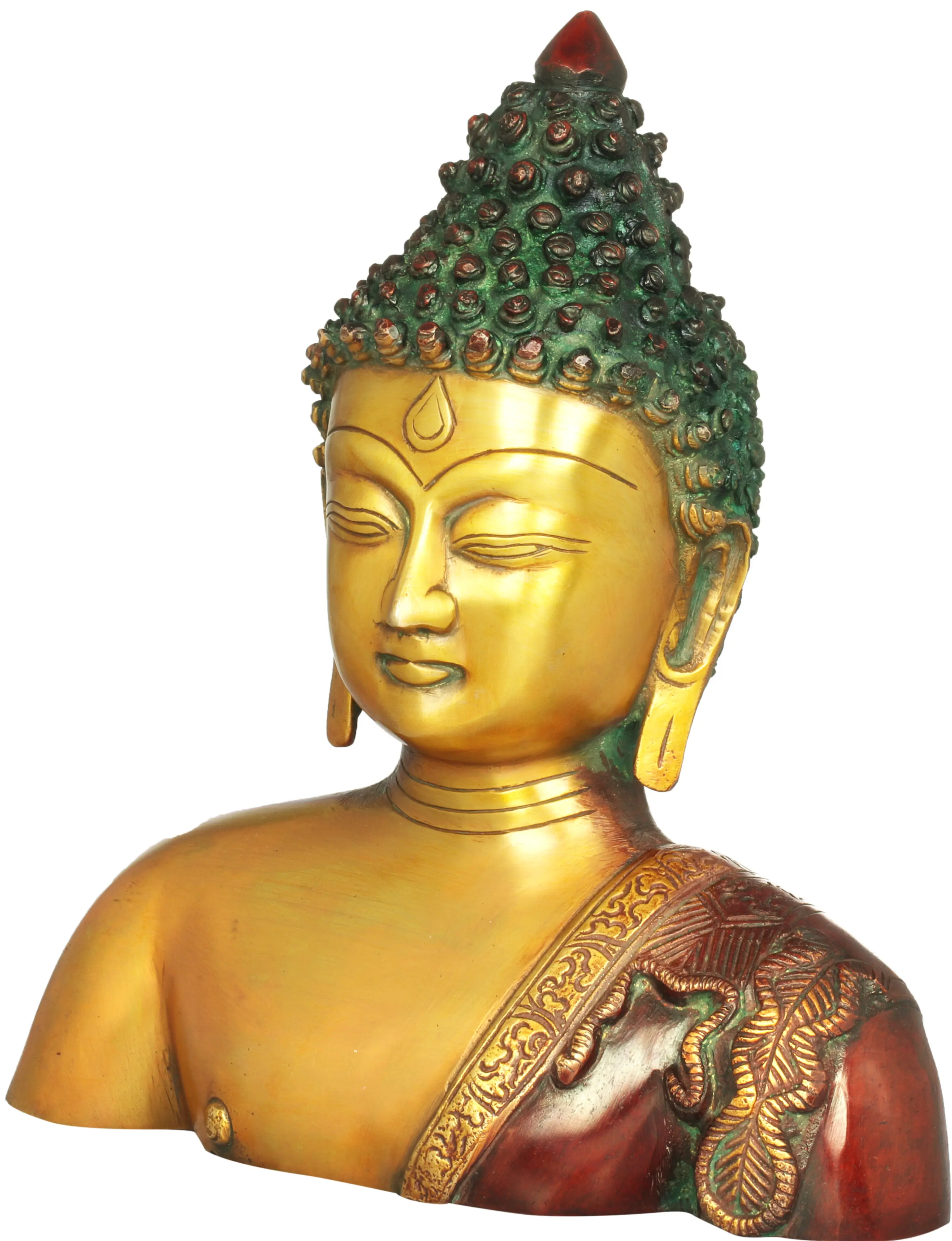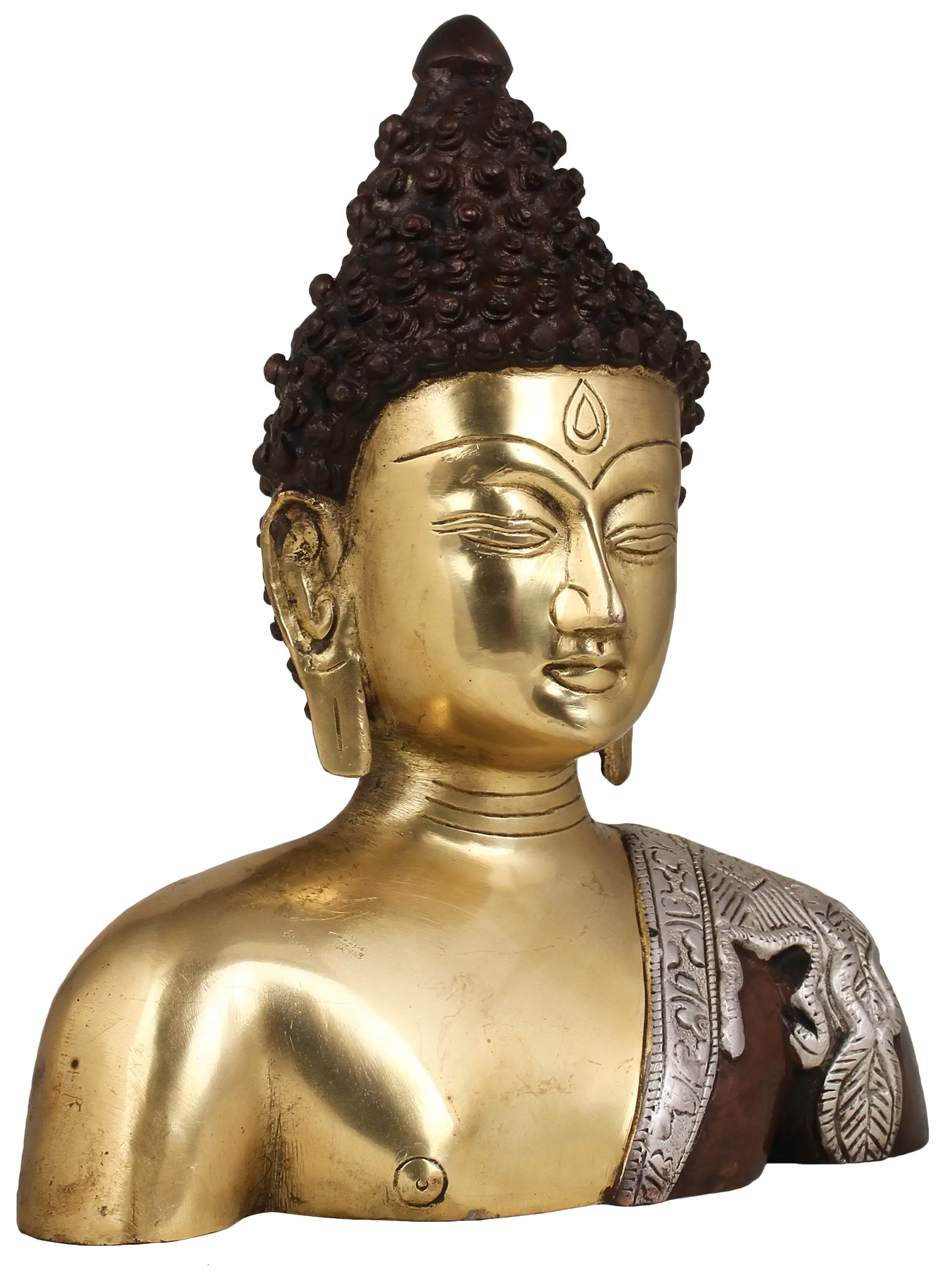 The Buddha Bust, a tribute to the enlightened one, is a remarkable piece of artistry handcrafted in India. This brass creation beautifully captures the serenity and wisdom of the Tibetan Buddhist tradition. As you gaze upon this deity, you're reminded of the path to inner peace and enlightenment. May it inspire you to seek tranquillity within your own being and embark on your personal journey towards spiritual awakening.