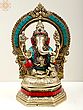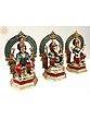 9" Brass Ganesha Lakshmi and Saraswati (Set of Three Statues) with Inlay Work