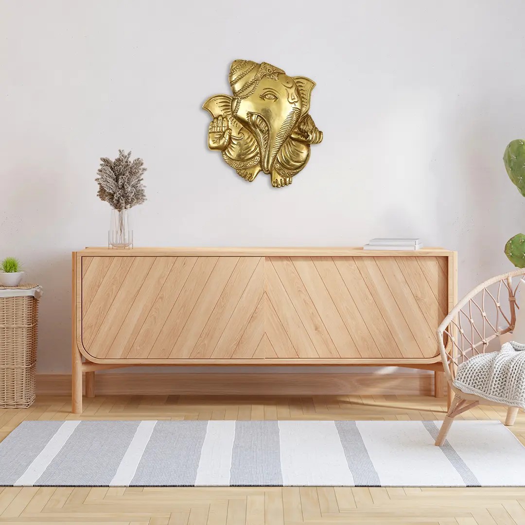 5" Lord Ganesha Wall Hanging Mask in Brass | Handmade | Made in India