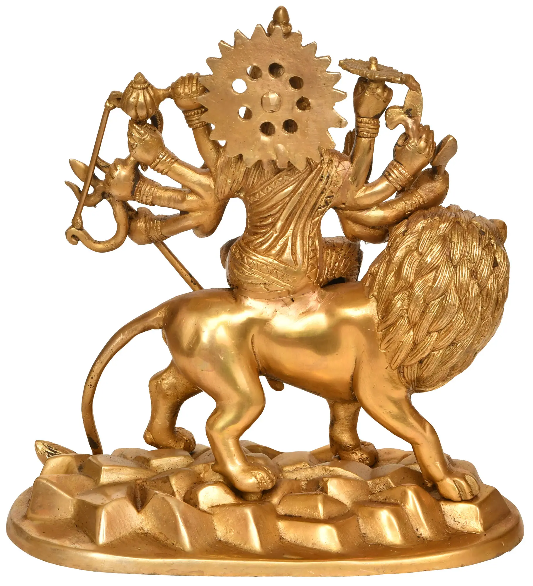 Immerse yourself in the fierce yet protective aura of Goddess Durga. This brass idol captures her standing atop rocks, ready to conquer evil forces. Her many arms hold weapons signifying her power and determination. Goddess Durga symbolises the invincible spirit within all of us, empowering us to overcome obstacles. Handmade with reverence in India, this idol embodies the courage and strength of the divine feminine. Bring home this embodiment of strength and protection to infuse your surroundings with positive energy.