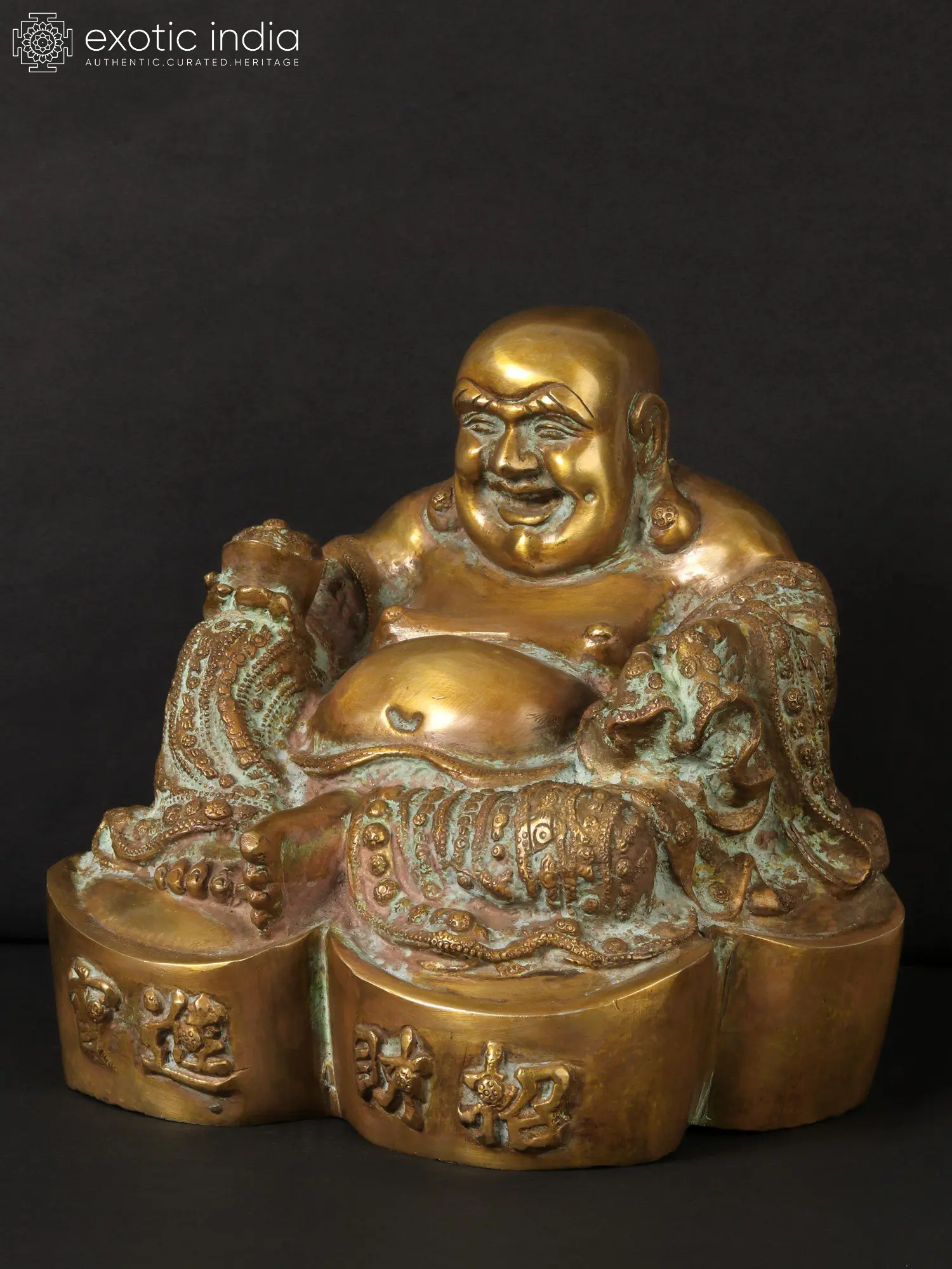 The statue is cast in durable and lustrous brass, a metal revered for its inherent beauty and its association with auspiciousness in many cultures. The warm golden hue of the brass is enhanced by subtle patination, highlighting the intricate details of the Buddha's robes and the auspicious symbols adorning his attire. The craftsmanship is evident in every curve and contour, from the gentle folds of his garments to the joyful wrinkles around his eyes. The base of the statue features inscribed characters, often representing wishes for prosperity and good fortune, further amplifying the positive energies it embodies. This substantial piece is not merely a decorative item but a powerful symbol, a tangible representation of the enduring pursuit of happiness and prosperity. ––––––––––––––––––––