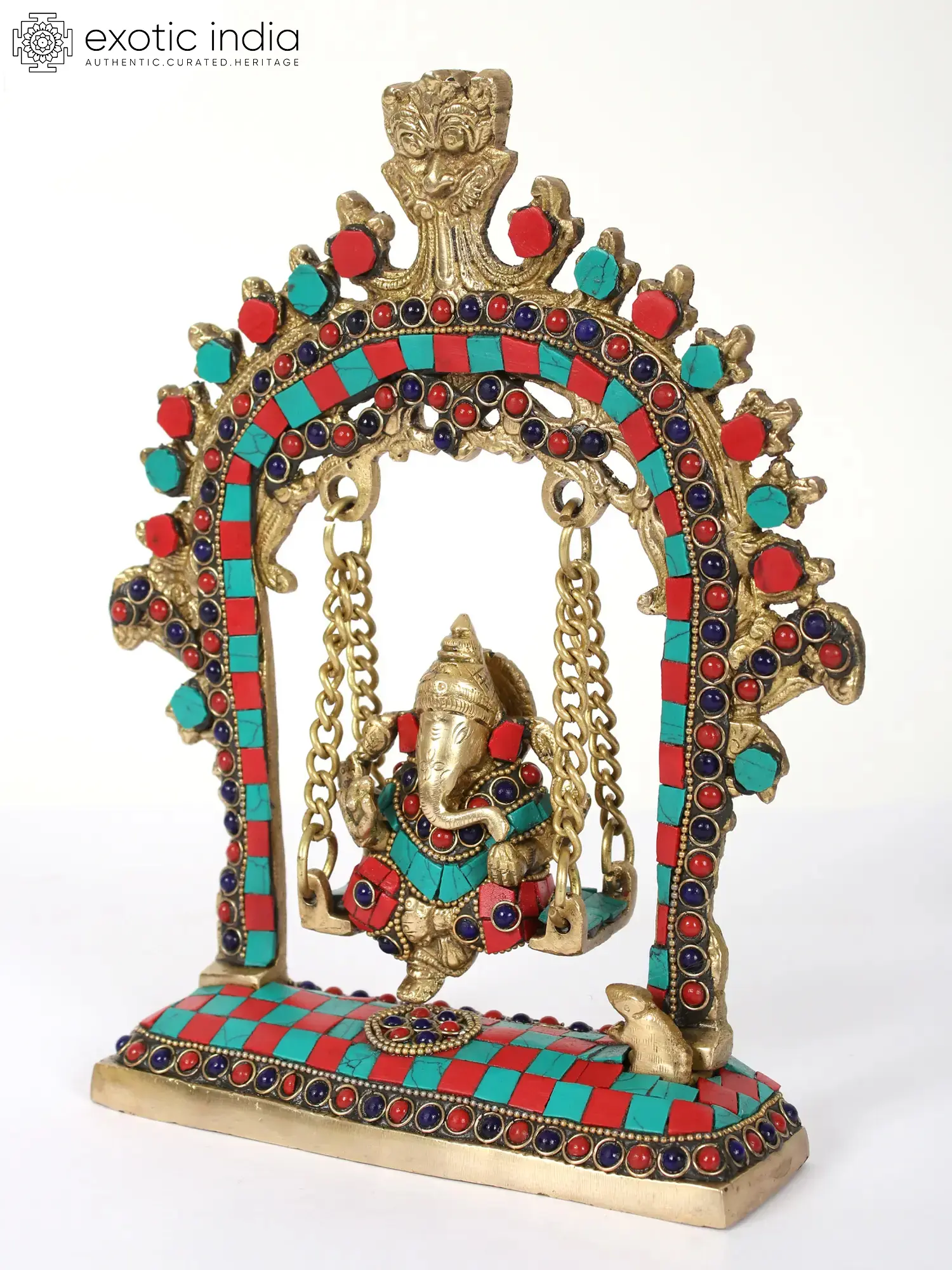 12" Lord Ganesha on a Swing In Brass | Handmade | Made In India