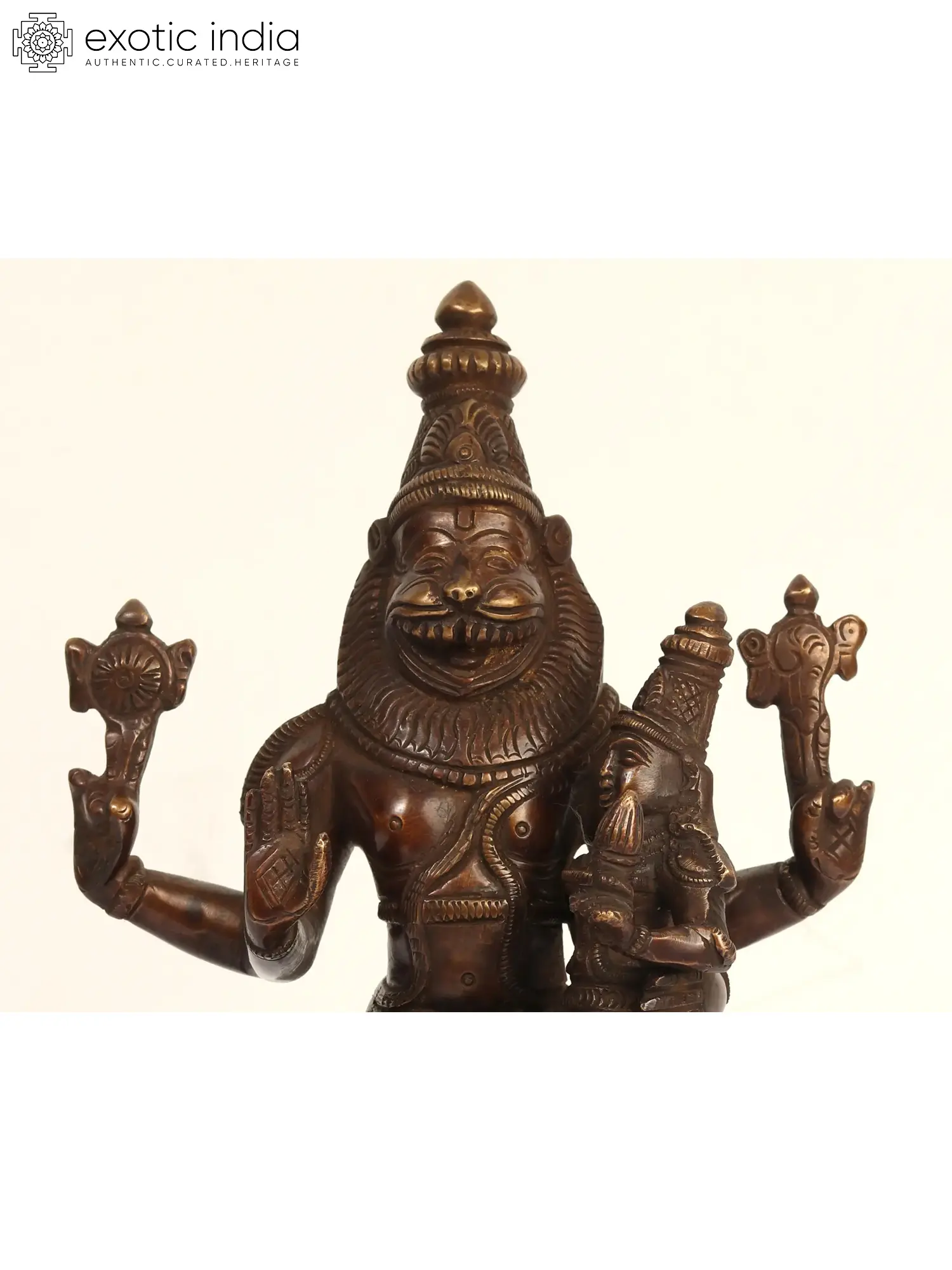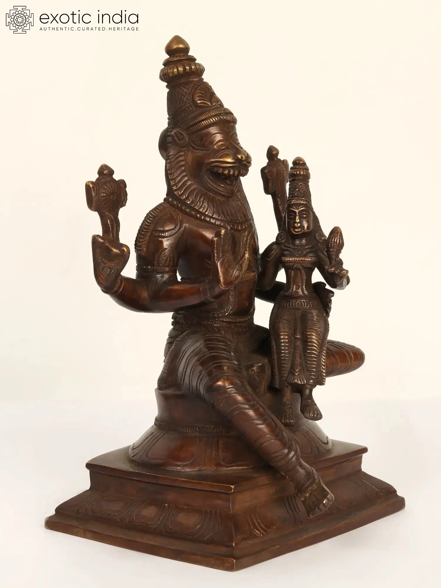 9" Brass Lord Narasimha with Goddess Lakshmi