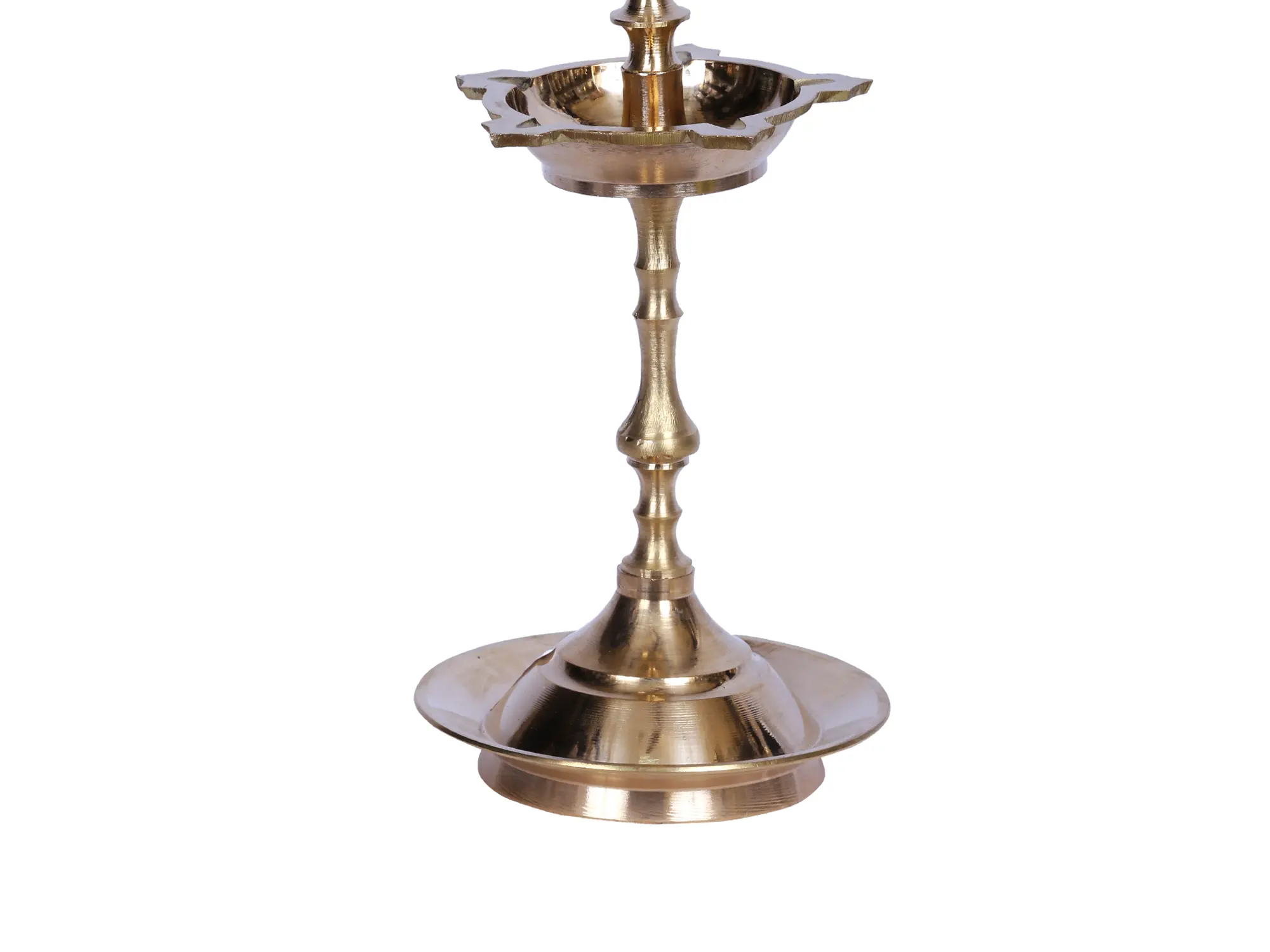 The presence of this brass ritual lamp can transform your prayer or meditation space. As the flame flickers, it can create a mesmerizing and calming ambiance, conducive to deep focus and inner peace. It serves as a constant reminder of the divine light that resides within and around us. Whether used for daily rituals, special pujas, or simply to create a serene atmosphere in your home, this lamp is an embodiment of tradition, beauty, and spiritual significance. Its warm radiance can uplift your spirits and deepen your connection to the sacred.
