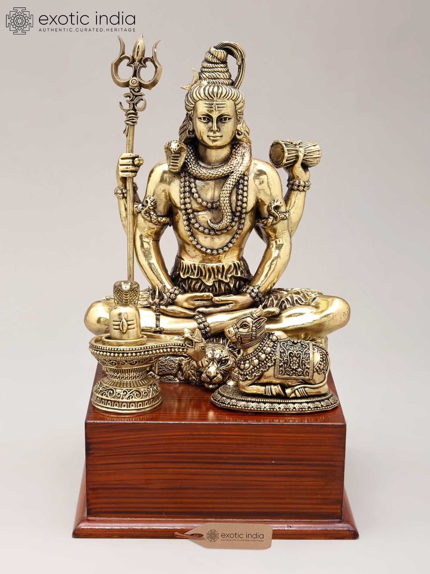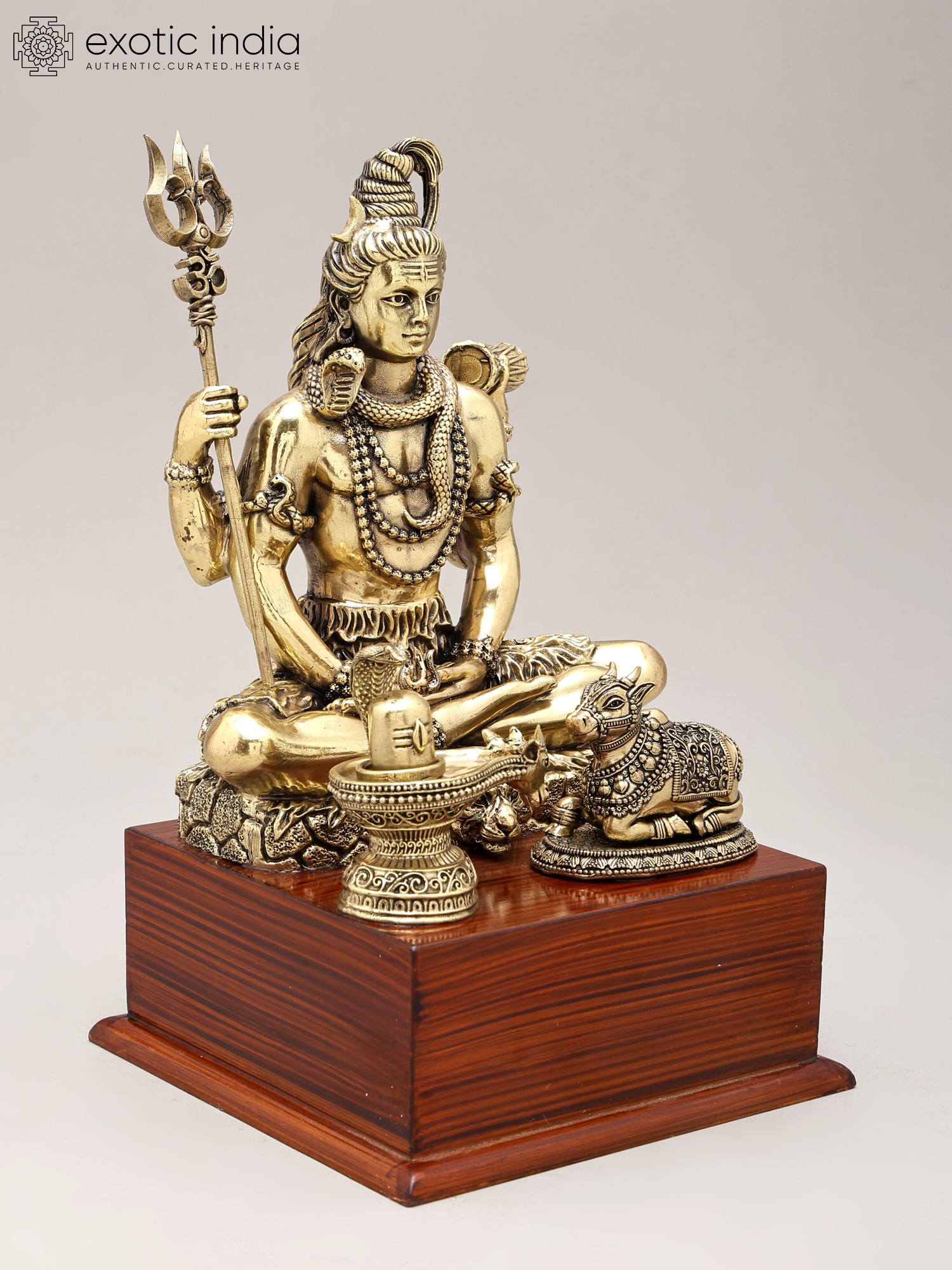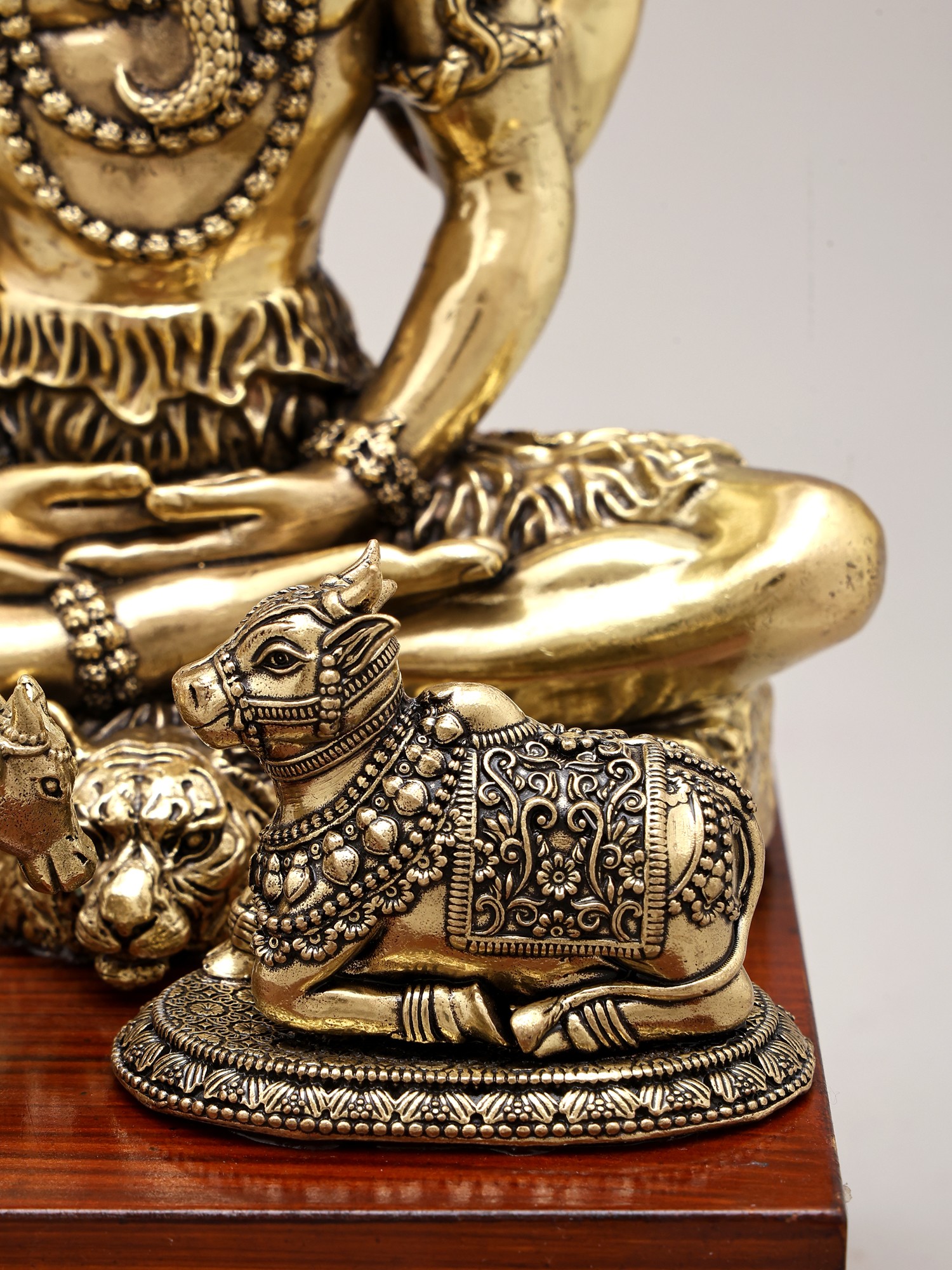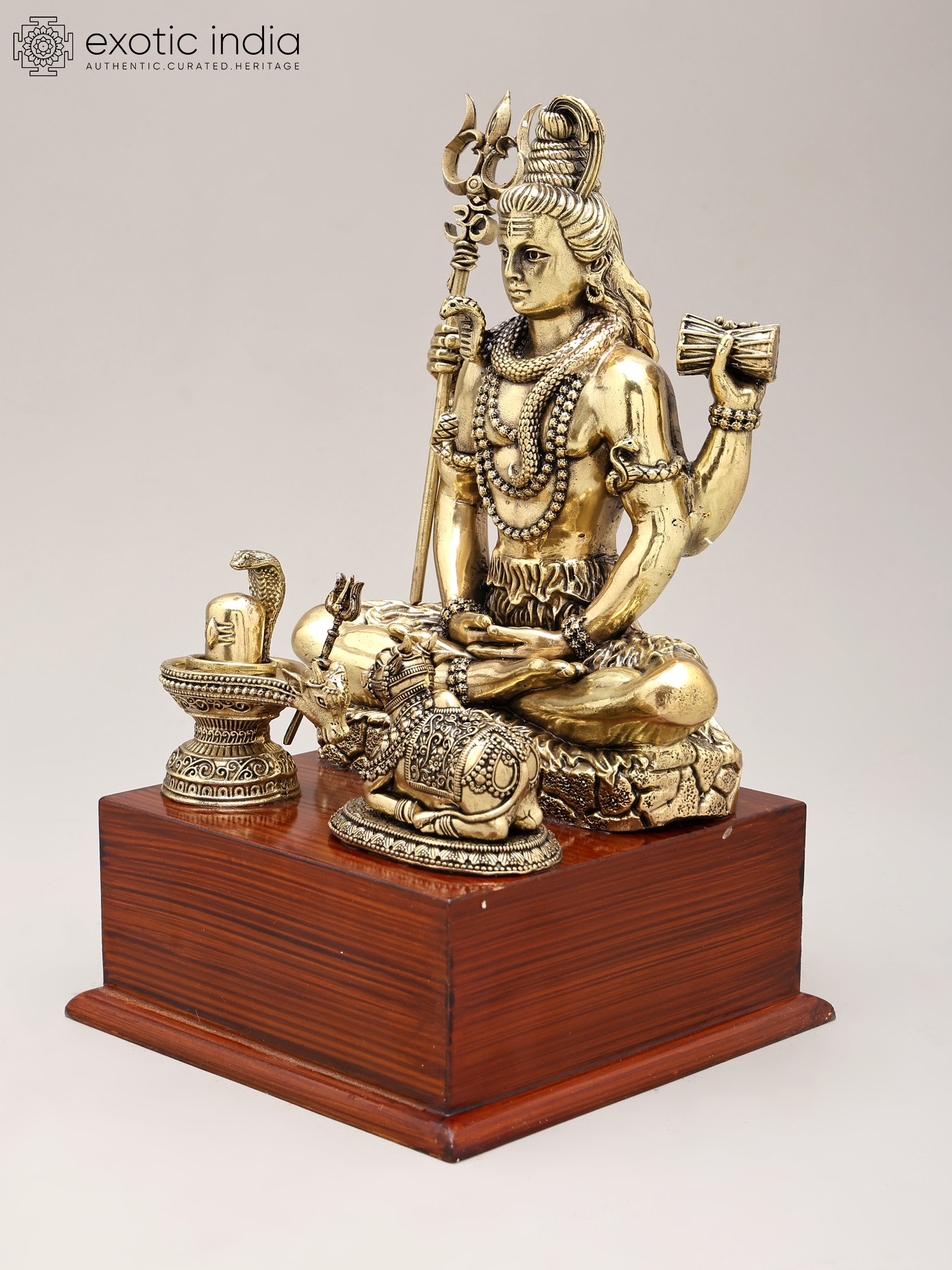 9" Brass Superfine Lord Shiva with Nandi and Shivalinga on Wood Base