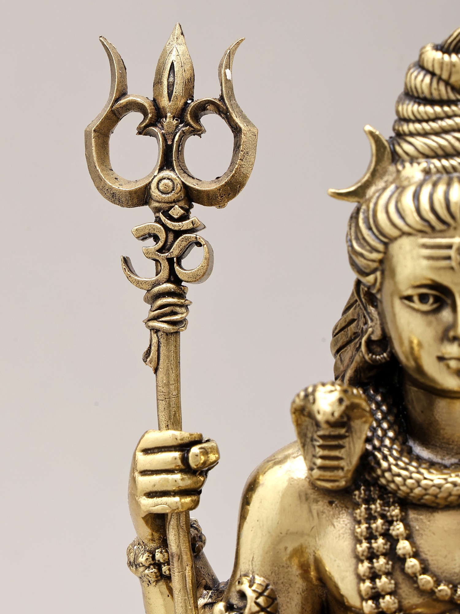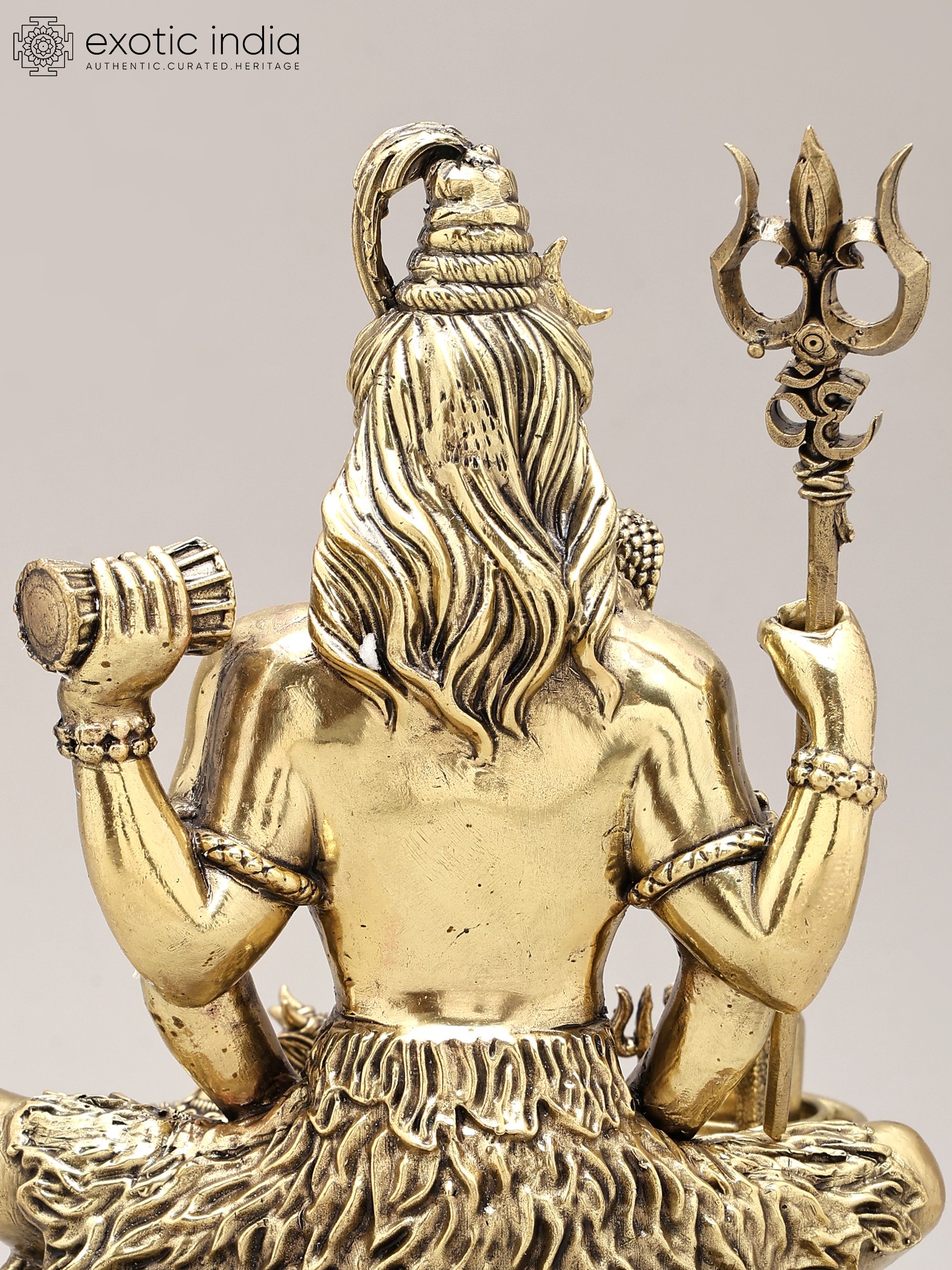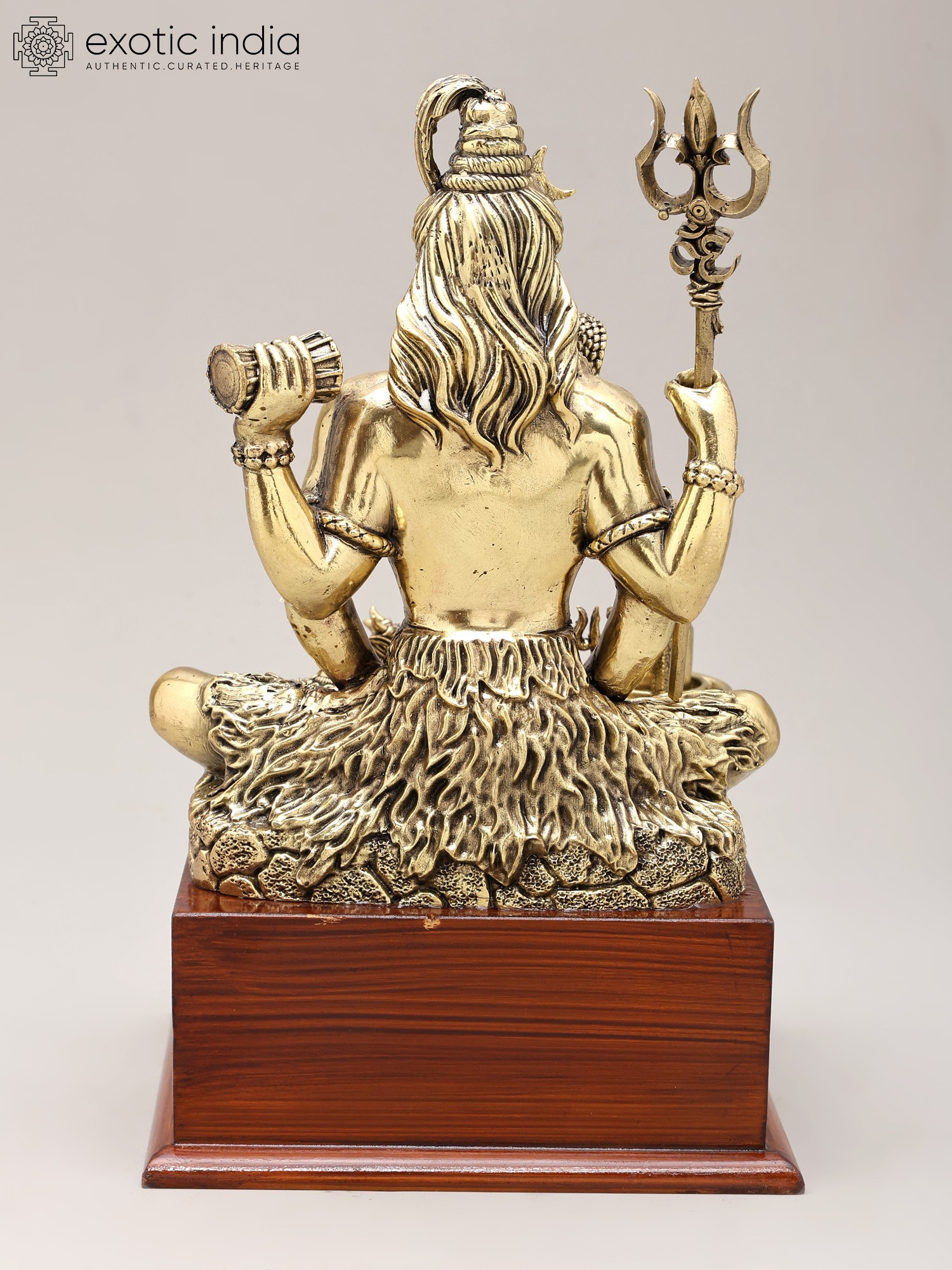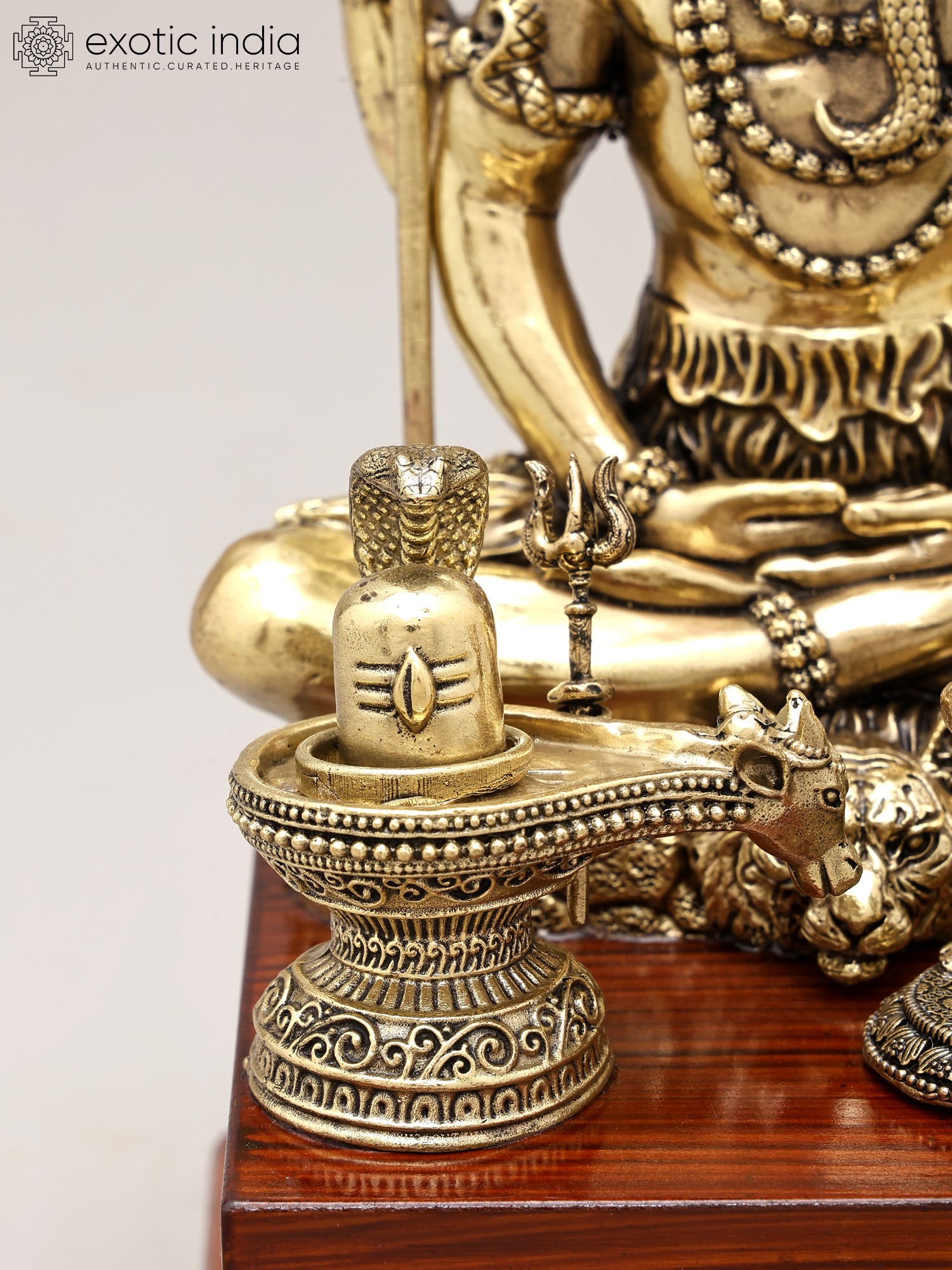 9" Brass Superfine Lord Shiva with Nandi and Shivalinga on Wood Base