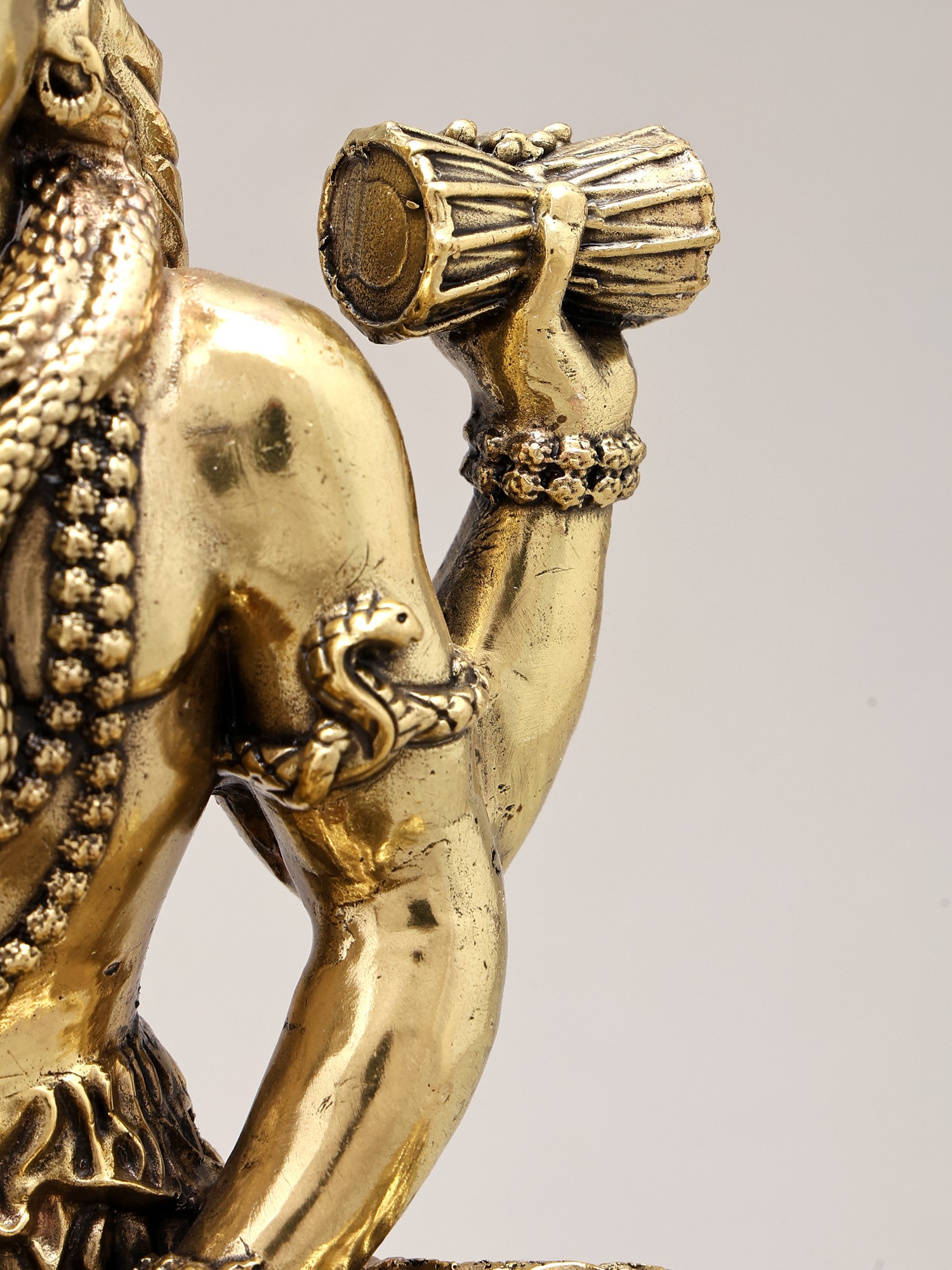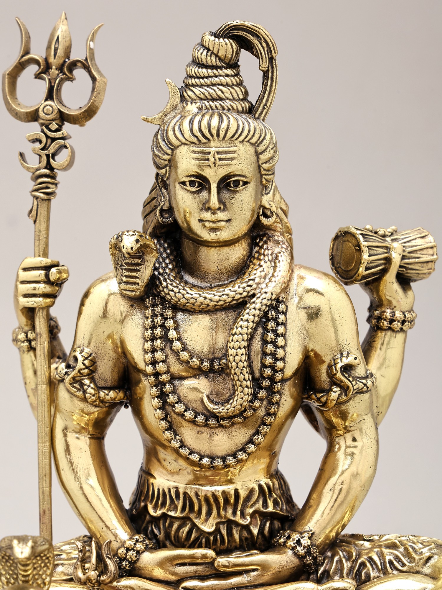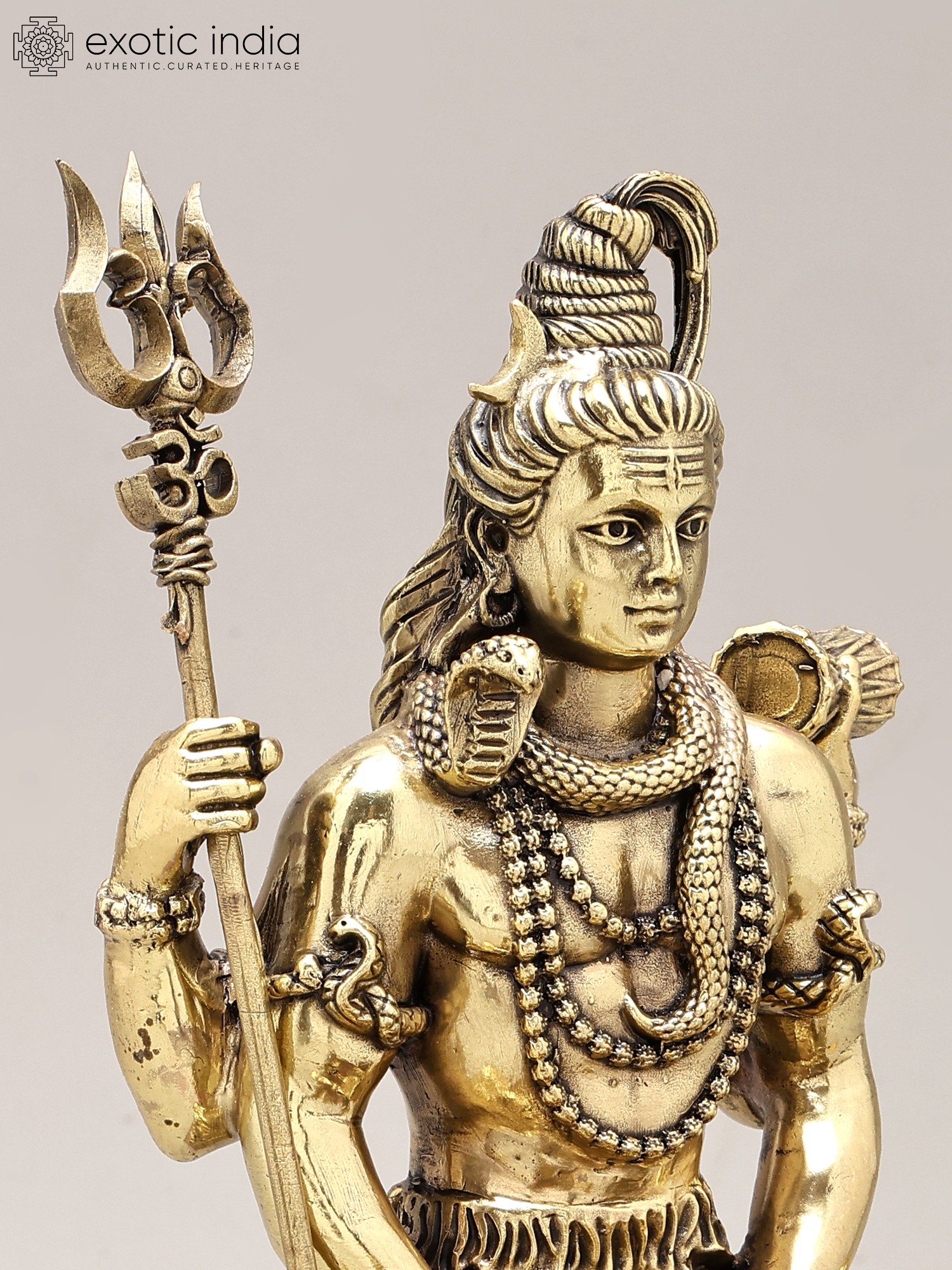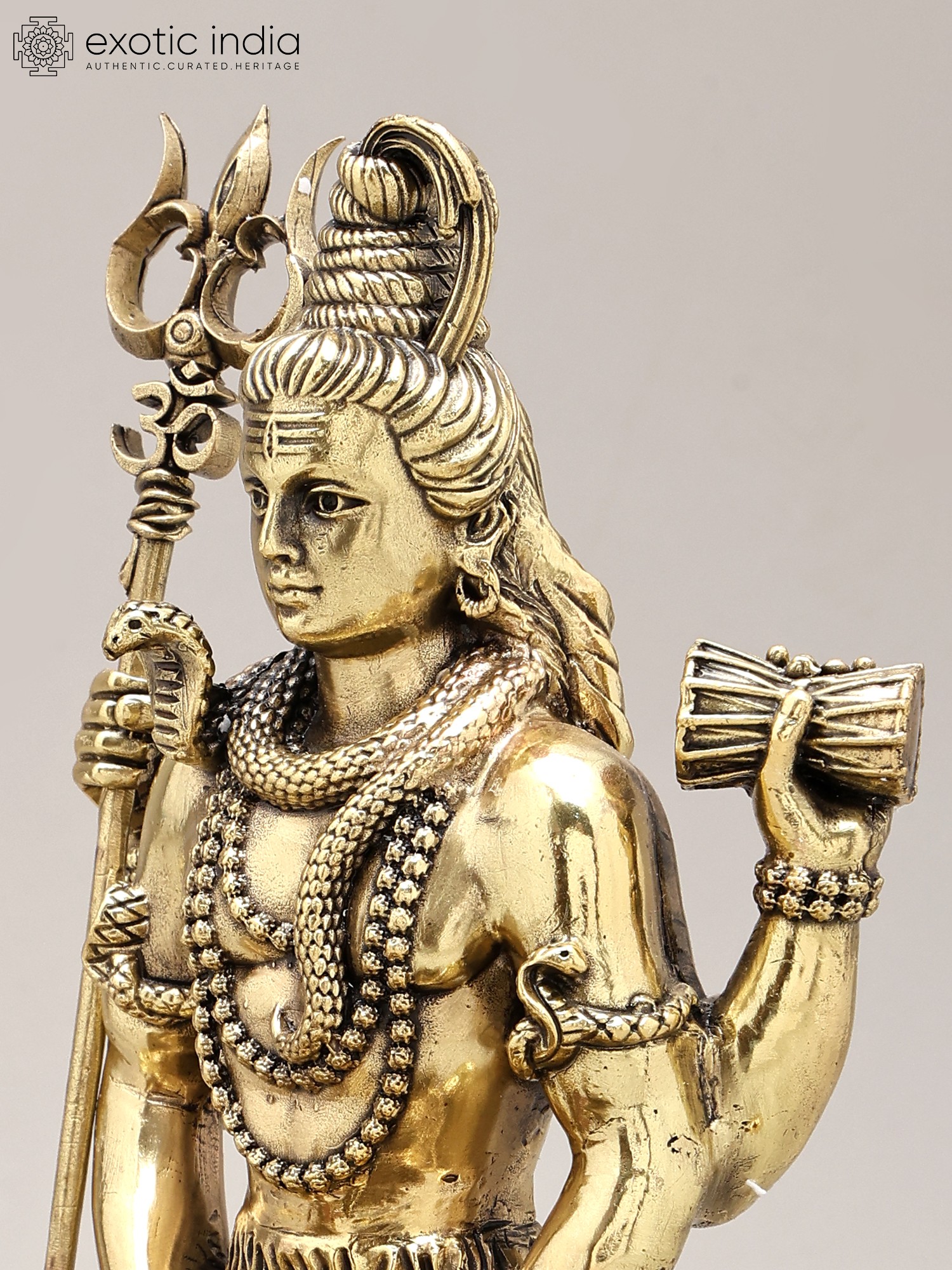 9" Brass Superfine Lord Shiva with Nandi and Shivalinga on Wood Base