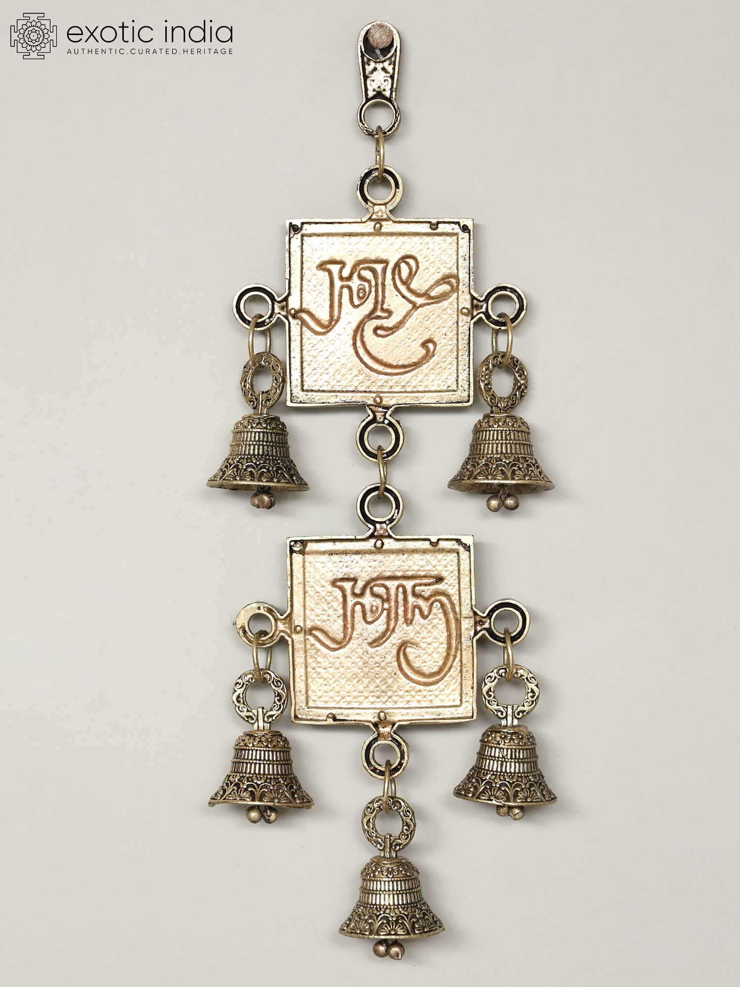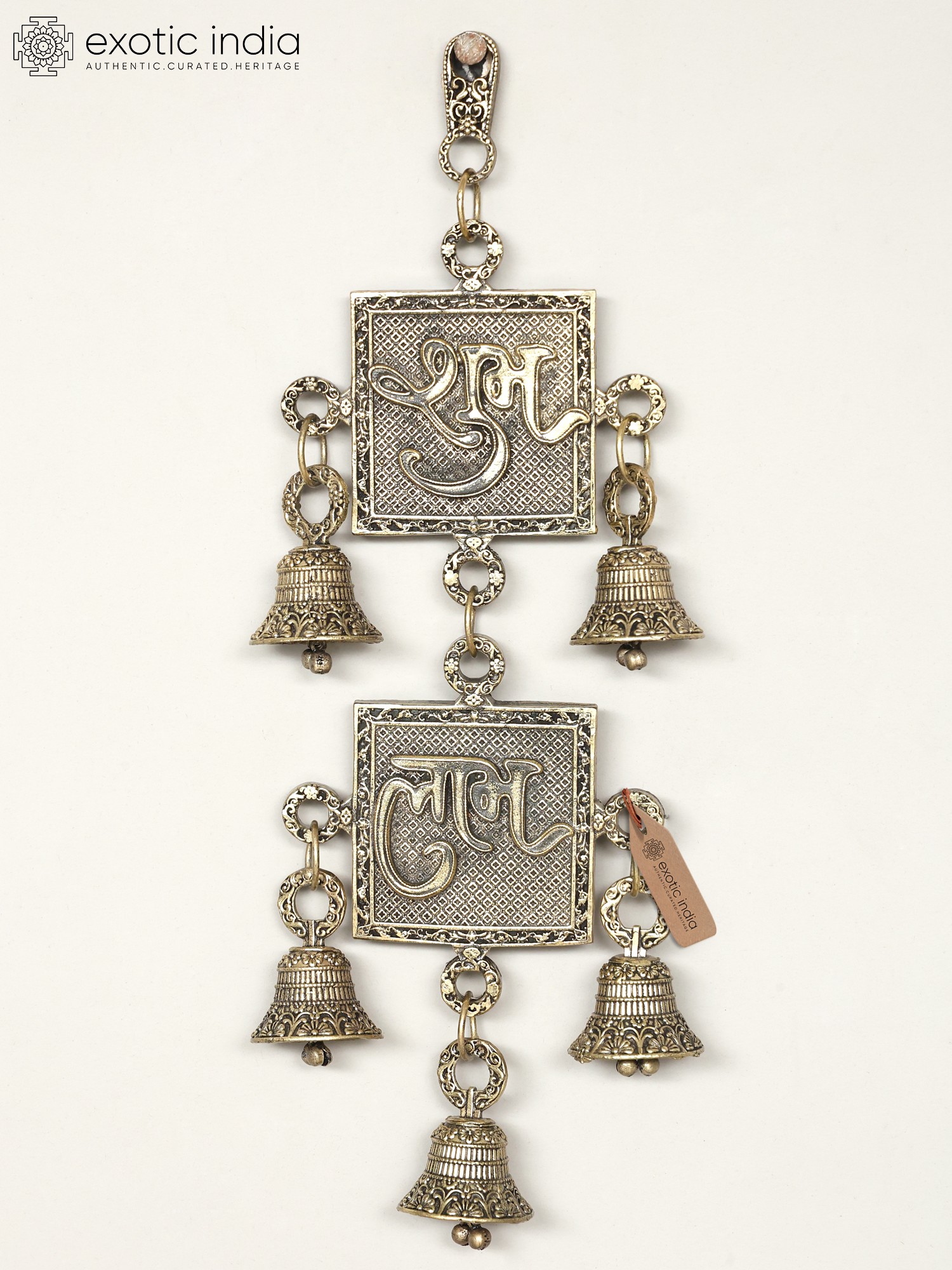 6" Superfine Pair of Shubh - Labh Wall Hanging Bells