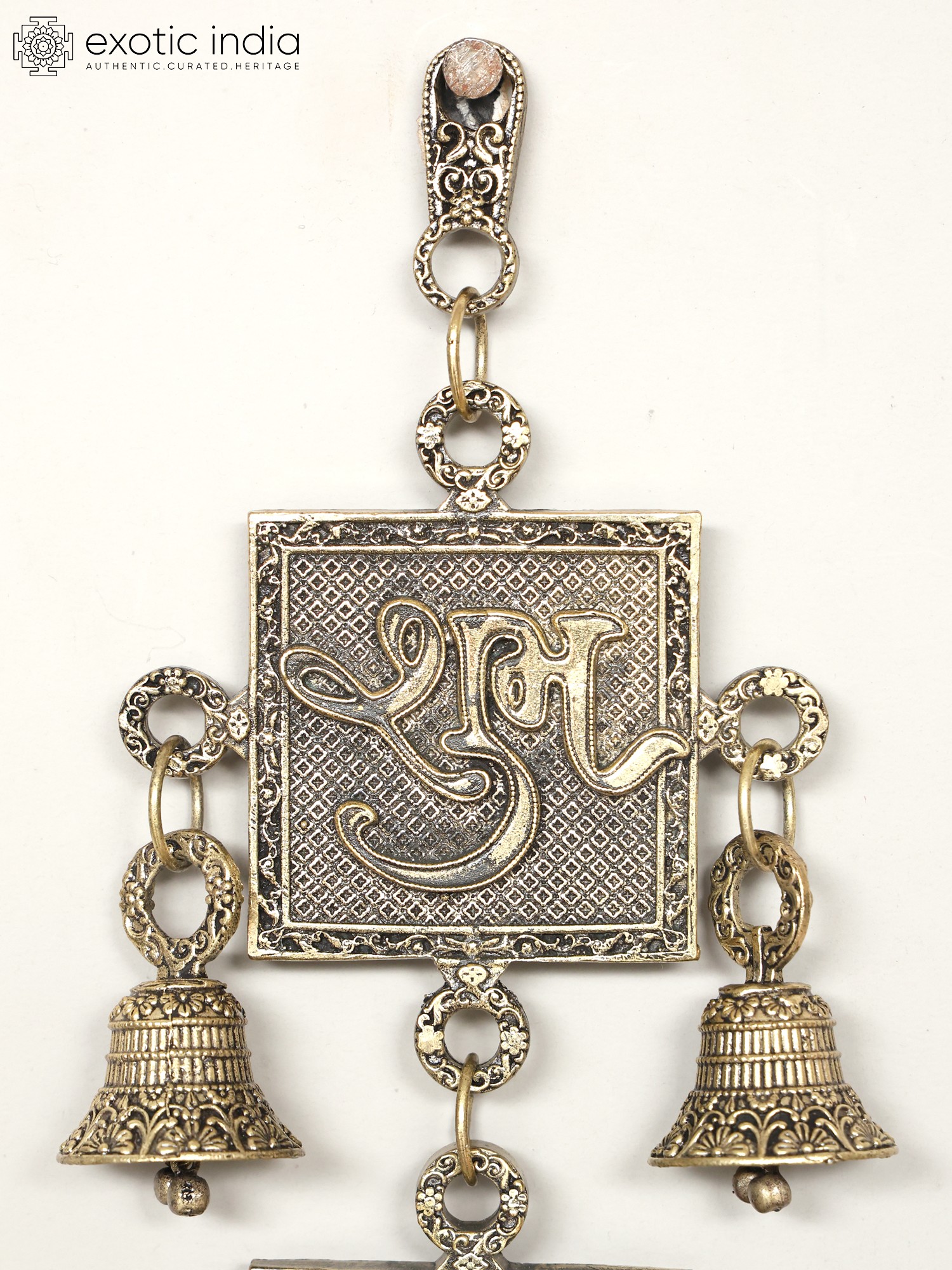 8" Auspicious Shubh Labh Wall Hanging with Bells | Handmade Brass Statue | Made in India