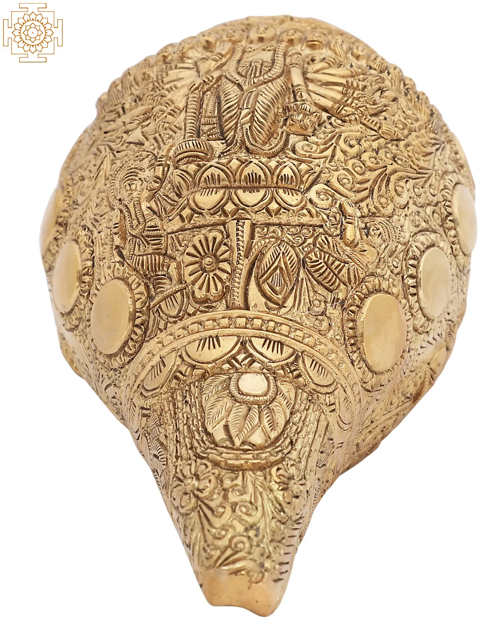 The Vishvarupa Vishnu Conch, a masterpiece handcrafted in India, holds a sacred place in Hindu cosmology. It depicts Lord Vishnu in his cosmic form, revealing the universe within himself. As a wall-hanging, it reminds you of the interconnectedness of all things and the infinite potential within you. Let it be a daily source of inspiration and a reflection of the profound unity that underlies the diversity of existence.