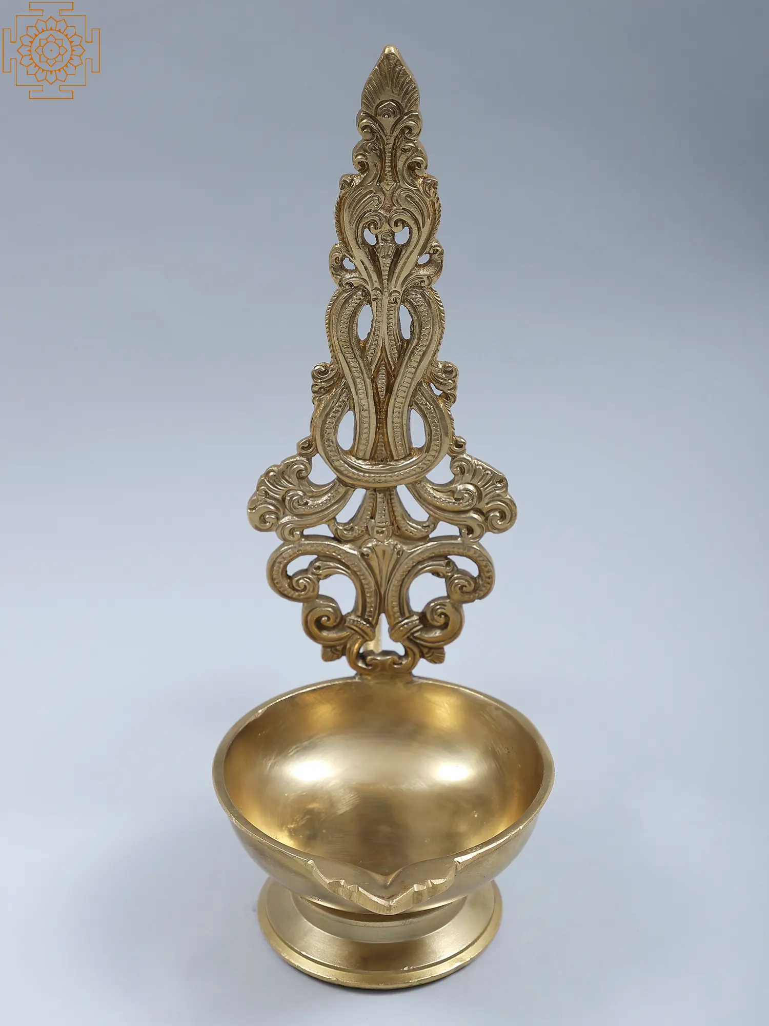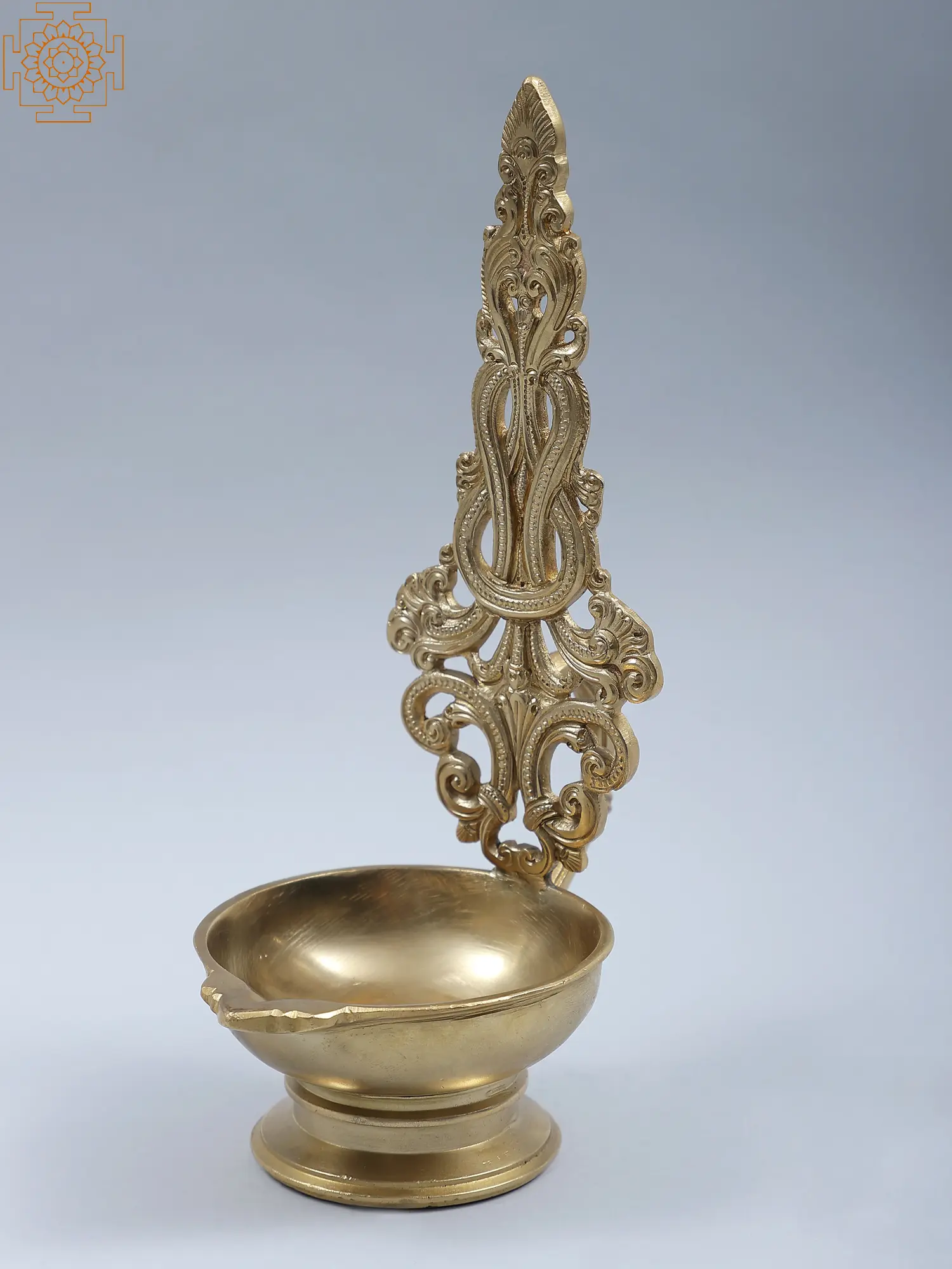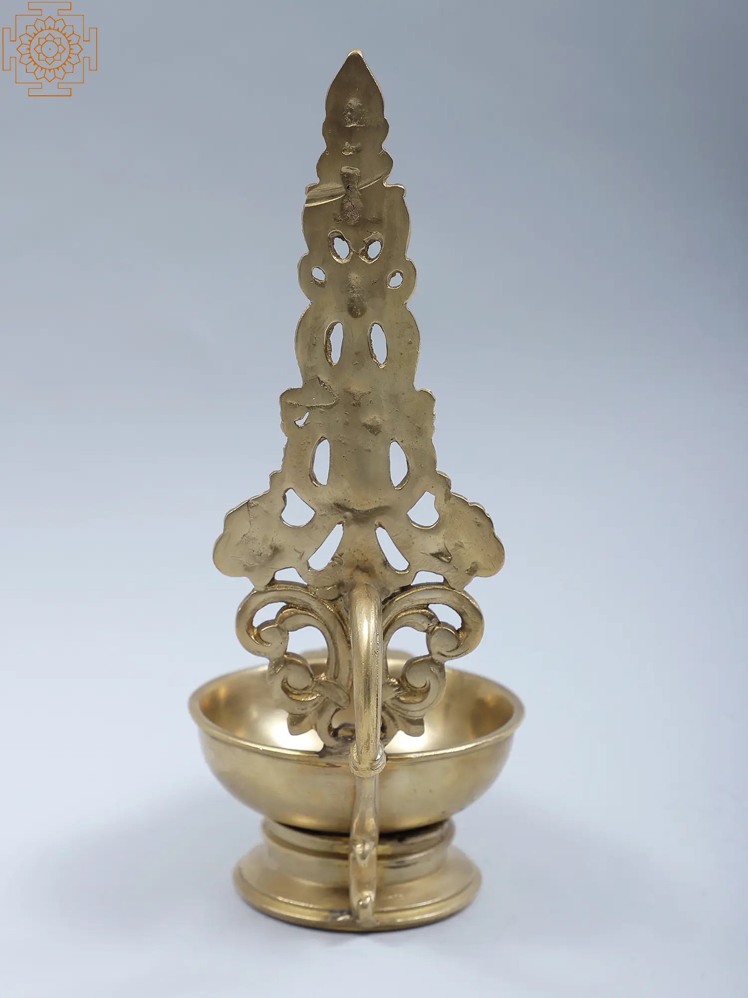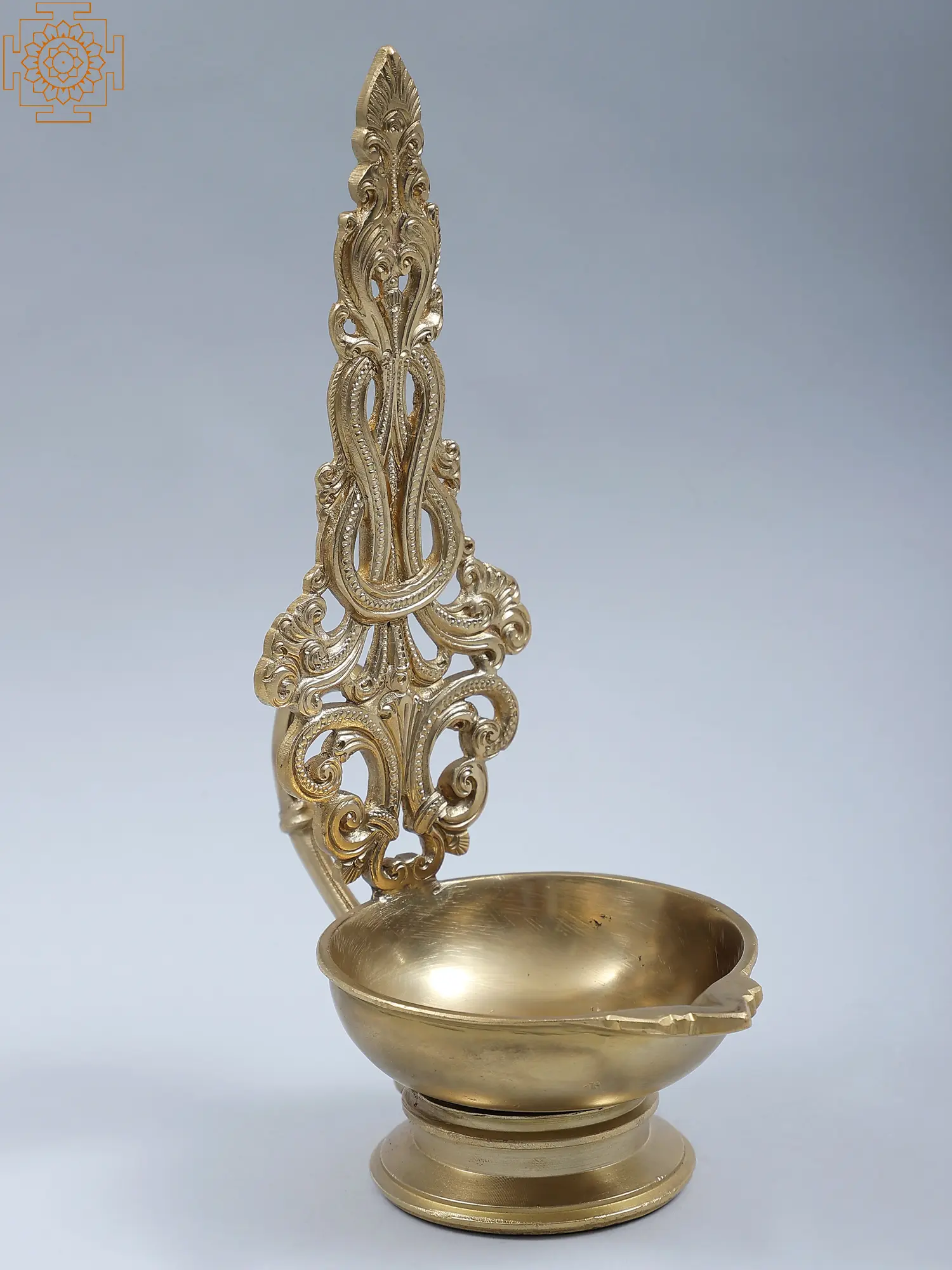 I fold my hands before the Lord, the sustainer of this creation, in the shape of this light. I like this light, which annihilates all the misery brought about by my errors and mistakes. This bronze lamp in the Hoysala style, aided by a wonderful design of coiled vines in the middle, is the gateway to a tranquil setting filled with divine warmth. This single-wick lamp with a robust stand is a beautiful synthesis of all things creative, made of high-quality bronze with a fine matt tint and adorned with exquisite vines.