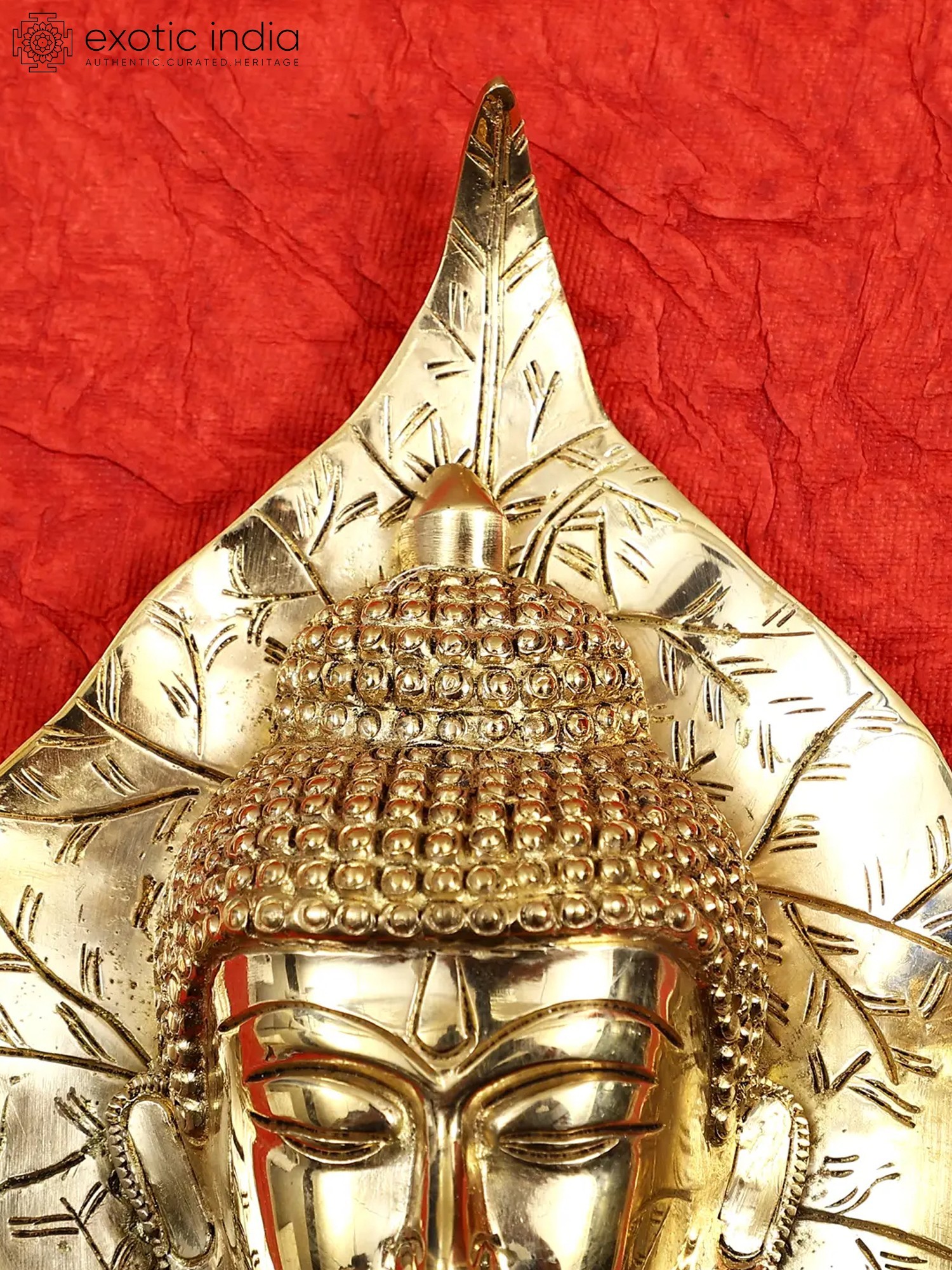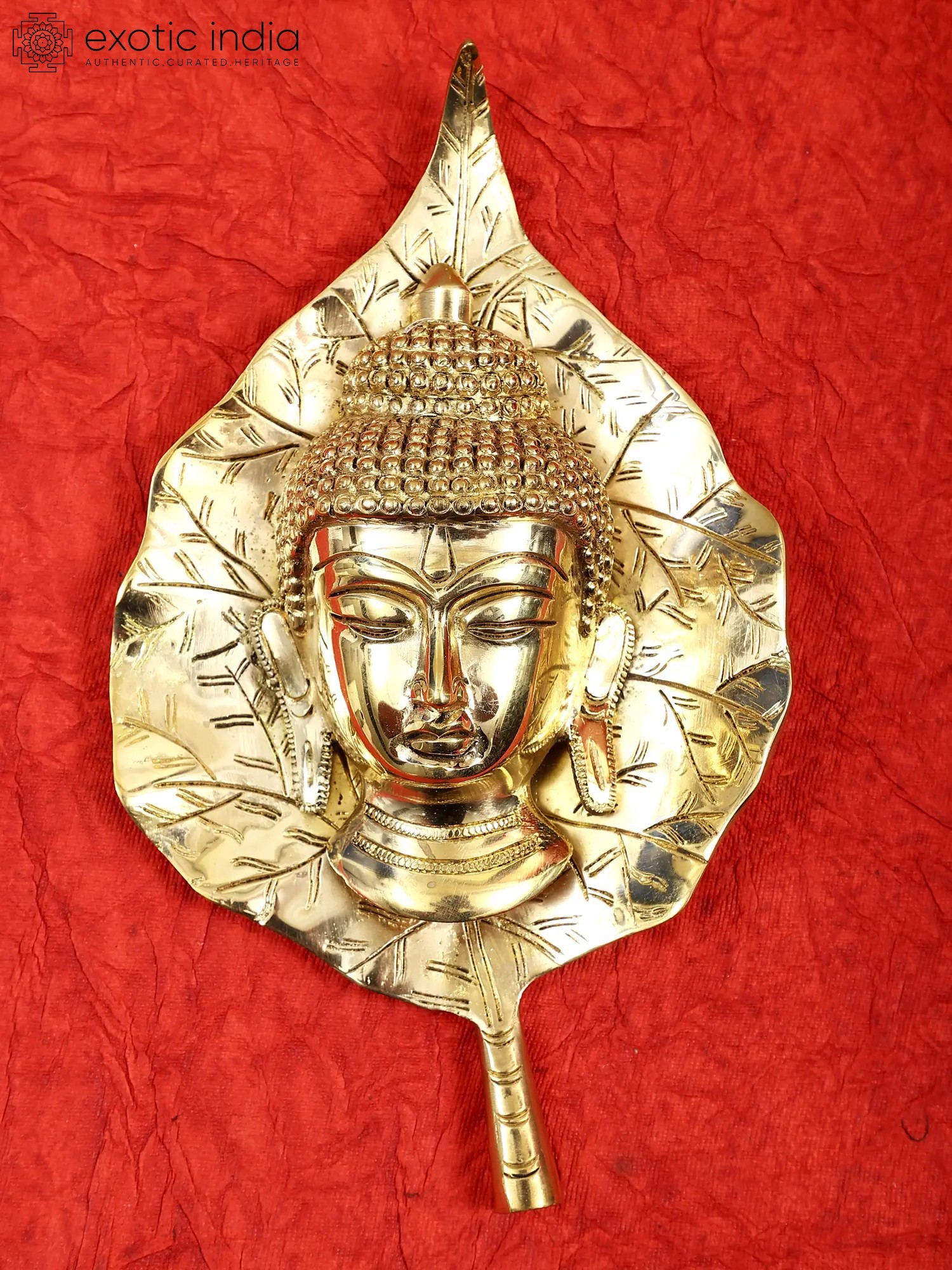 9" Buddha Head on Peepal Leaf Wall Hanging In Brass | Handmade | Made In India