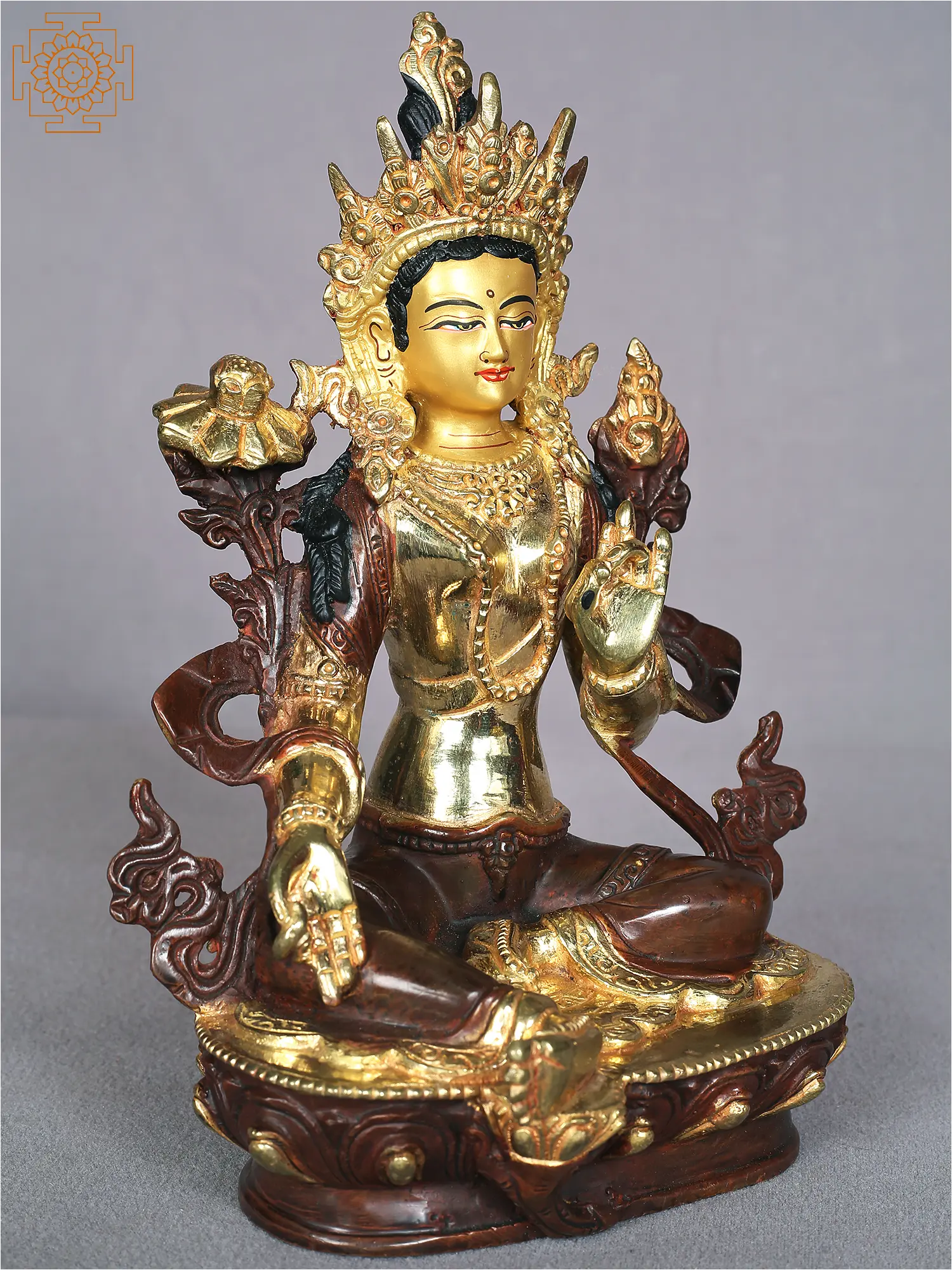 12" Green Tara (Tibetan Buddhist Deity) In Brass | Handmade | Made In India