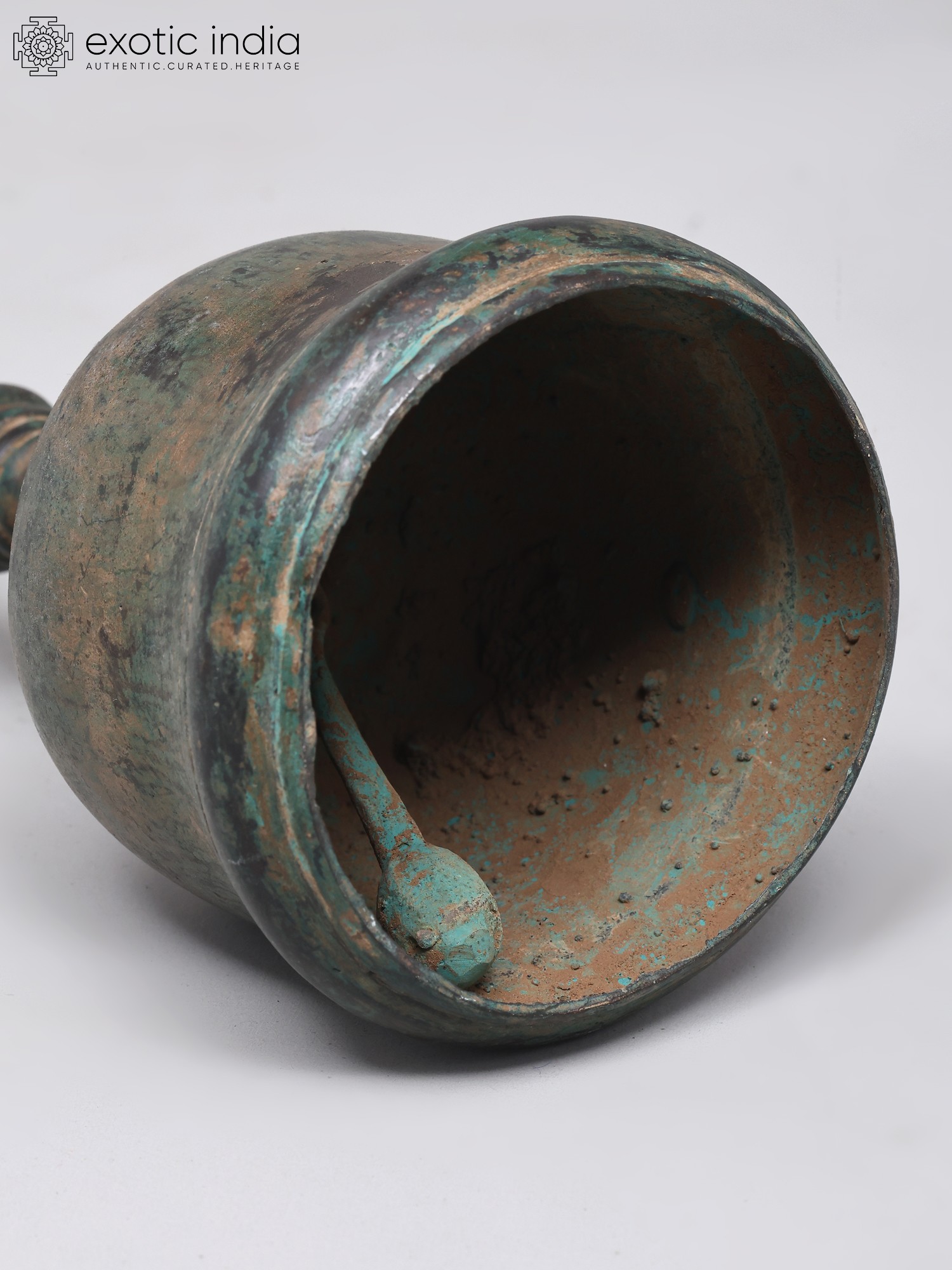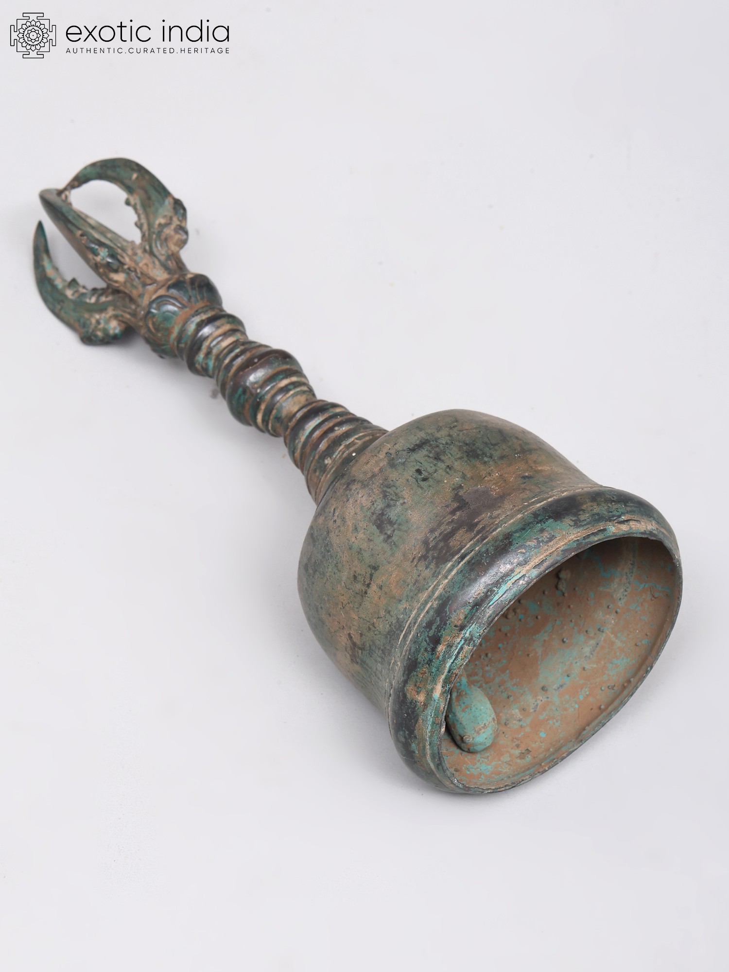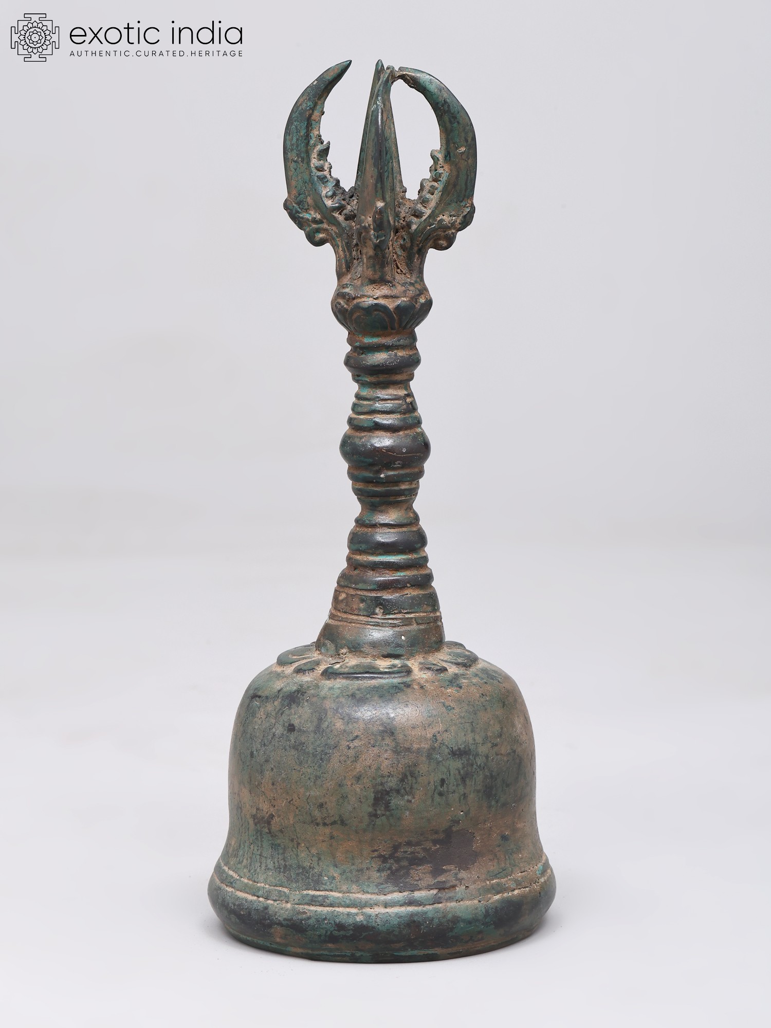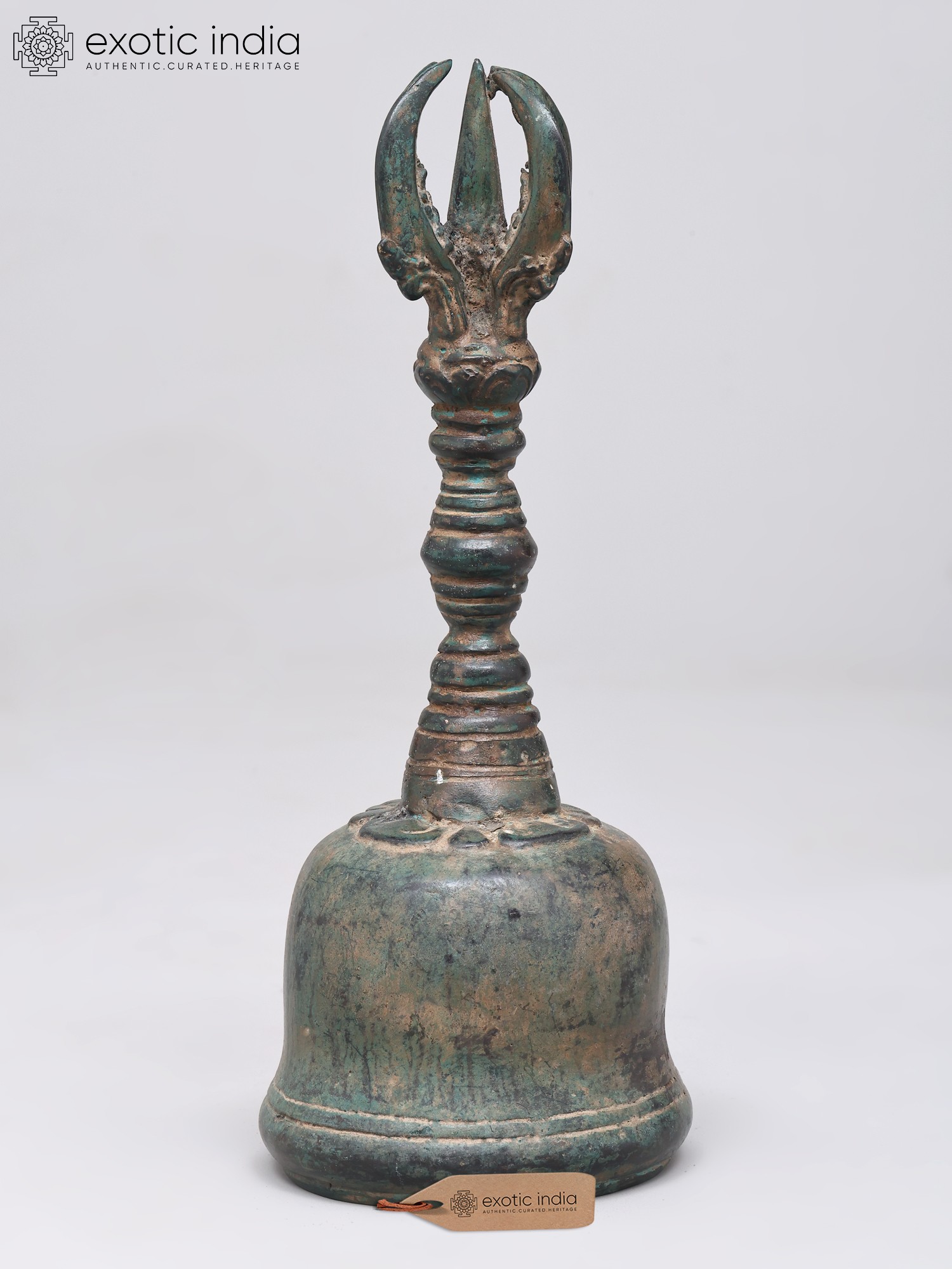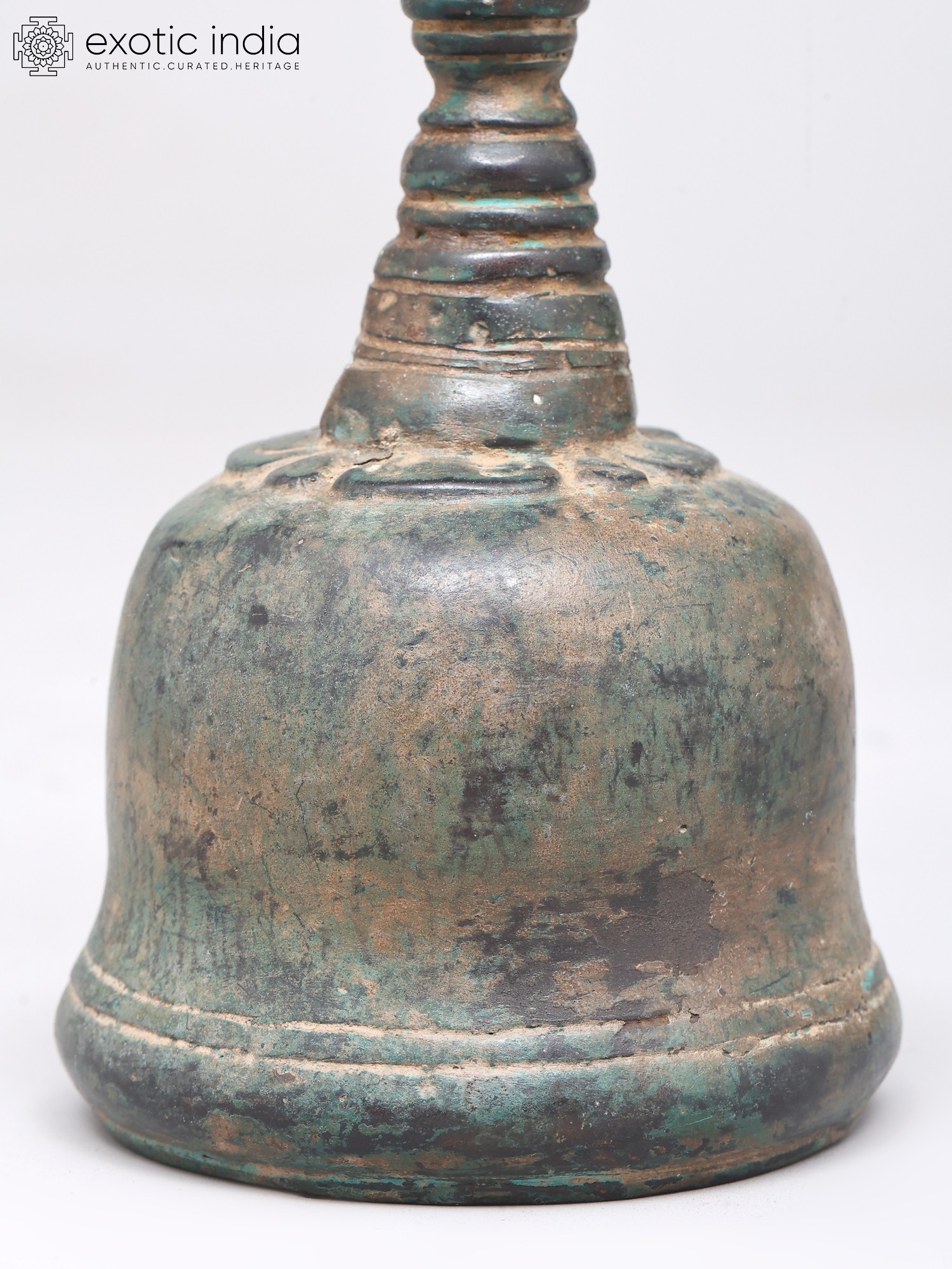 This exquisite bell is more than just an artifact; it is a conduit to the sacred, a resonance of ancient wisdom and spiritual practice. Crafted from robust brass using the time-honored lost wax method, its form speaks of meticulous artistry and a deep connection to tradition. The patinated surface, with its subtle verdigris hues, hints at the passage of time and the countless rituals it has witnessed, imbuing it with an aura of authenticity and profound spiritual depth.