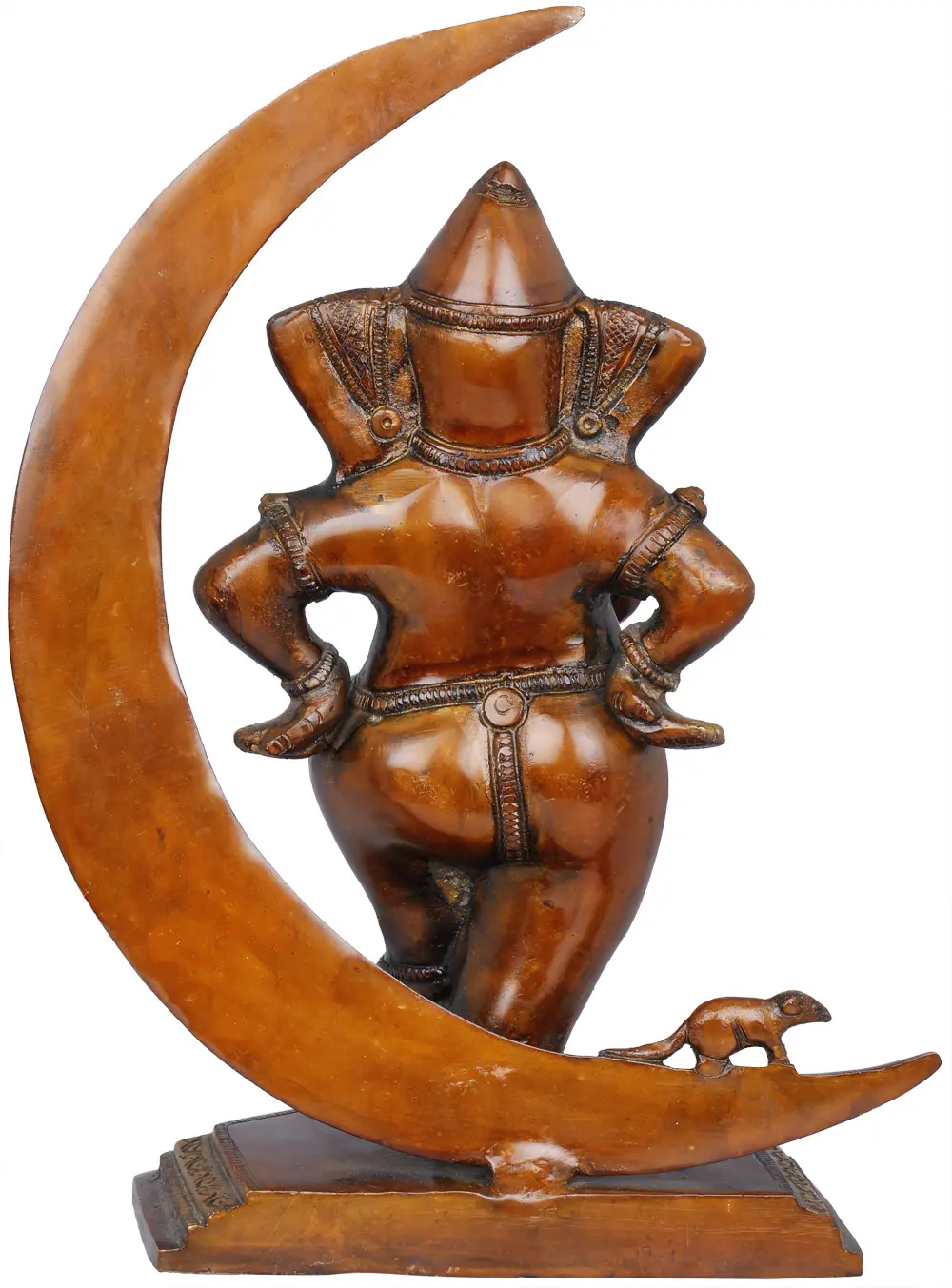 The chandrama angled as the backdrop, shows the cosmic attributes of this sculpture, accentuating lord Ganesha to be the supreme deity to be worshipped among the masses. Mooshak also enjoys his lord’s playful nritya and runs in excitement on the edge of the half moon. Shaivite tilak glows brightly on his forehead as a mark of his patronage and this ankle length dhoti that he wears slides down in absolute perfection.