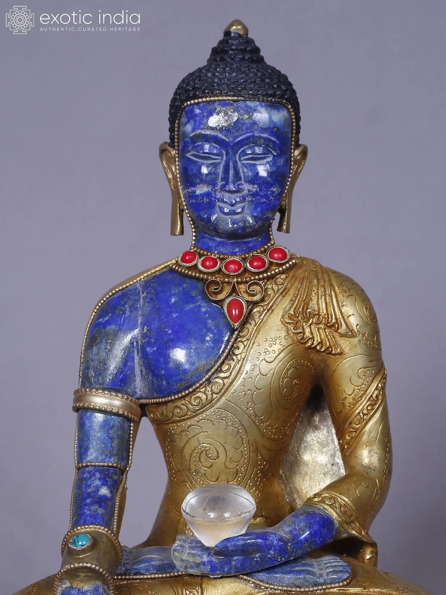 Nepal, nestled in the Himalayas, is a land steeped in ancient spiritual traditions. For centuries, Nepalese artisans have been renowned for their mastery of religious iconography. This statue is a testament to their skills, reflecting a rich cultural heritage. The intricate details, the precise craftsmanship, and the use of precious materials, all contribute to the statue’s exceptional quality. Every curve, every detail, is meticulously crafted, paying homage to traditional Nepalese artistry and the profound spiritual significance of the Buddha. The choice of lapis lazuli – a stone long associated with royalty, truth, and spiritual awakening – further underscores this statue's unique value.