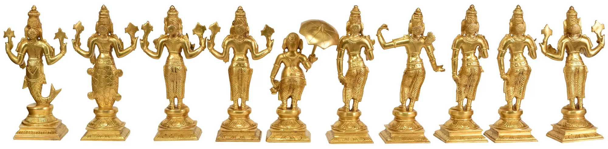 9" Dashavatara (Ten Incarnations of Lord Vishnu) In Brass | Handmade | Made In India