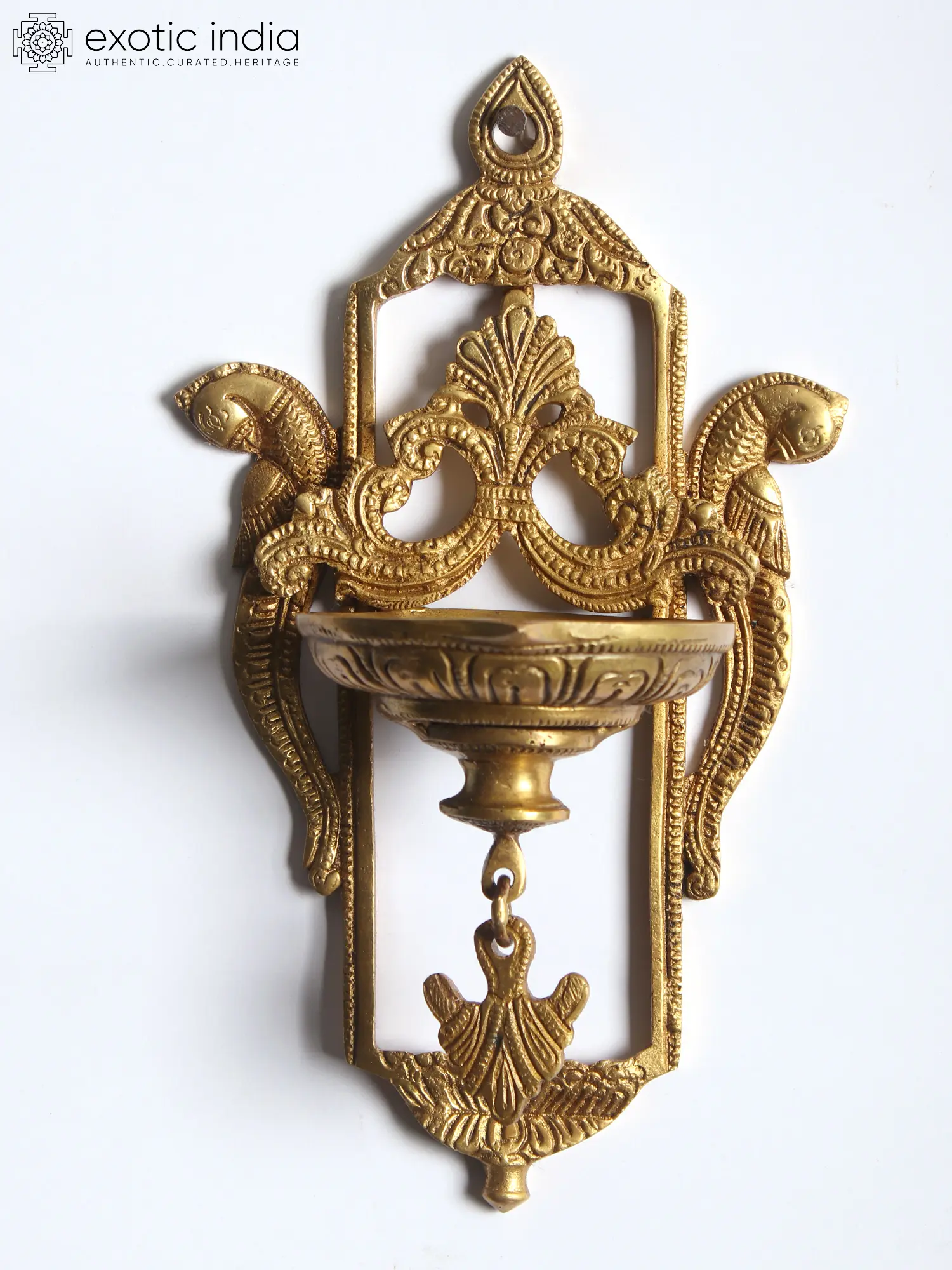 This Hoysala-style decoration, showcased in everyday items like this Designer Parrot Lamp, elevates functionality to artistry. The lamp's single-wick leaf-shaped design, adorned with the Hoysala vine as the central motif, transforms it into a cultural treasure. Two intricately carved parrots on either side add aesthetic balance, embodying the Hoysala dynasty's exquisite craftsmanship.