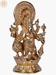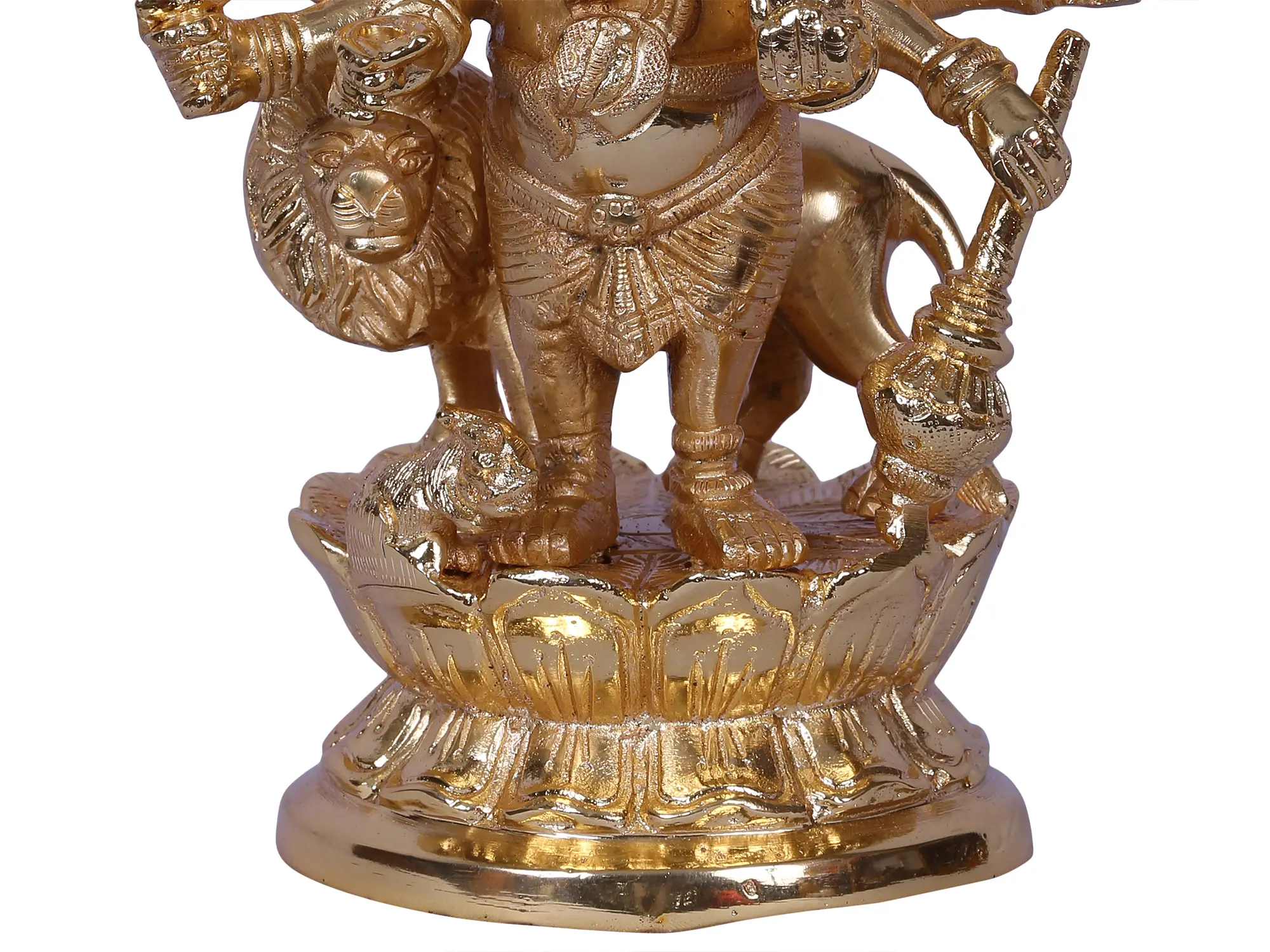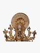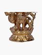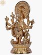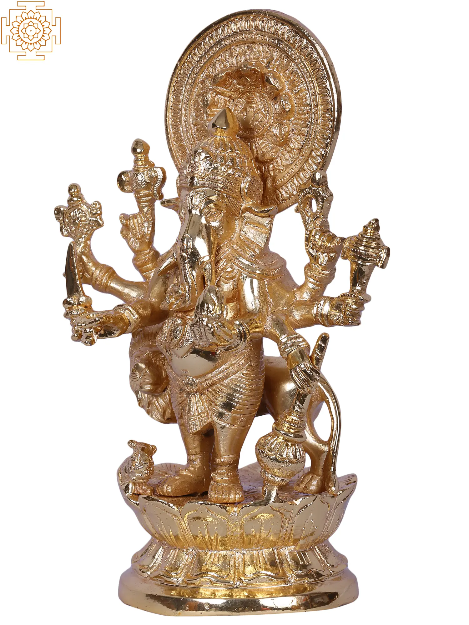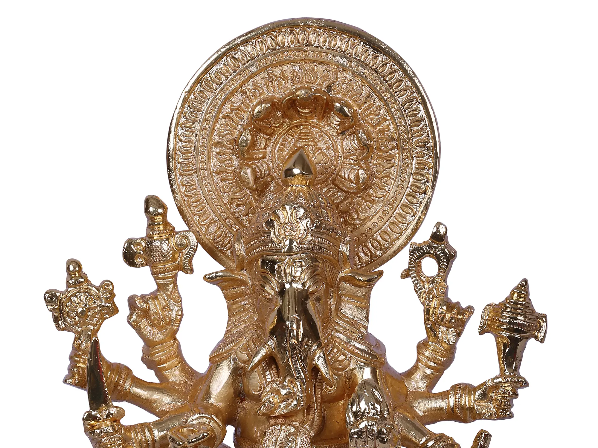 Cast in shining brass - this Dashabhuja Veera Ganapati symbolizes the supreme power of Lord Ganesha, manifesting his valor and strength to overcome any obstacles and protect his devotees. The ten arms signify his limitless abilities and his presence everywhere, capable of granting boons and dispelling fear. The various weapons represent his divine yet fierce attributes that destroy negativity and ignorance, while the modak and lotus symbolize his benevolence and bestowal of spiritual rewards.