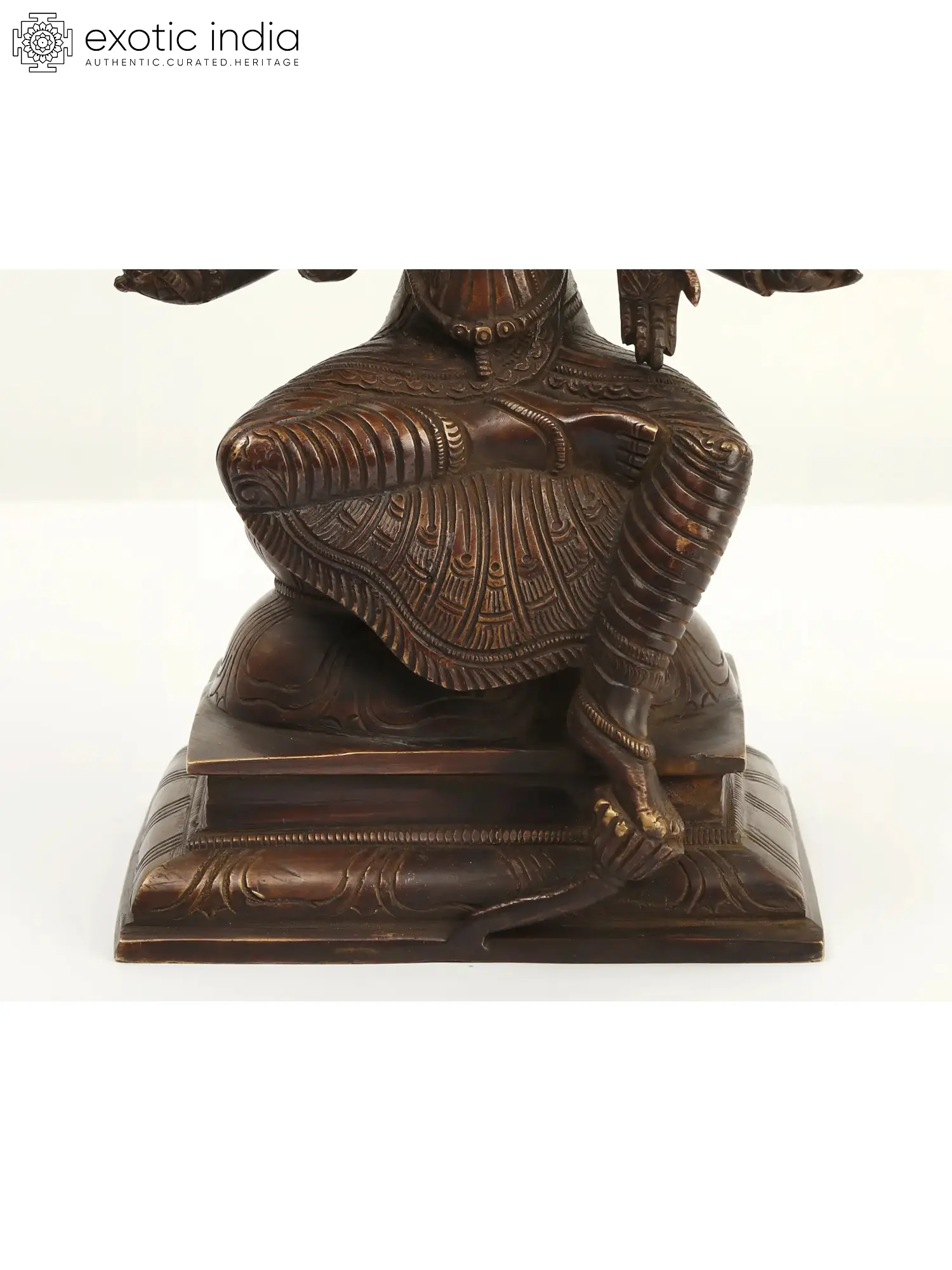 This magnificent 9.5-inch tall brass statue of Varahi, the eight-armed Goddess, is a testament to the rich artistry and spiritual depth of Indian craftsmanship. Each intricate detail, from the fierce yet serene expression on her face to the meticulously carved weapons in her hands, speaks volumes about the dedication and skill poured into its creation. The beautiful patina, a blend of dark and light tones, adds to its antique charm and evokes a sense of timeless reverence. This is not just a decorative piece; it's a powerful symbol of strength, protection, and divine energy, ready to grace your home or sacred space.