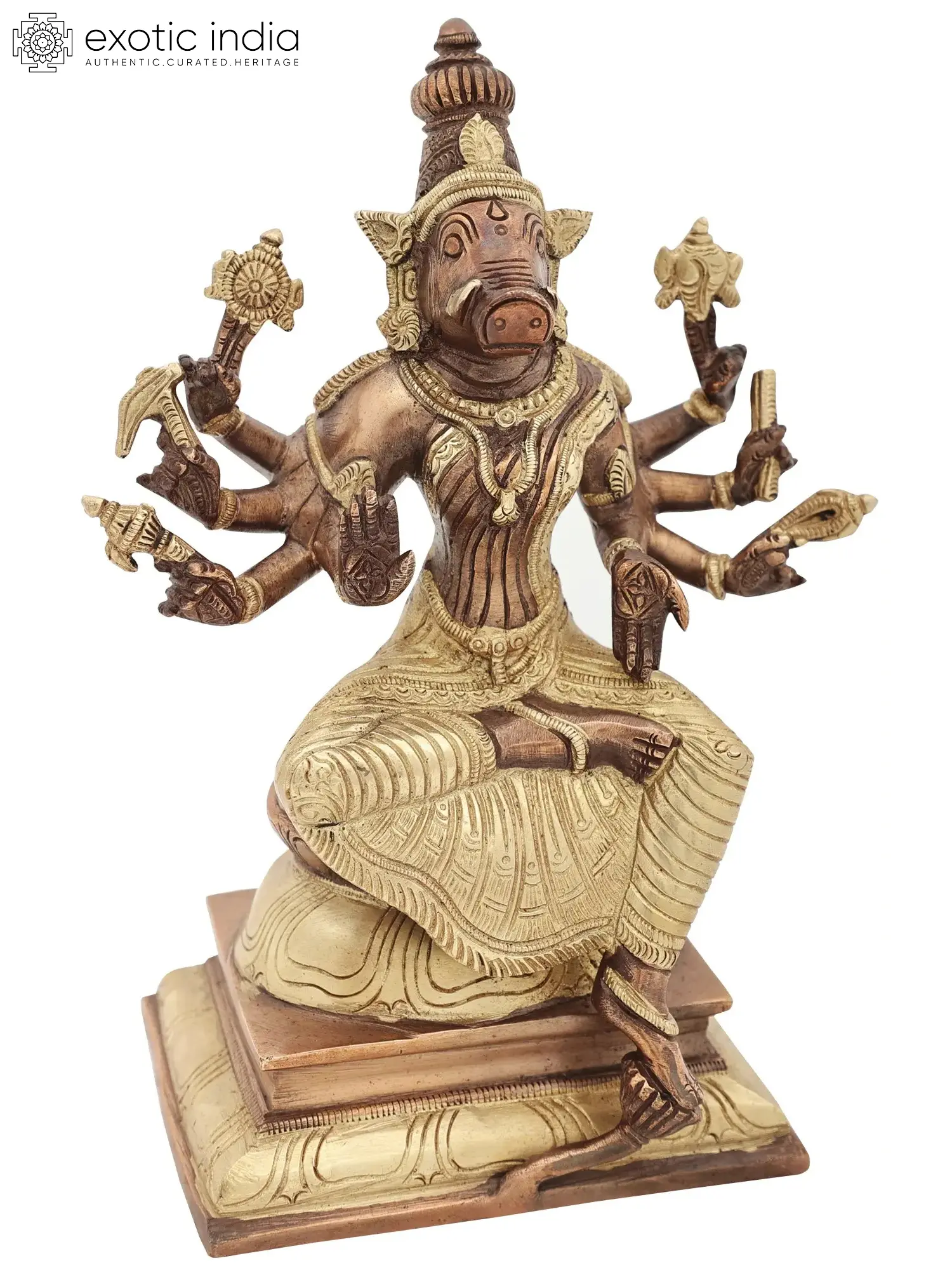 9" Eight-Armed Goddess Varahi Brass Idol | Handcrafted Indian Statues