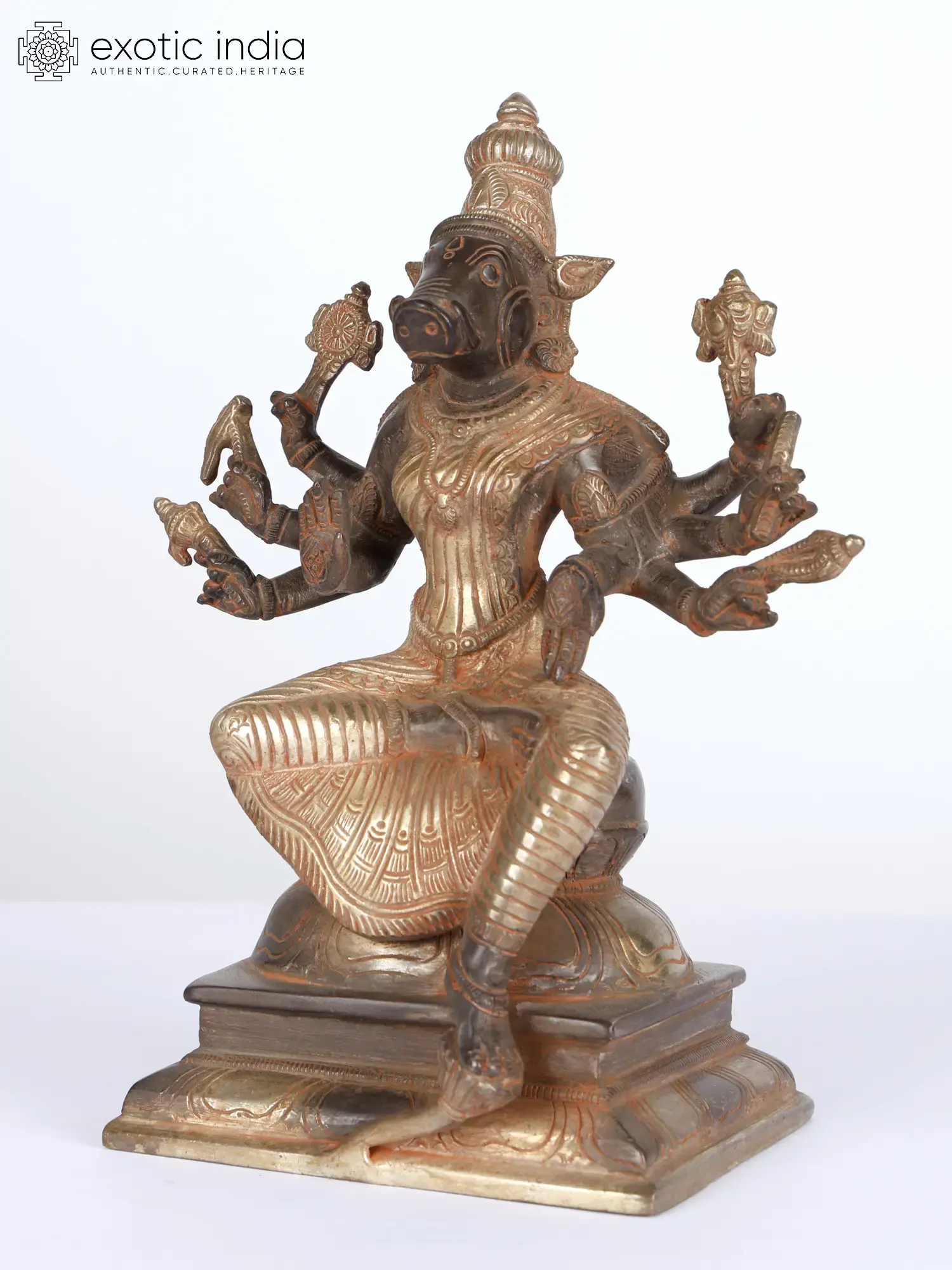 9" Eight-Armed Goddess Varahi Brass Idol | Handcrafted Indian Statues