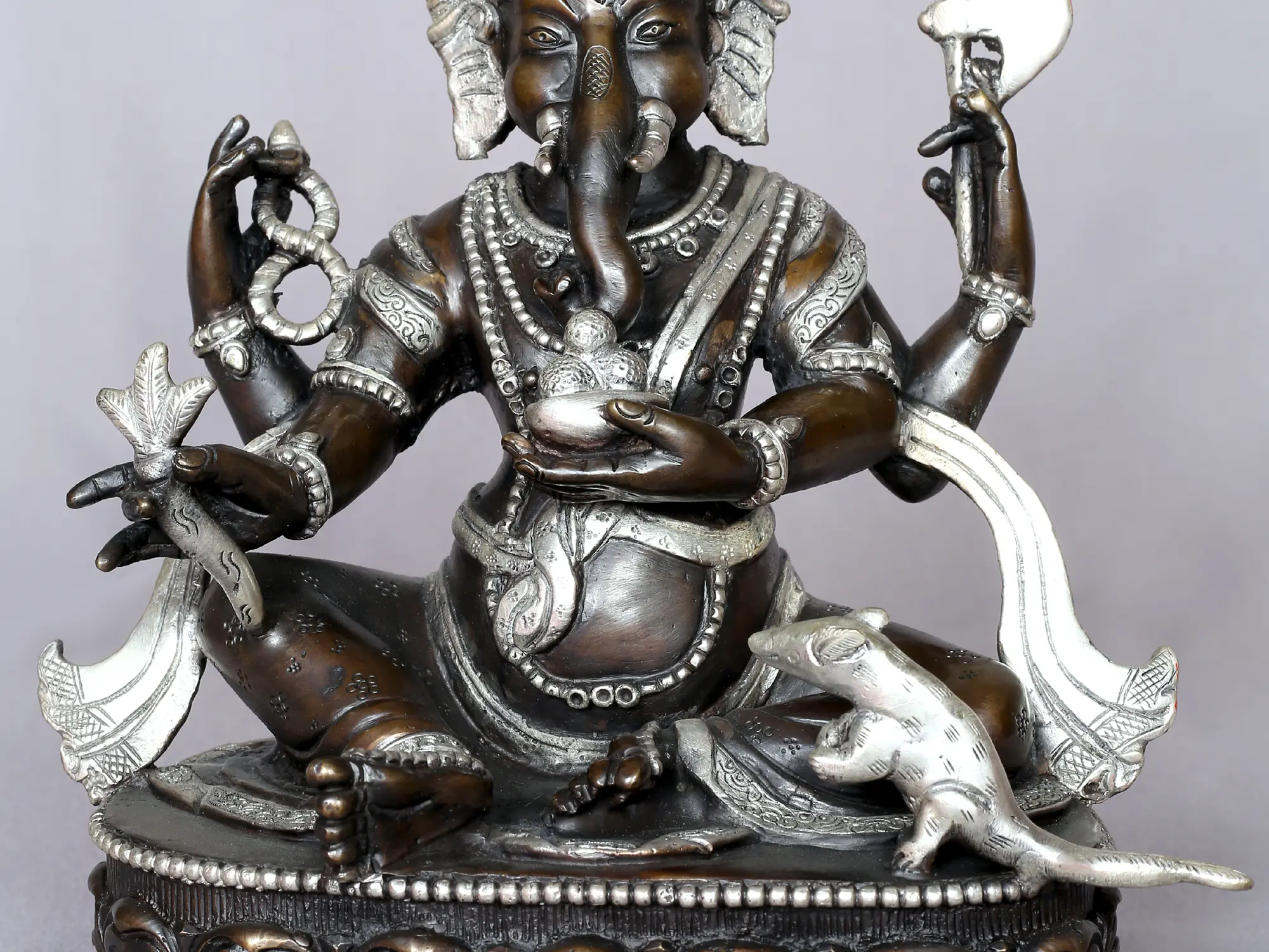 Eighteen-Armed Lord Ganesha Dancing on Rat | Nepalese Brass Statute
