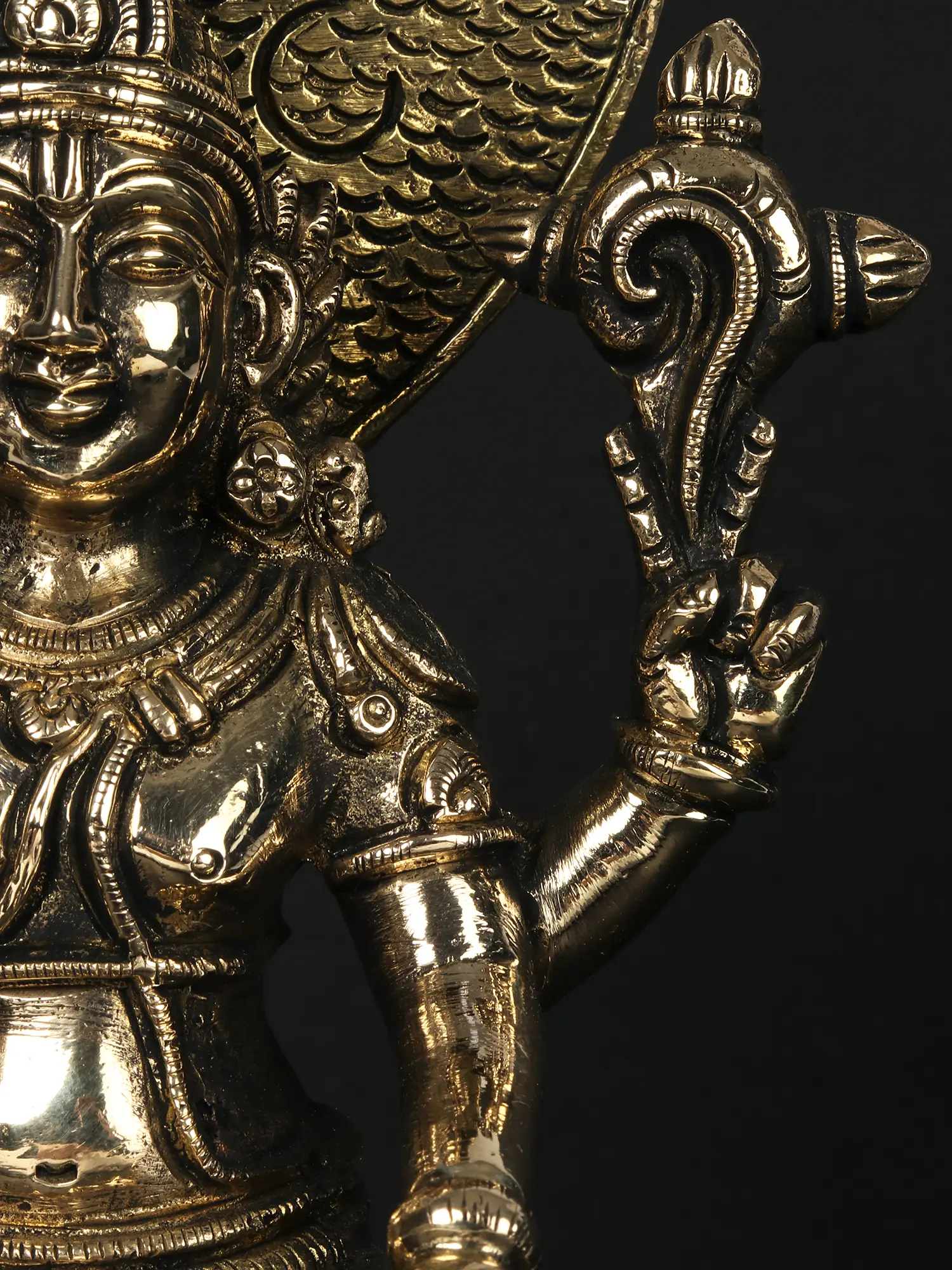 Crafted from high-quality brass, this statue possesses a timeless allure and a rich, lustrous finish that will only deepen with age. The warm golden hue of the brass evokes a sense of divine radiance and sanctity. The solid construction ensures its durability, making it a cherished heirloom for generations to come. Whether placed in your home altar, meditation space, or as a centerpiece in your living room, this statue serves as a powerful reminder of divine protection, cosmic balance, and the enduring quest for spiritual peace. It is a piece that resonates with deep spiritual significance and artistic excellence.