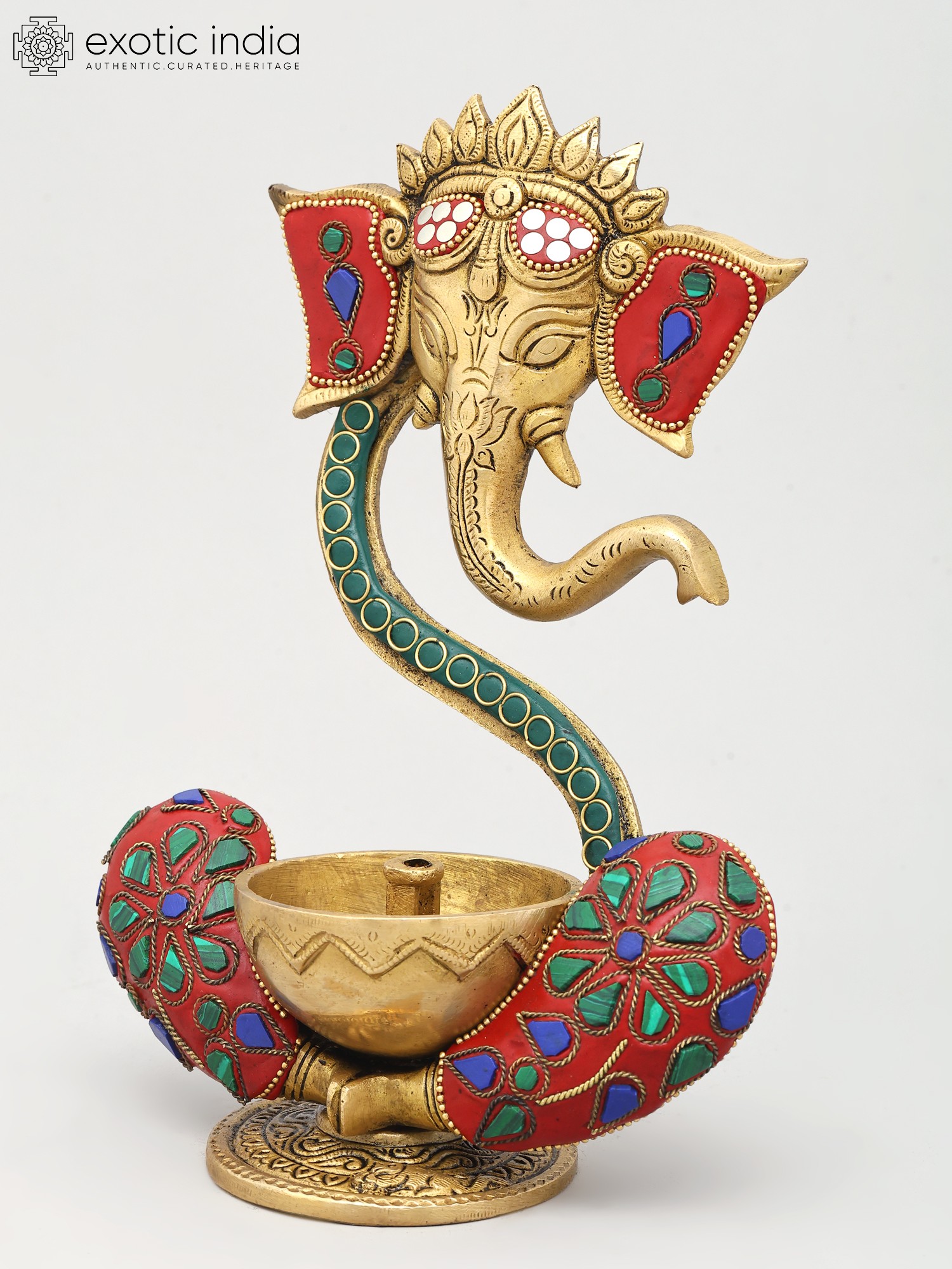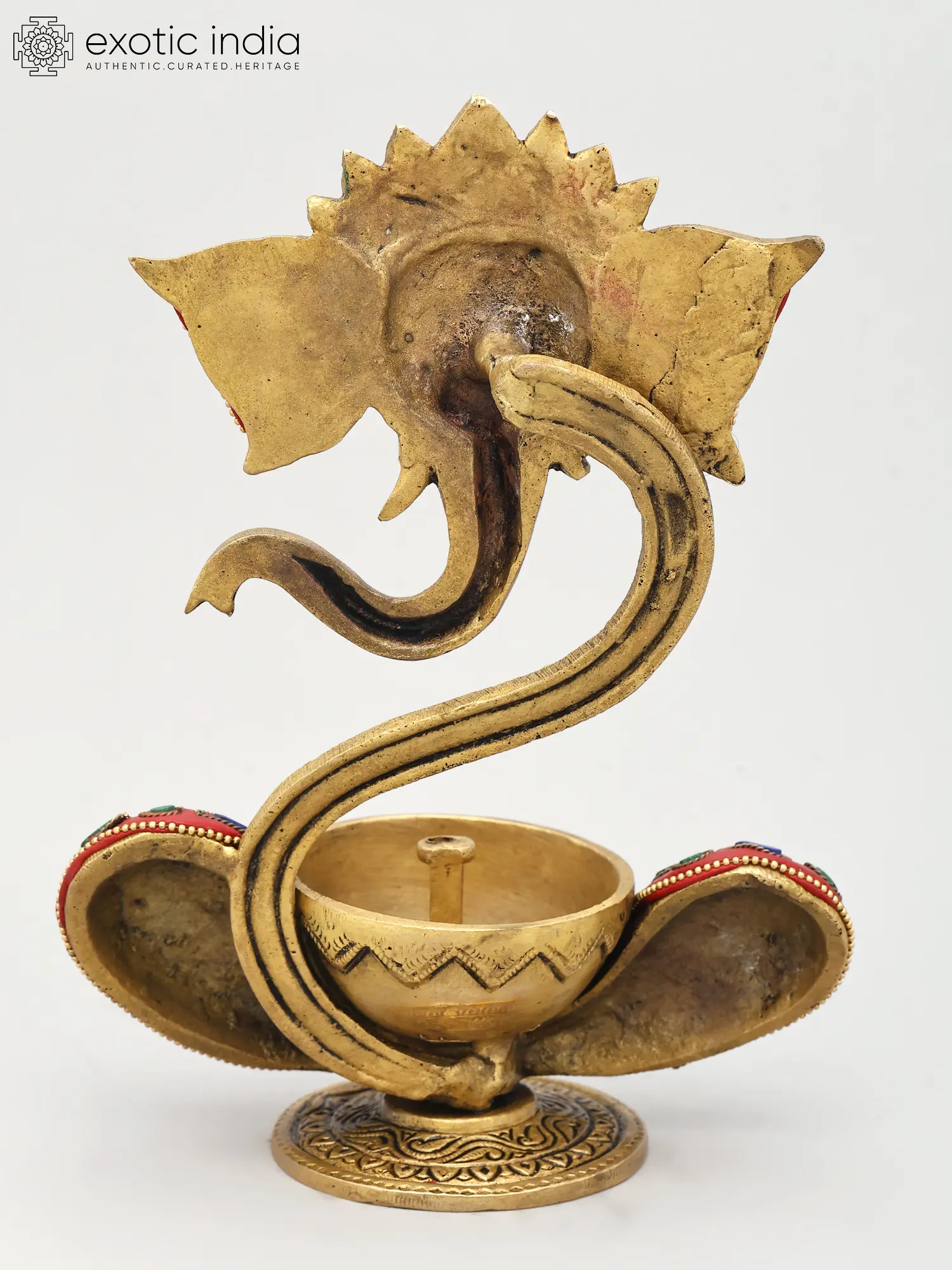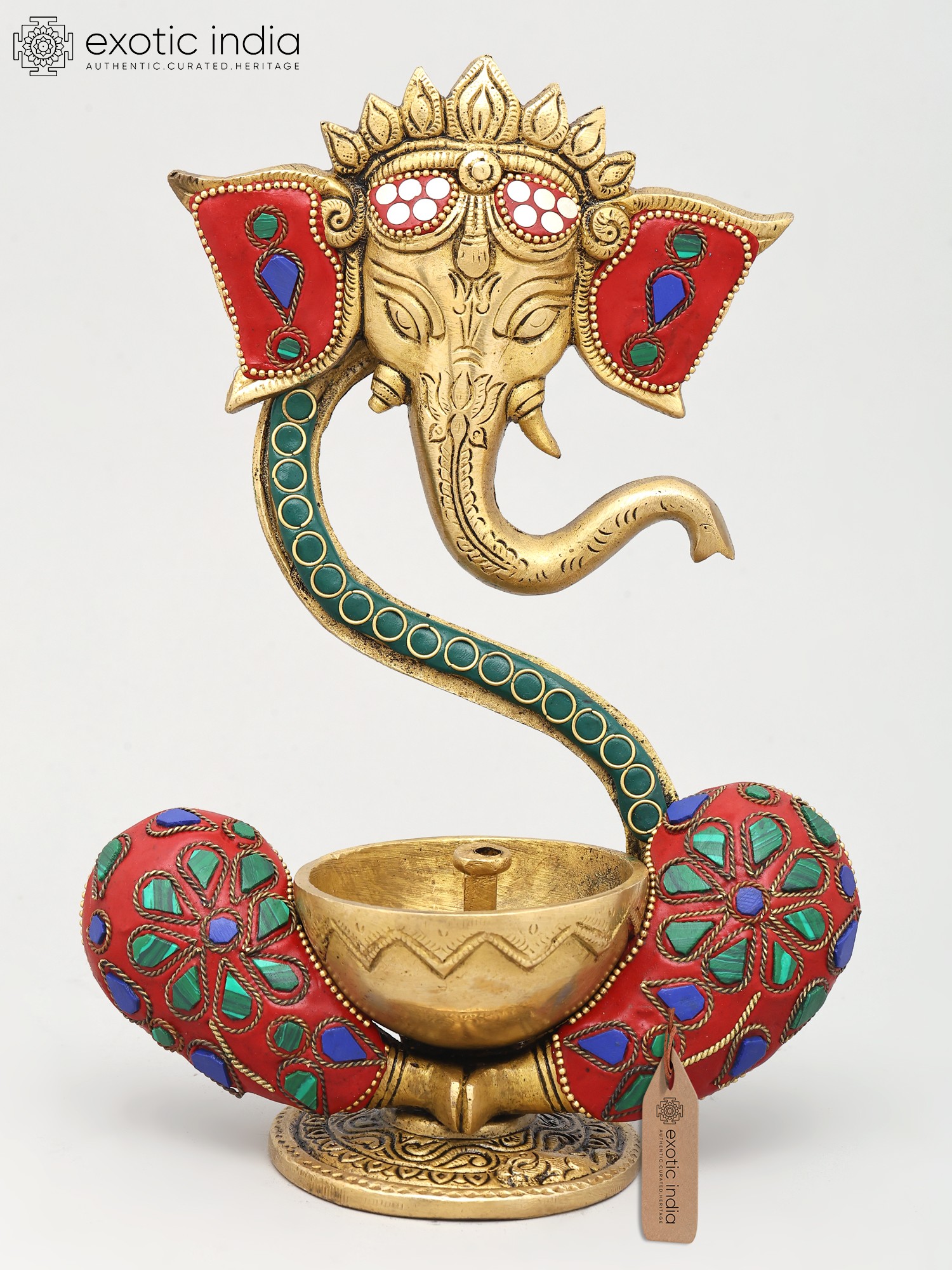 10" Designer Ganesha Lamp in Brass with Inaly Work