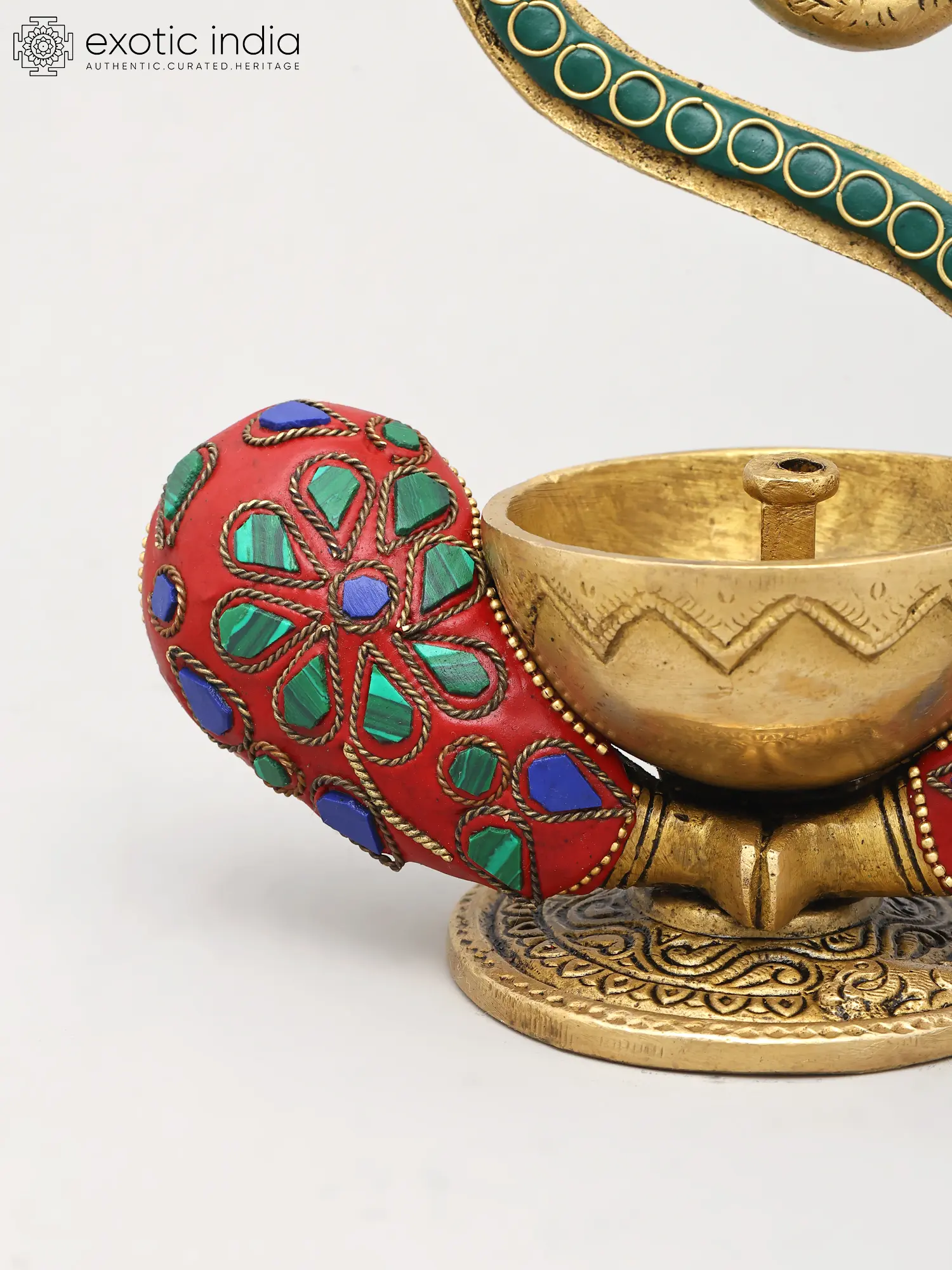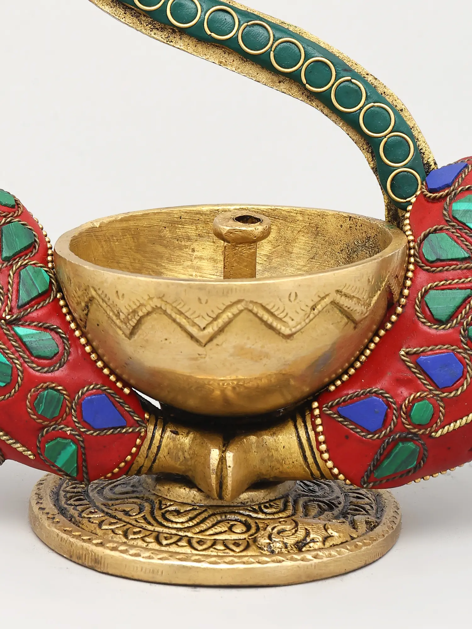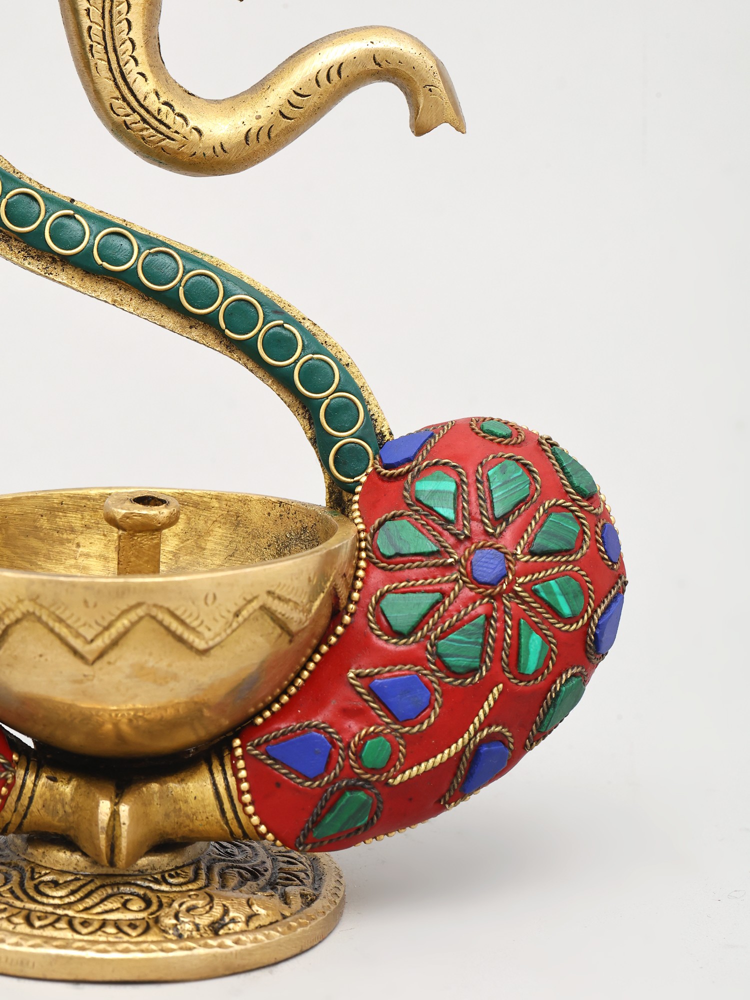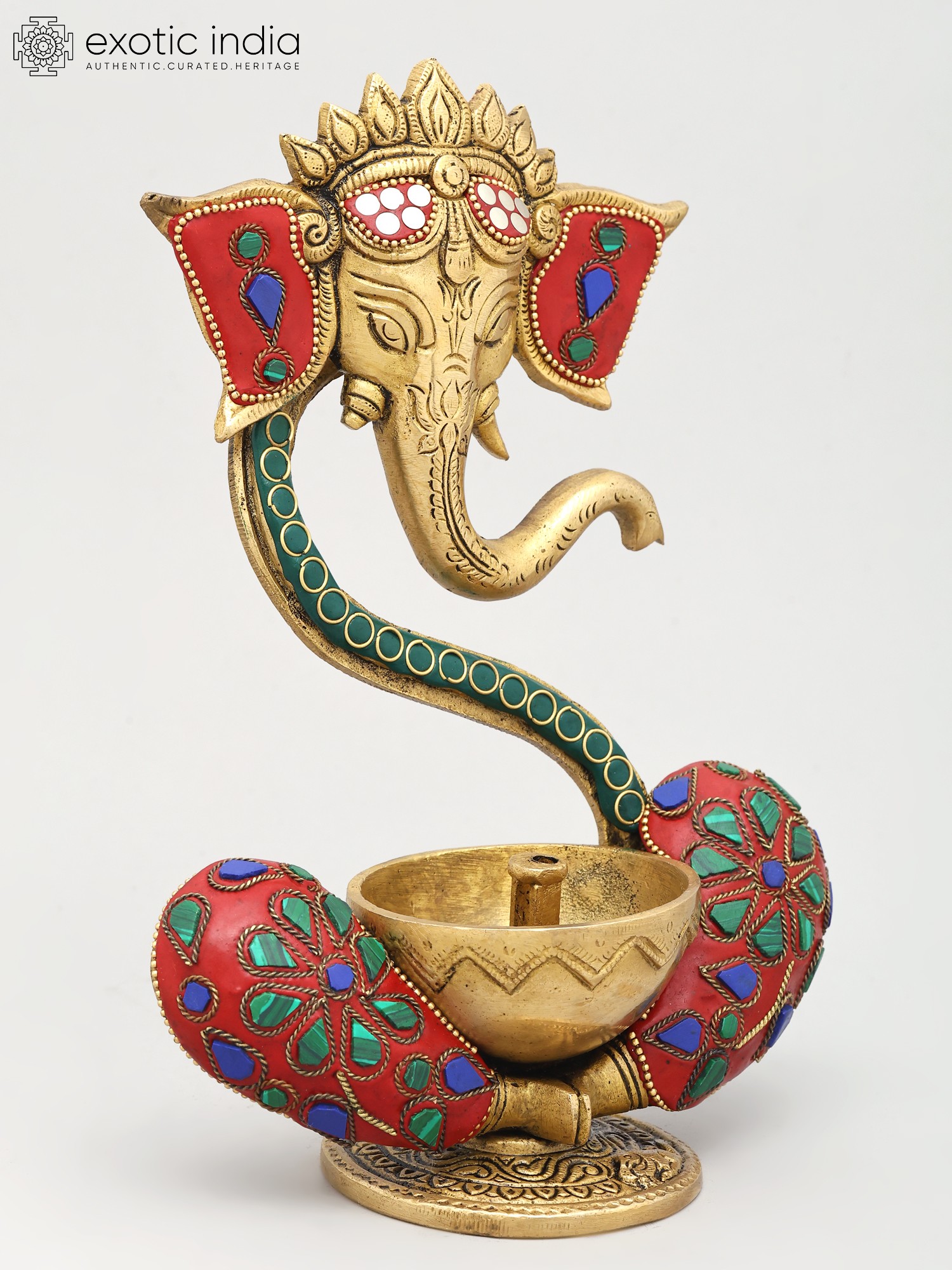 10" Designer Ganesha Lamp in Brass with Inaly Work