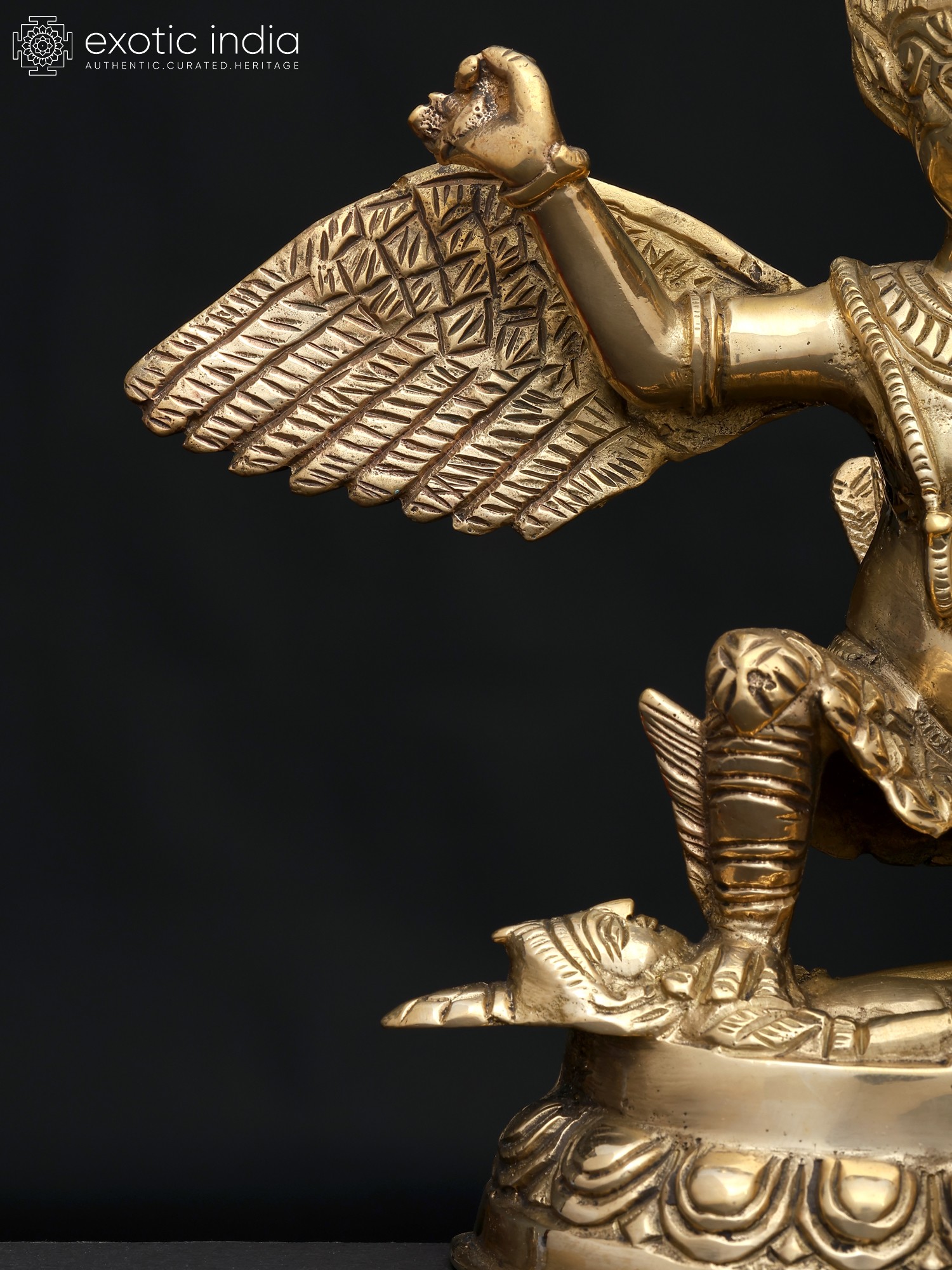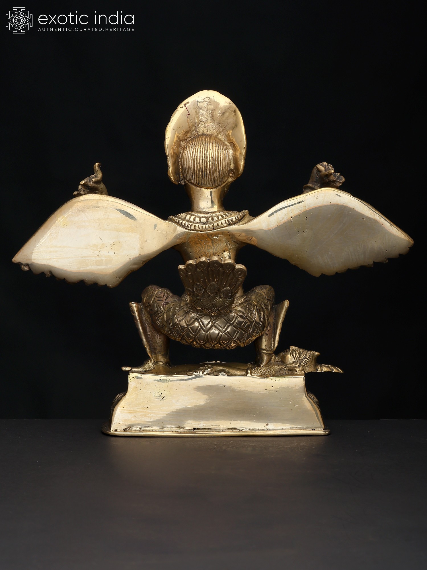 6" Small Brass Garuda Kneeling with Vishnu,Shridevi, Bhudevi