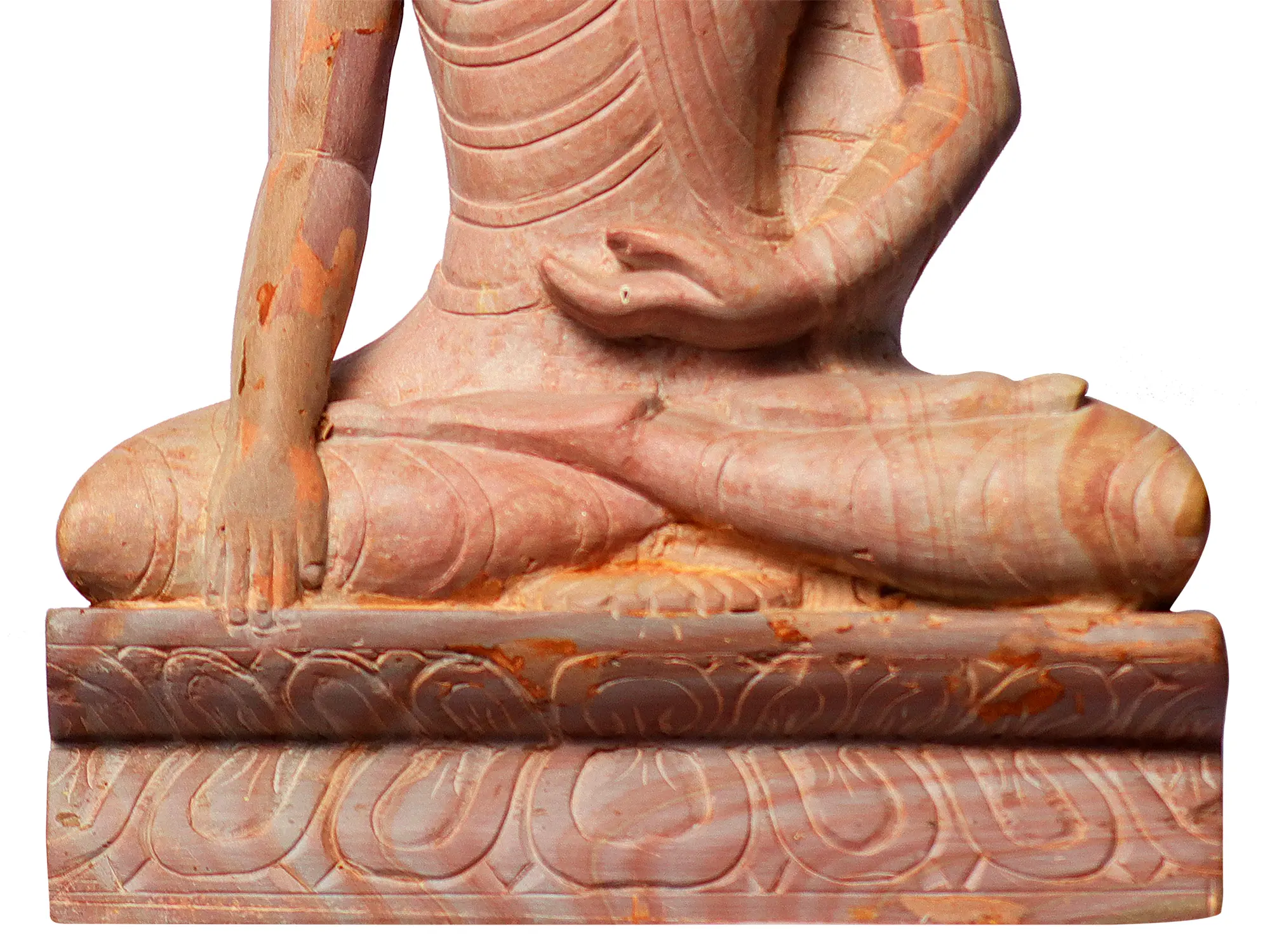 Hailing from the rich artistic traditions of Odisha, a region steeped in spiritual and sculptural heritage, this statue is a testament to the skill of its artisans. The pink stone, carefully selected and carved, imbues the sculpture with a gentle warmth and natural beauty. The meticulous detailing, from the serene expression on the Buddha's face to the flowing robes and the intricate carving of the lotus pedestal, speaks of generations of practiced craftsmanship. Odisha has long been a center for Buddhist art, with ancient monasteries and temples dotting its landscape, preserving and evolving artistic styles that resonate with deep spiritual meaning. This piece carries forward that legacy, bringing a touch of that sacred artistry into your space.