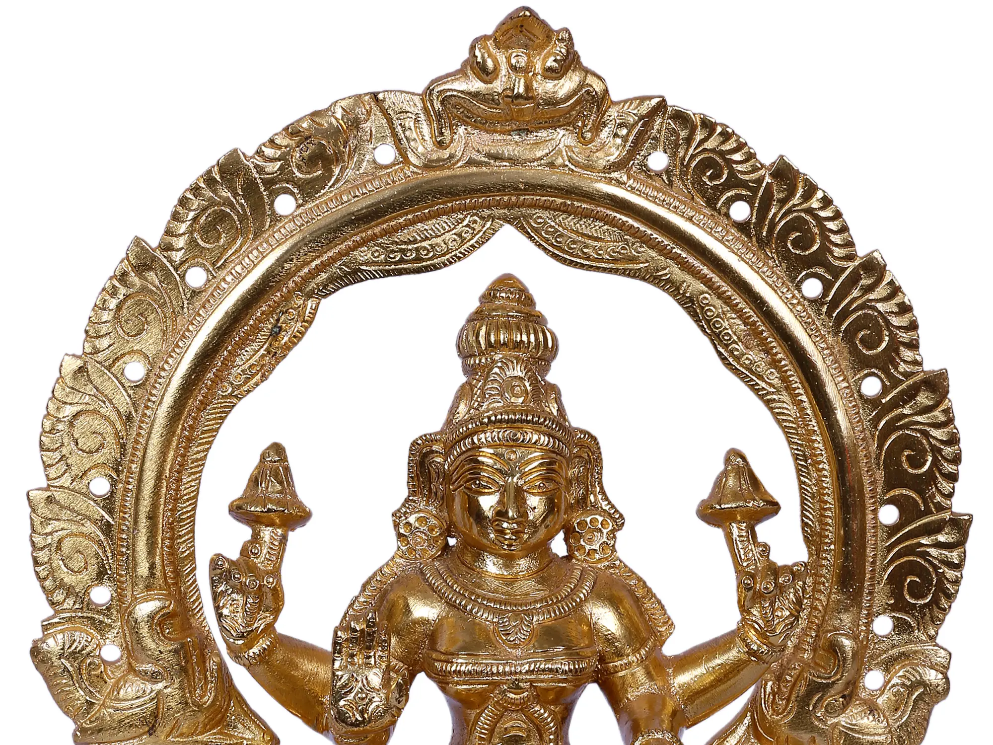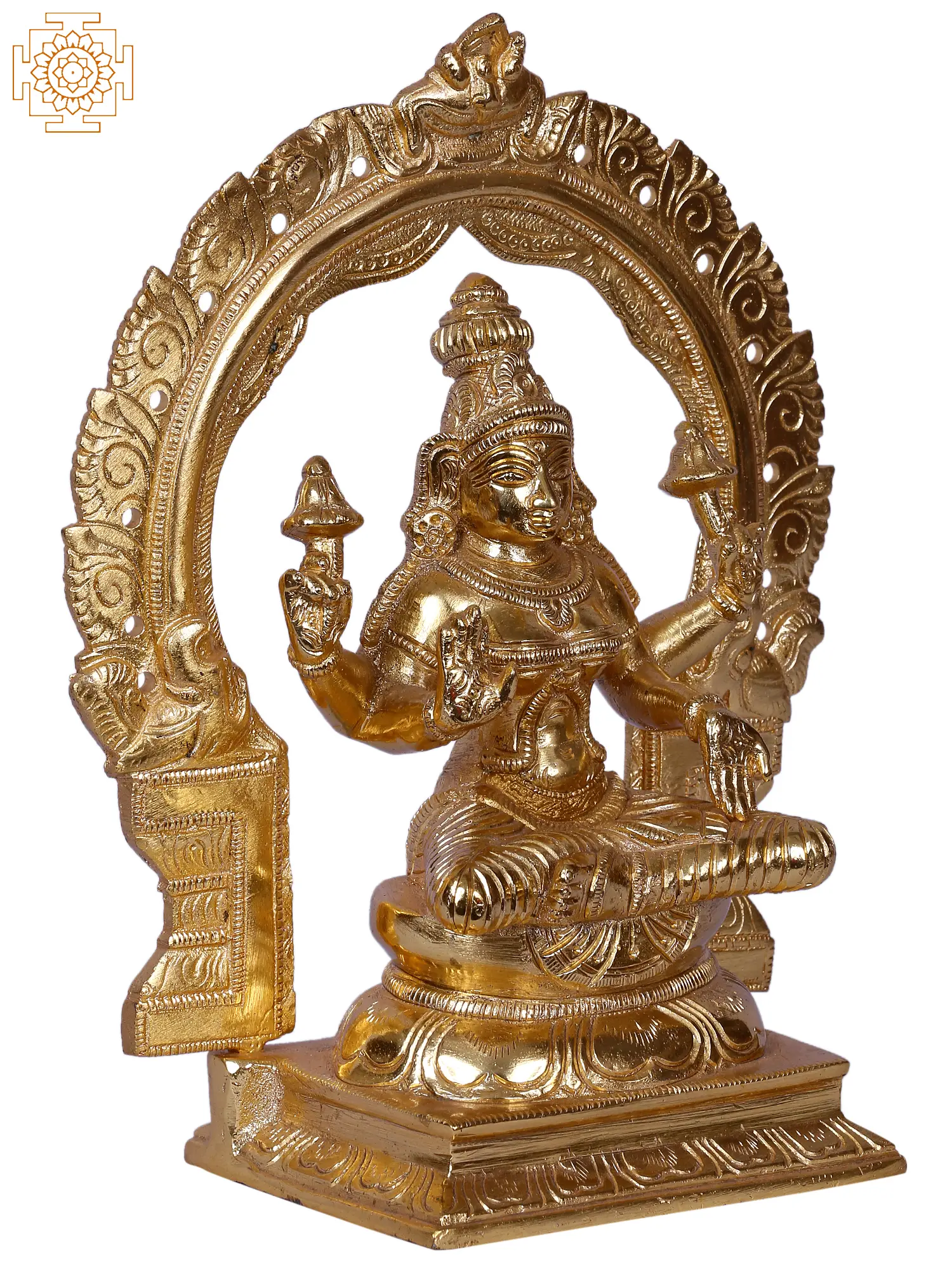 Crafted with devotional artistry and attention to detail, this enchanting sculpture captures the divine essence of Goddess Kamala, who is revered as the embodiment of abundance, wealth, and prosperity in Hindu mythology. With each delicate stroke and refined contour, the skilled artisans have breathed life into the brass, evoking a sense of profound reverence and admiration into her form as sculpted.